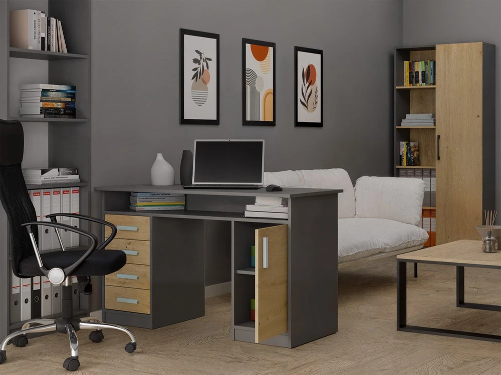 BIURKO ADA ANTRACYT DĄB ARTISAN 125 Cm 4 Szuflady Szafka Półki Do Biura Pokoju Na Laptop