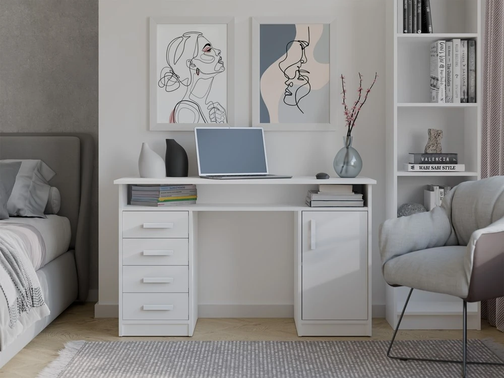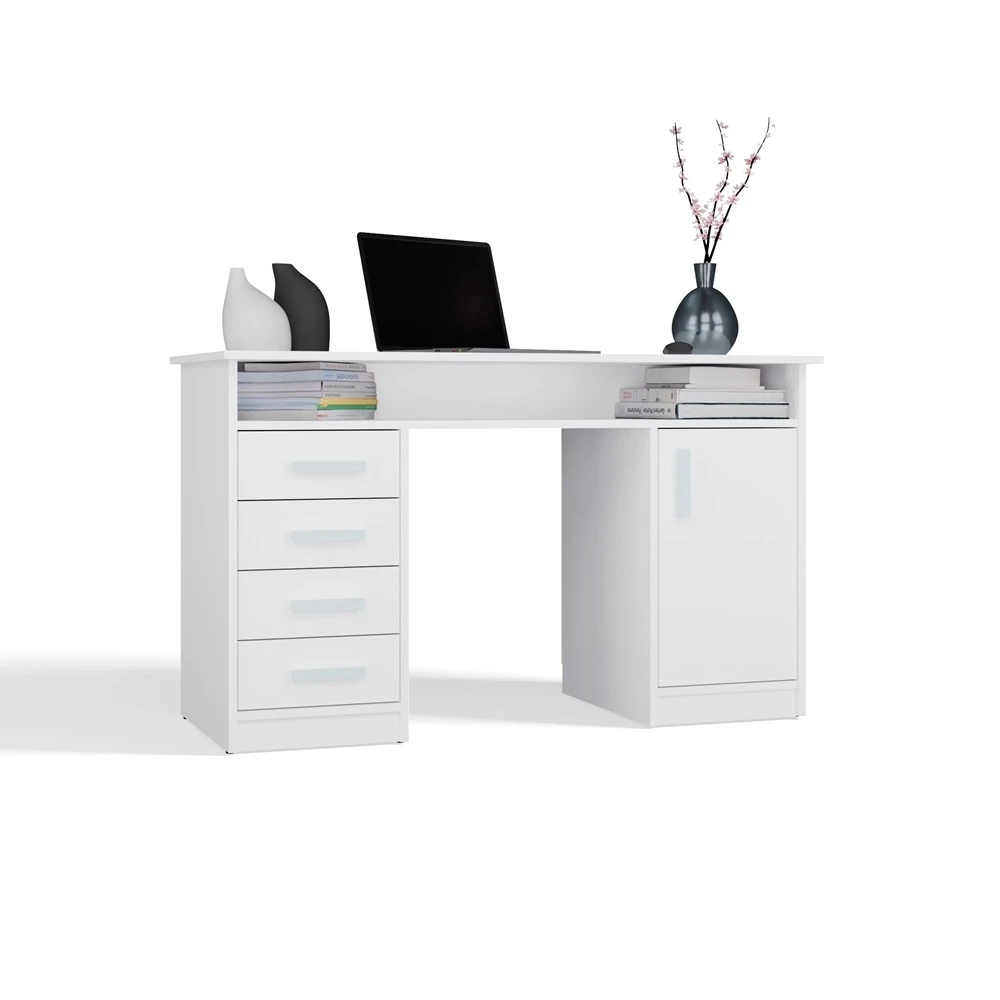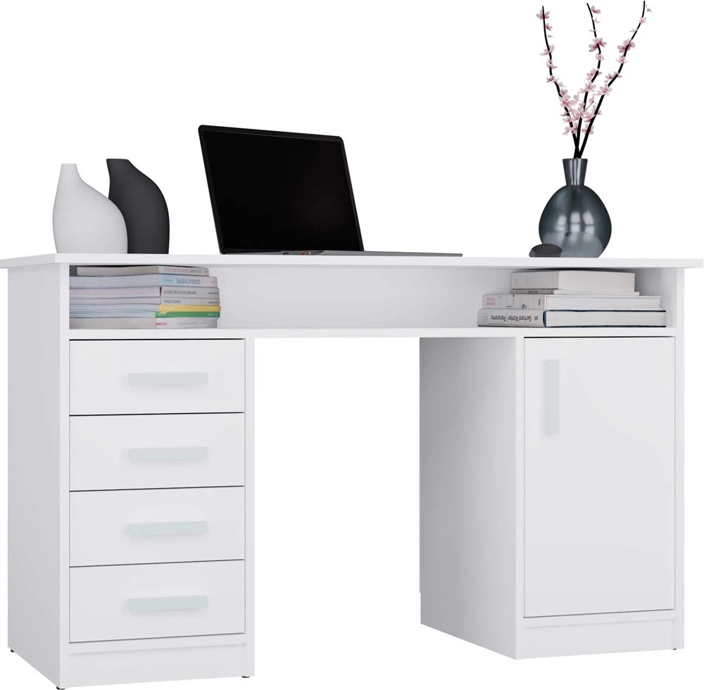BIURKO ADA BIAŁE 125 Cm 4 Szuflady Szafka Półki Do Biura Pokoju Na Laptop