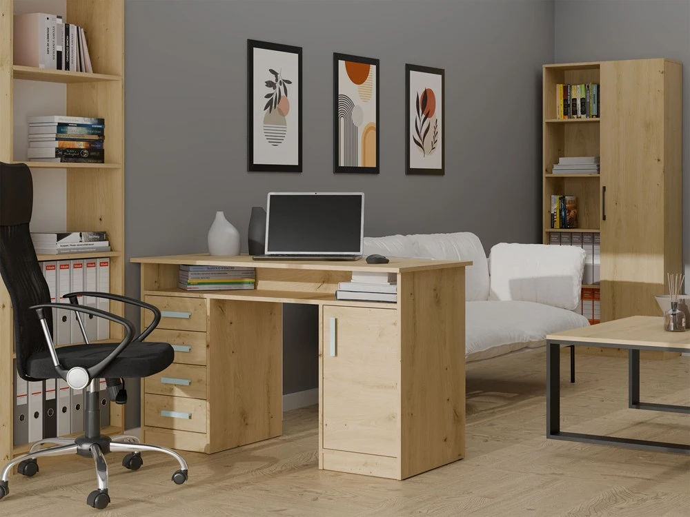 BIURKO ADA DĄB ARTISAN 125 Cm 4 Szuflady Szafka Półki Do Biura Pokoju Na Laptop