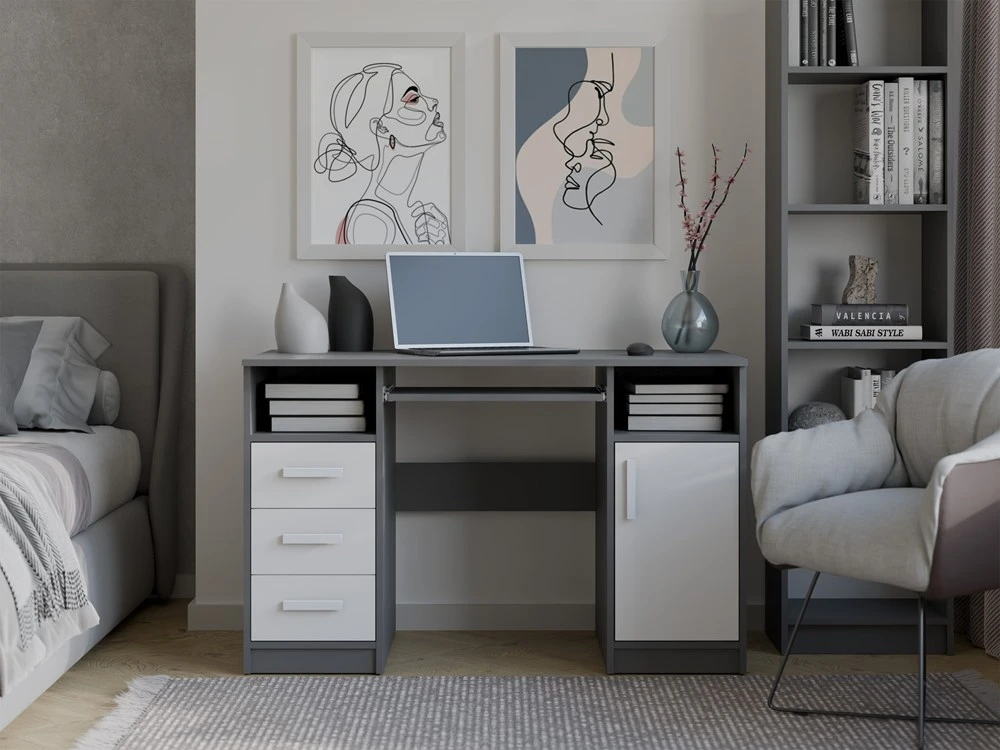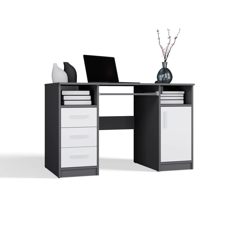 BIURKO DELTA ANTRACYT / BIAŁY 120 Cm 3 Szuflady Szafka Półki Do Biura Pokoju Na Laptop