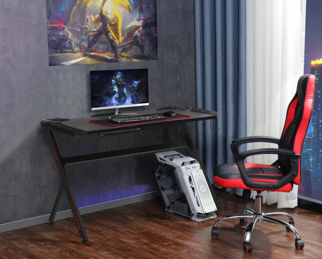 Biurko GAMINGOWE @Furntex to doskonałe uzupełnienie gamingowego setupu każdego gracza. Idealnie sprawdzi się w ergonomicznym duecie, wraz z fotelem gamingowym . Zapewnij sobie masę komfortu i spraw, by codzienne rozgrywki były jeszcze przyjemniejsze!