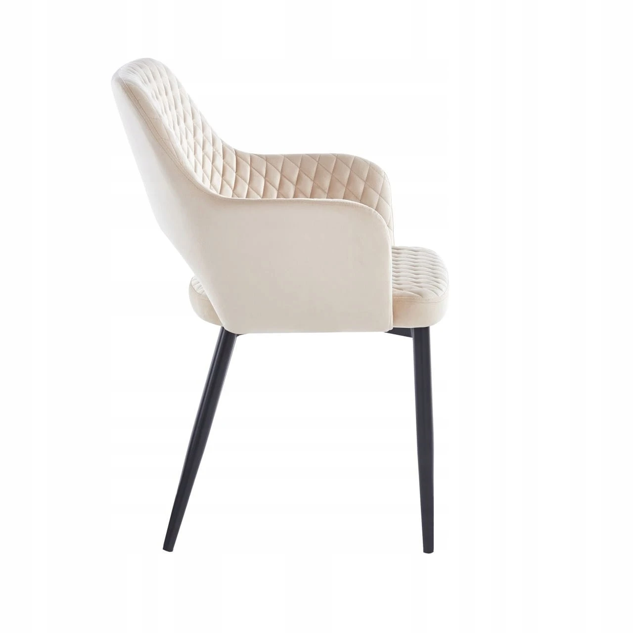 Beżowe Jasne Krzesło Welurowe Pikowane Furnitex Czarny Stelaż LOFTOWE