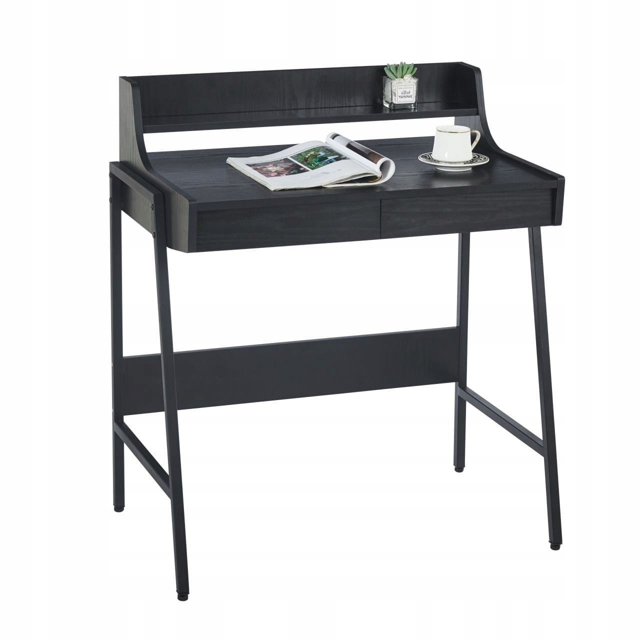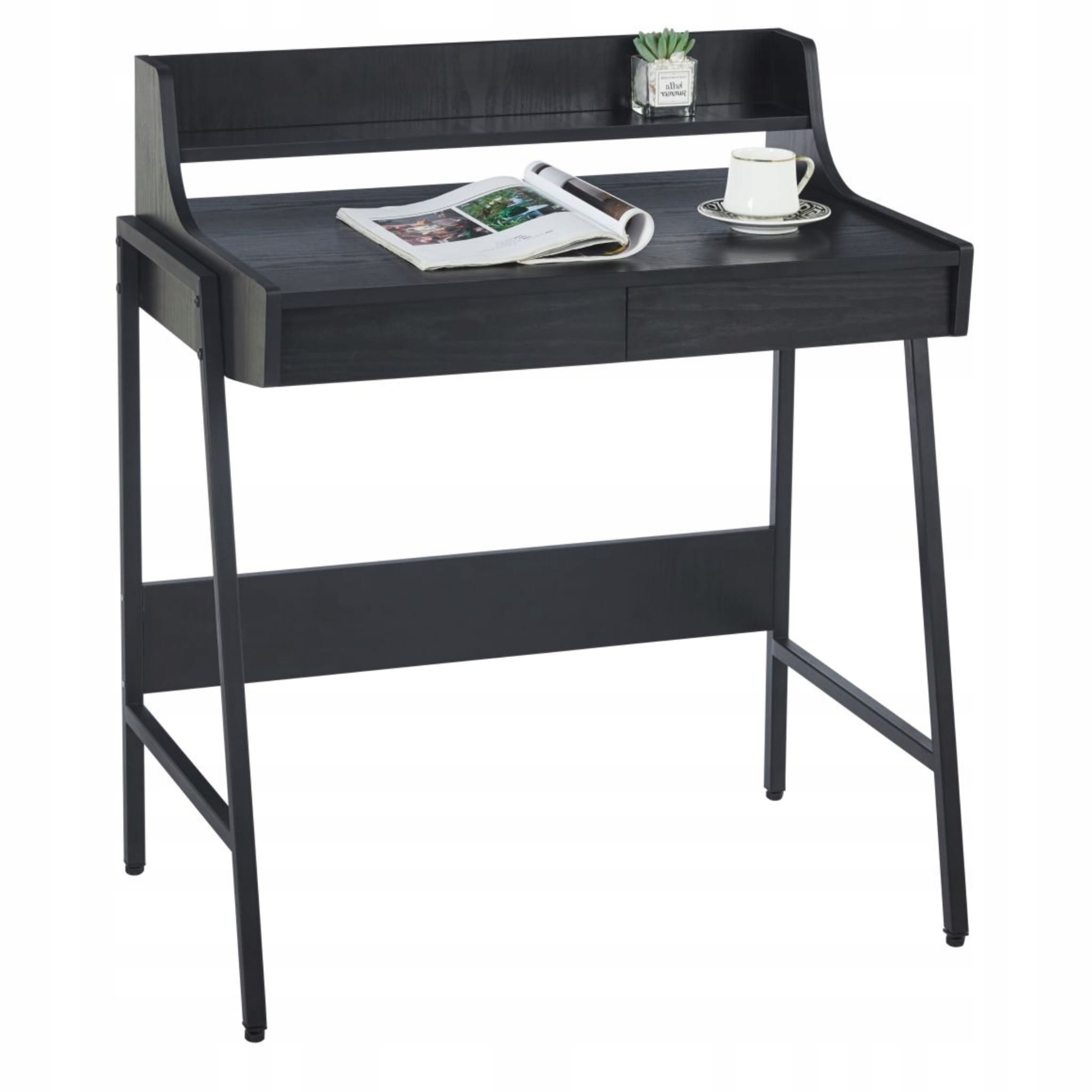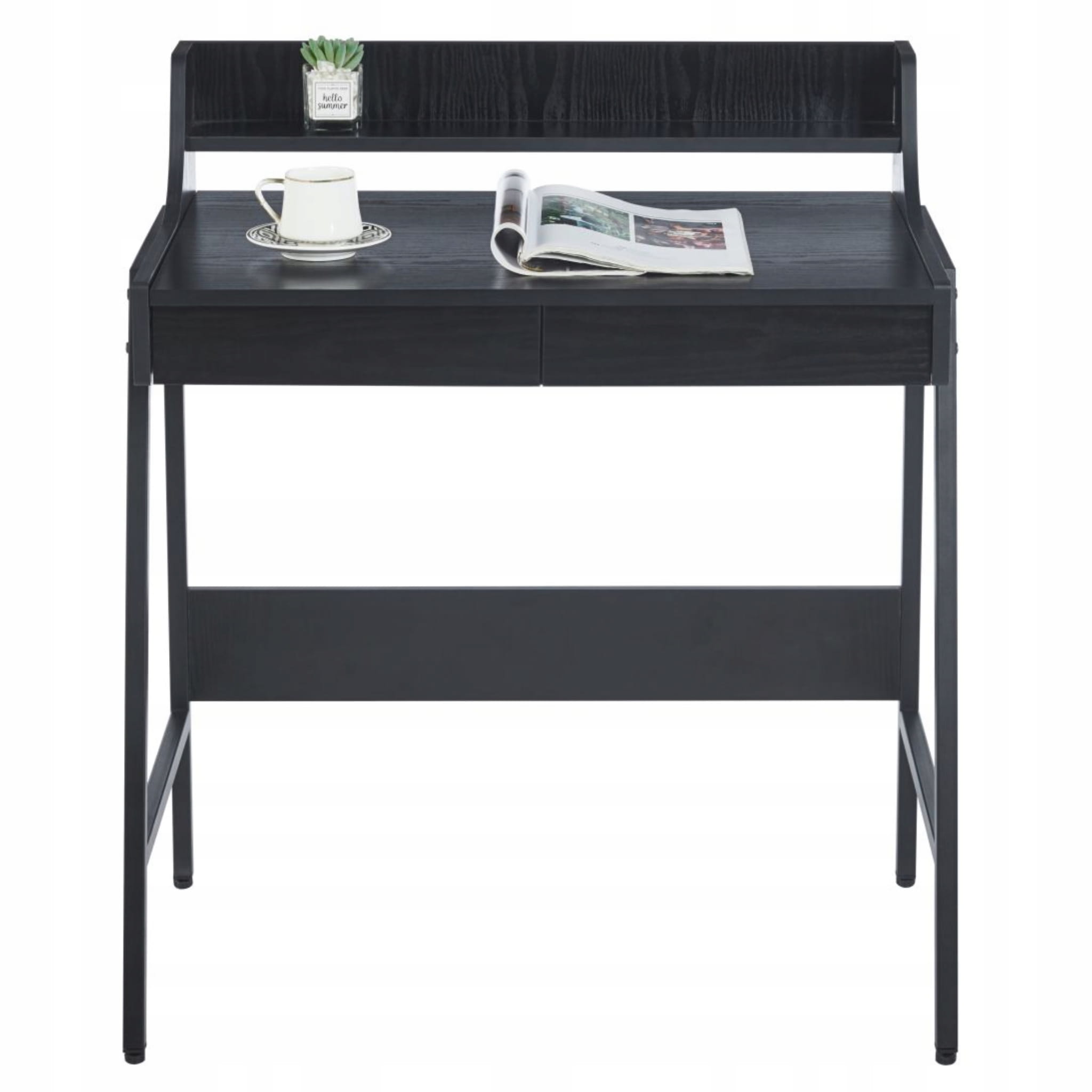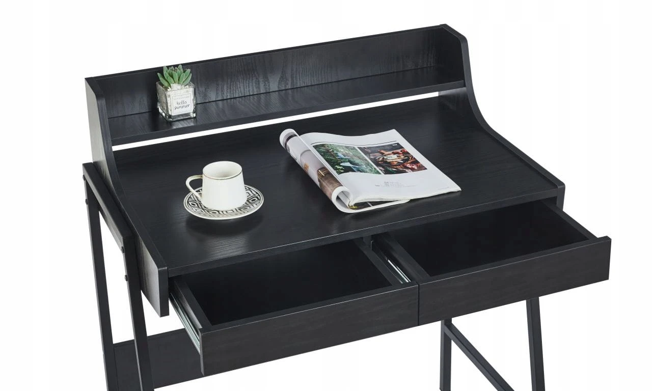 Biurko Czarne z Nadstawką 2 SZUFLADAMI Kompaktowe do Pracy Nauki Furnitex
