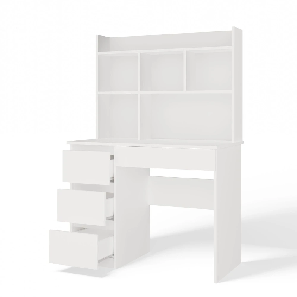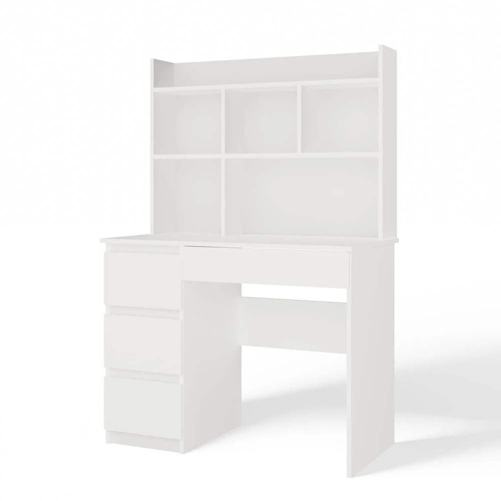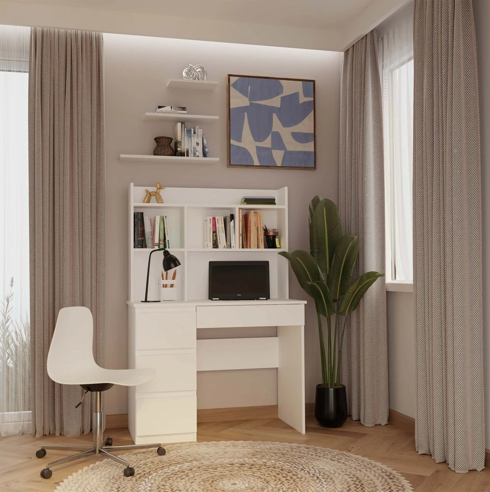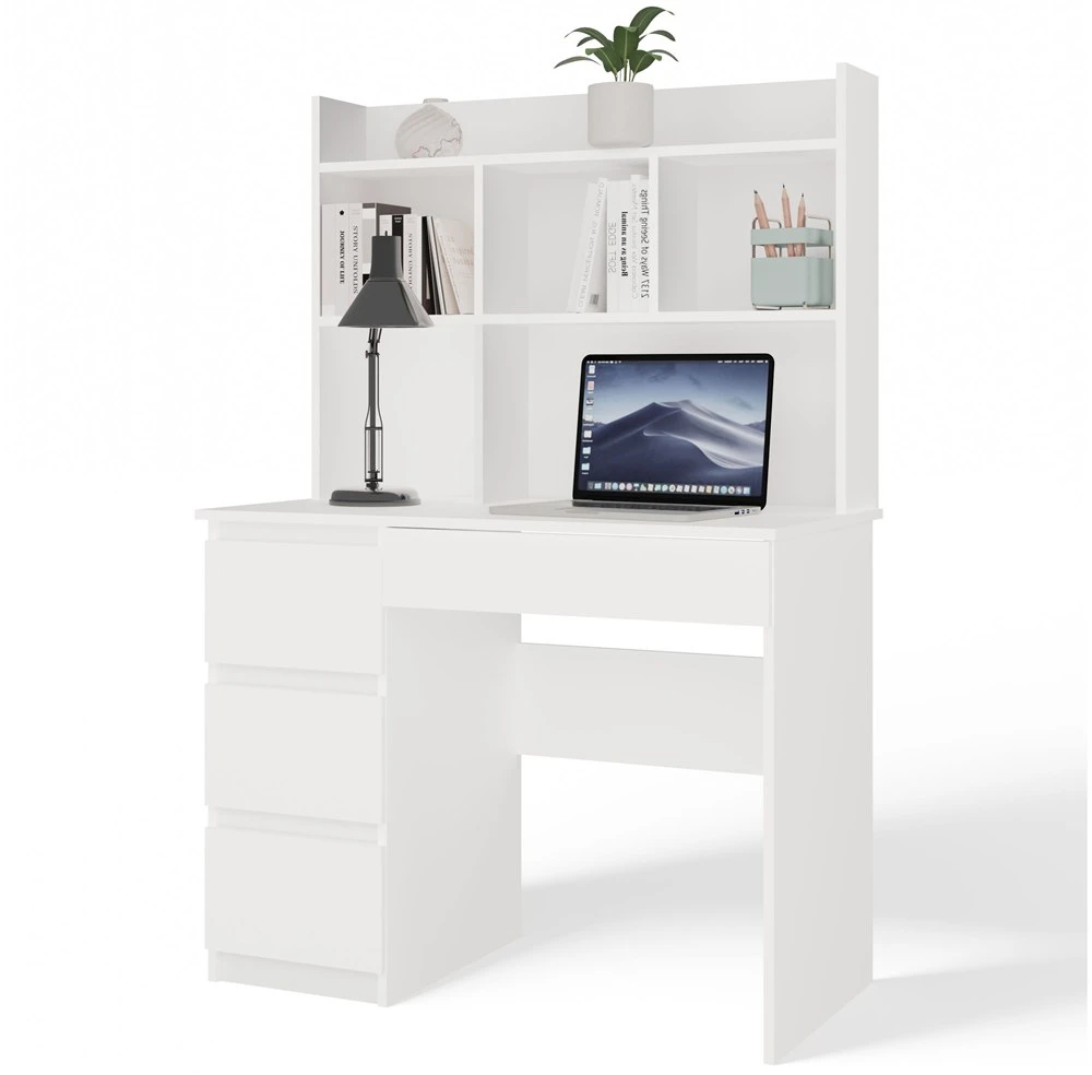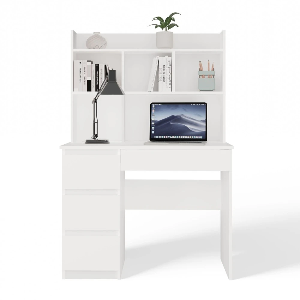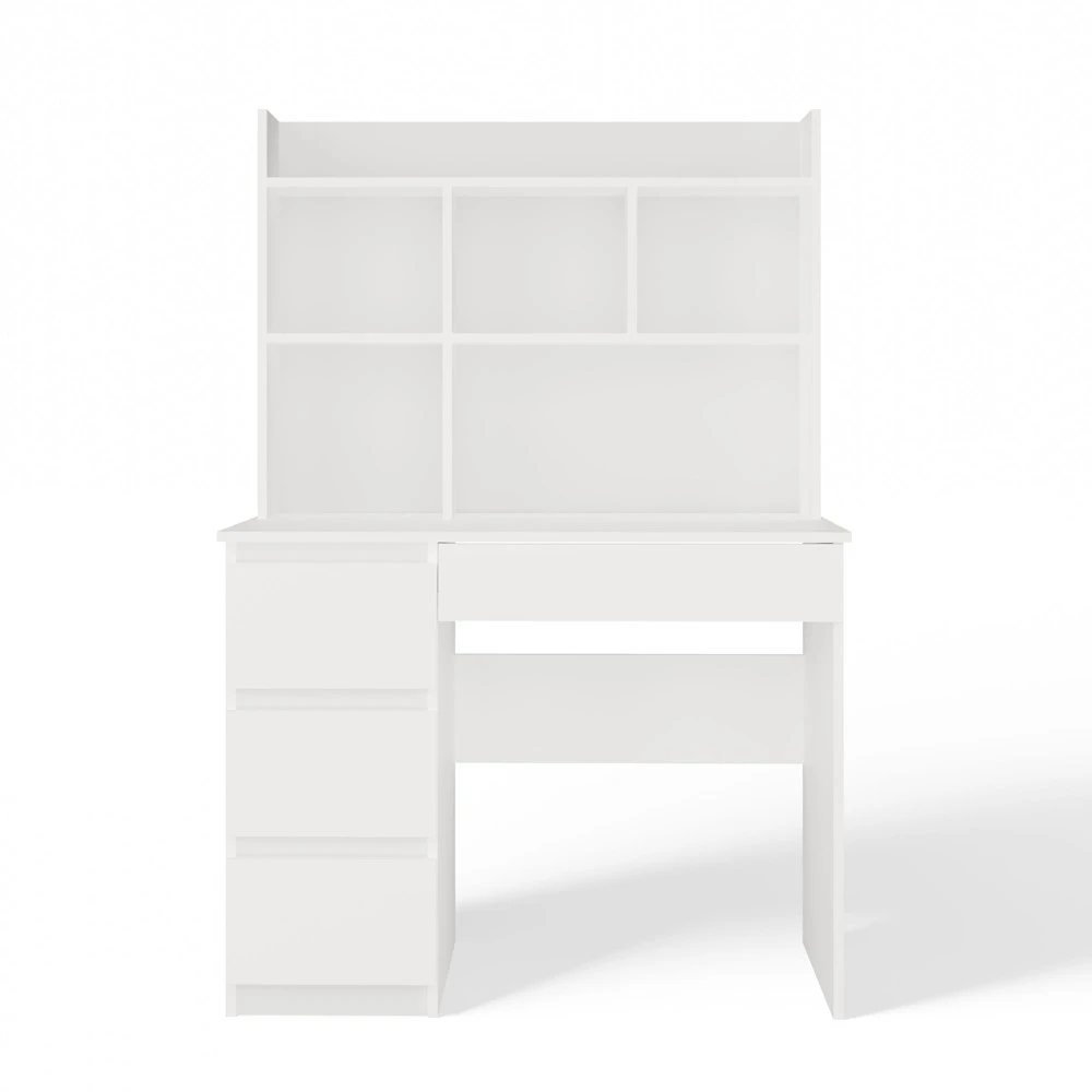 Biurko MIJAS Lewe Z Nadstawką Biel Mat 4 Szuflady 4 Półki Do Biura Pokoju