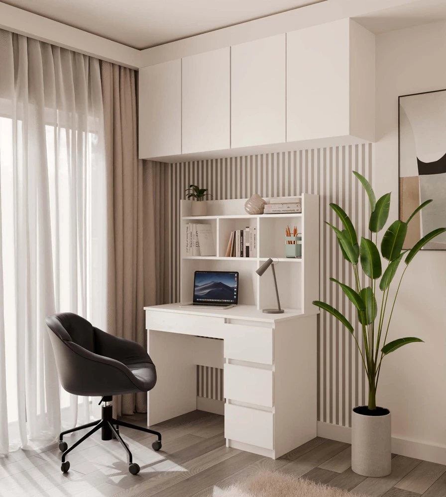 - Nadstawka z otwartymi półkami – świetna na książki, zeszyty, dekoracje lub akcesoria