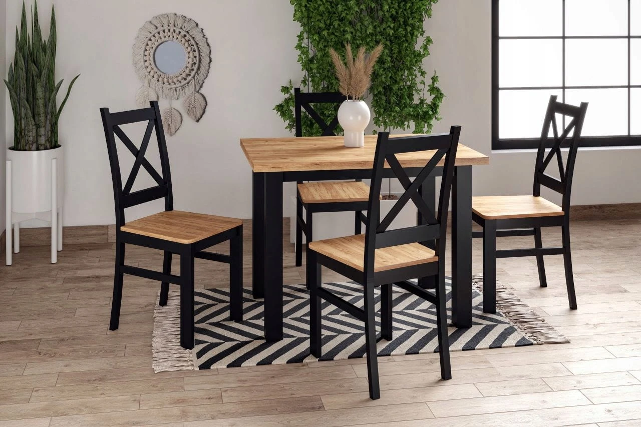 Drewniane Krzesło CZARNE Siedzisko DĄB ZŁOTY do KUCHNI FURNITEX