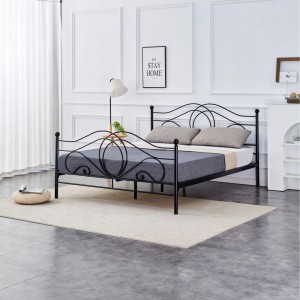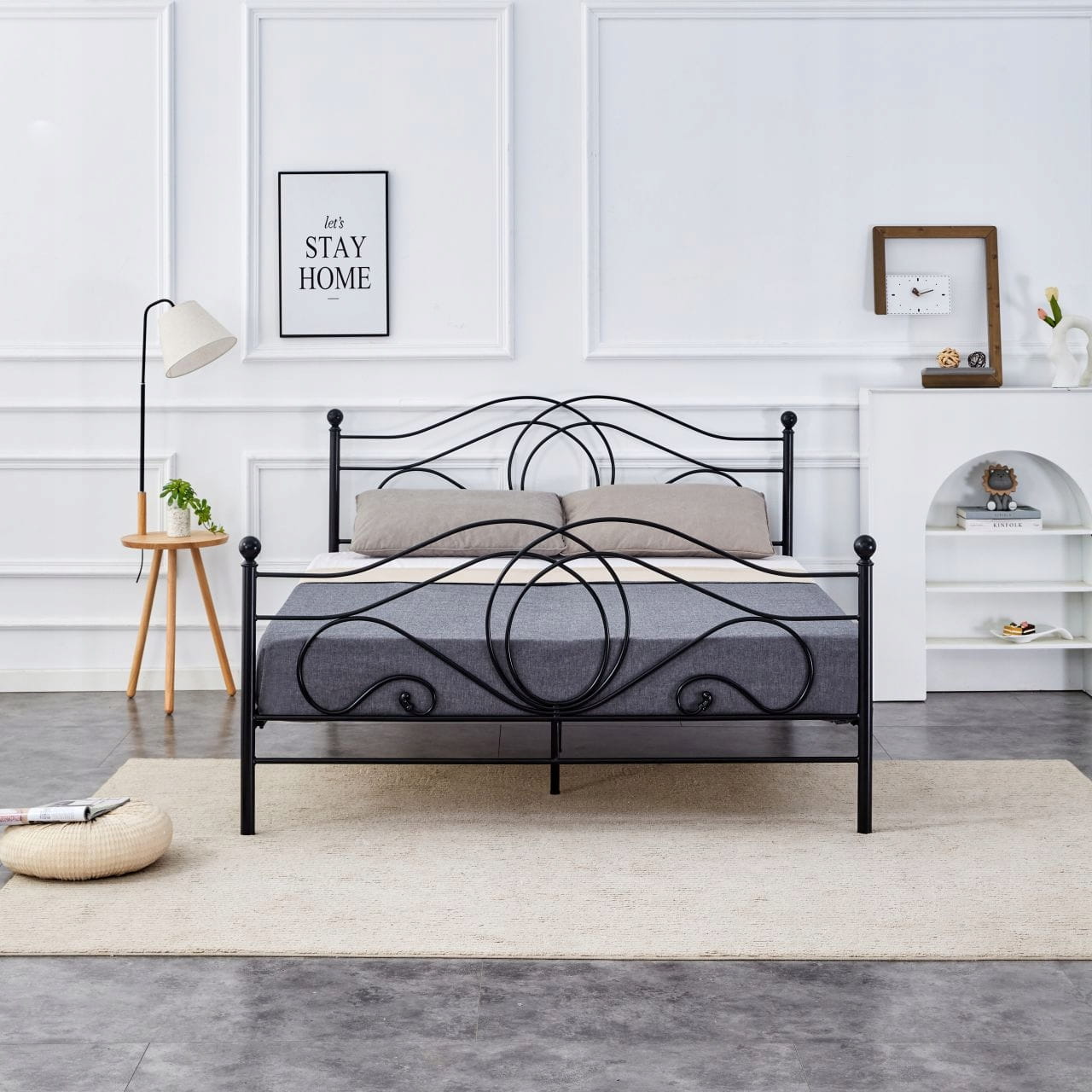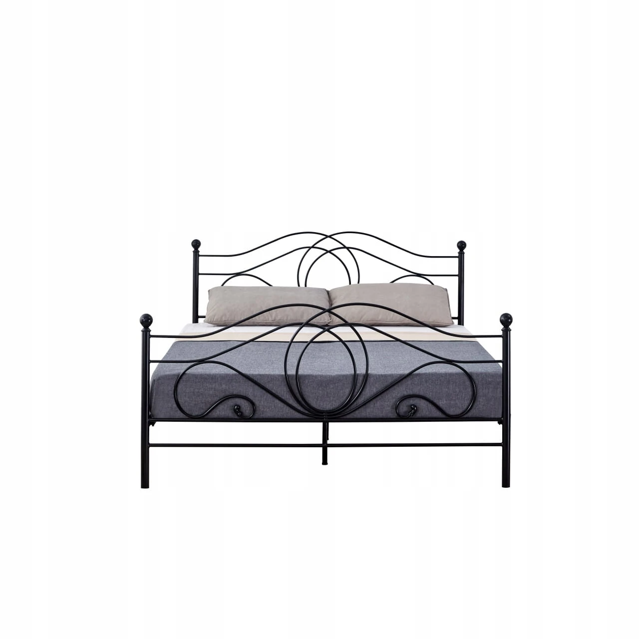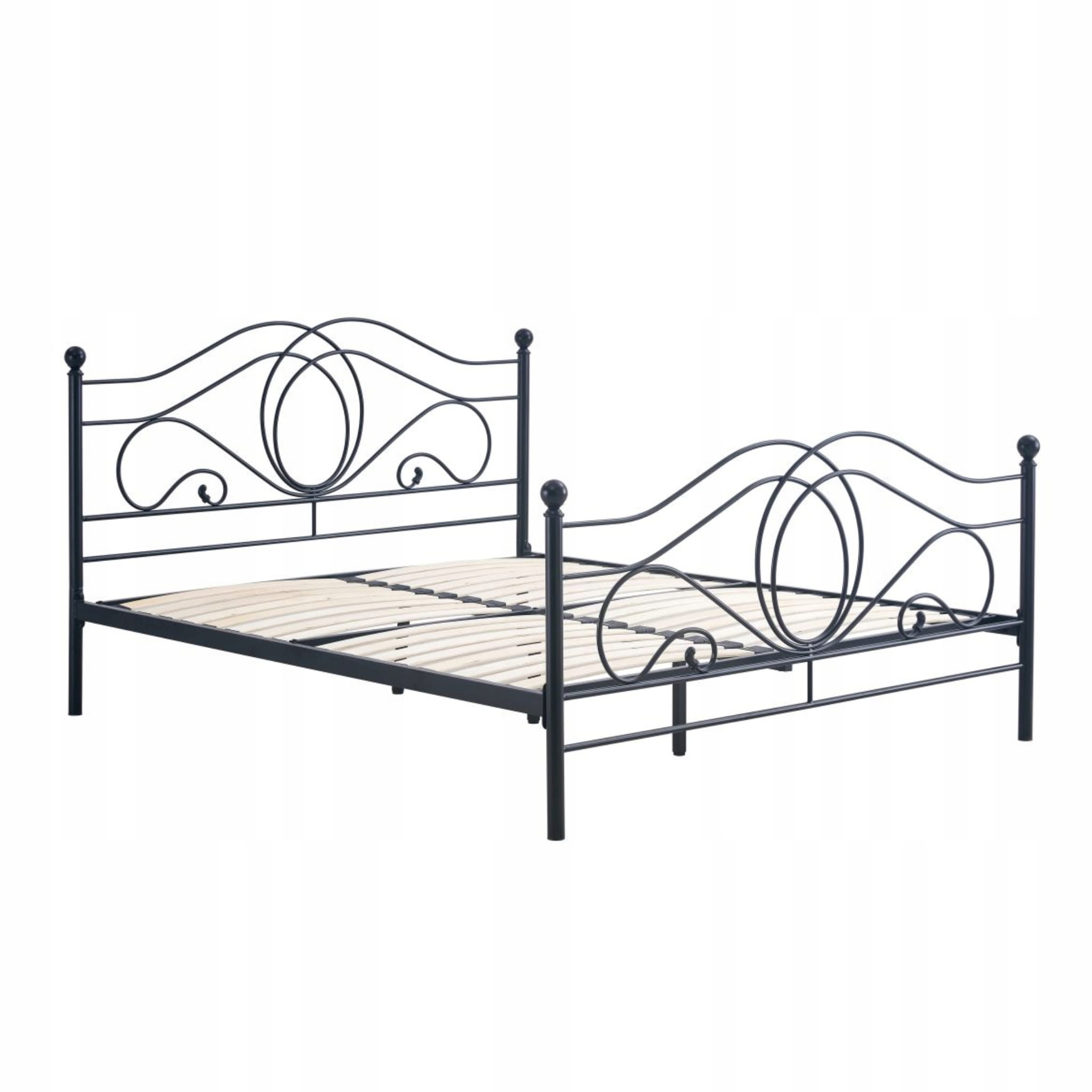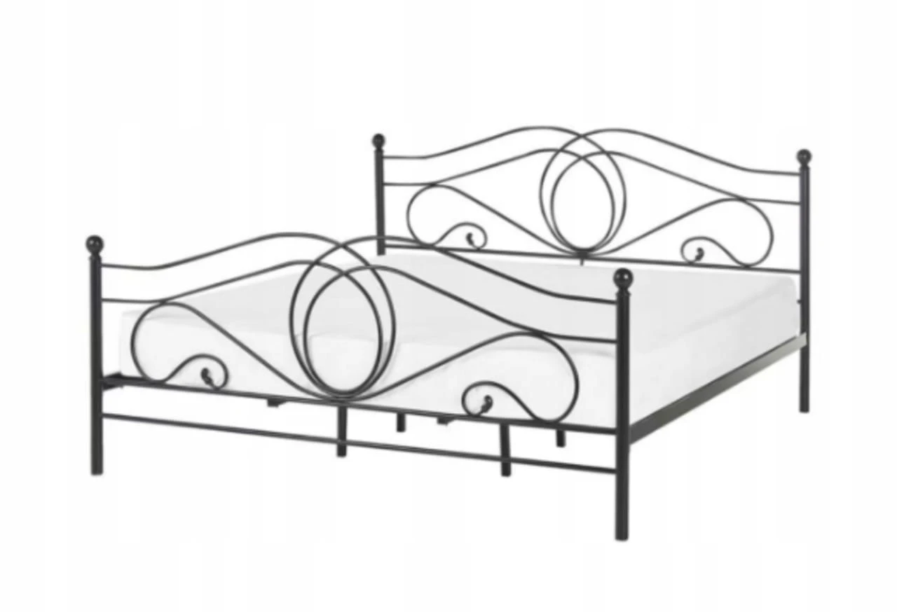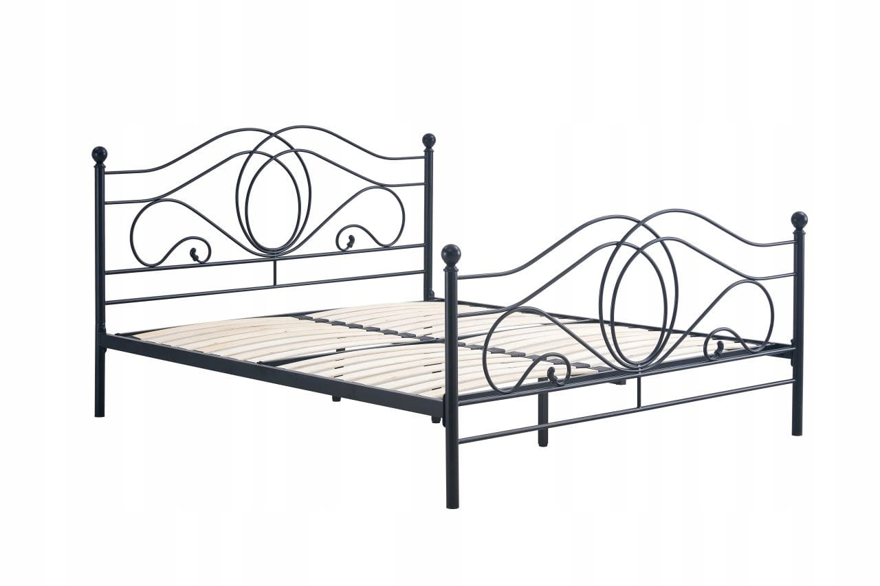 CZARNE ZDOBIONE DUŻE 160x200cm METALOWE ŁÓŻKO Z STELAŻEM DO MIESZKANIA