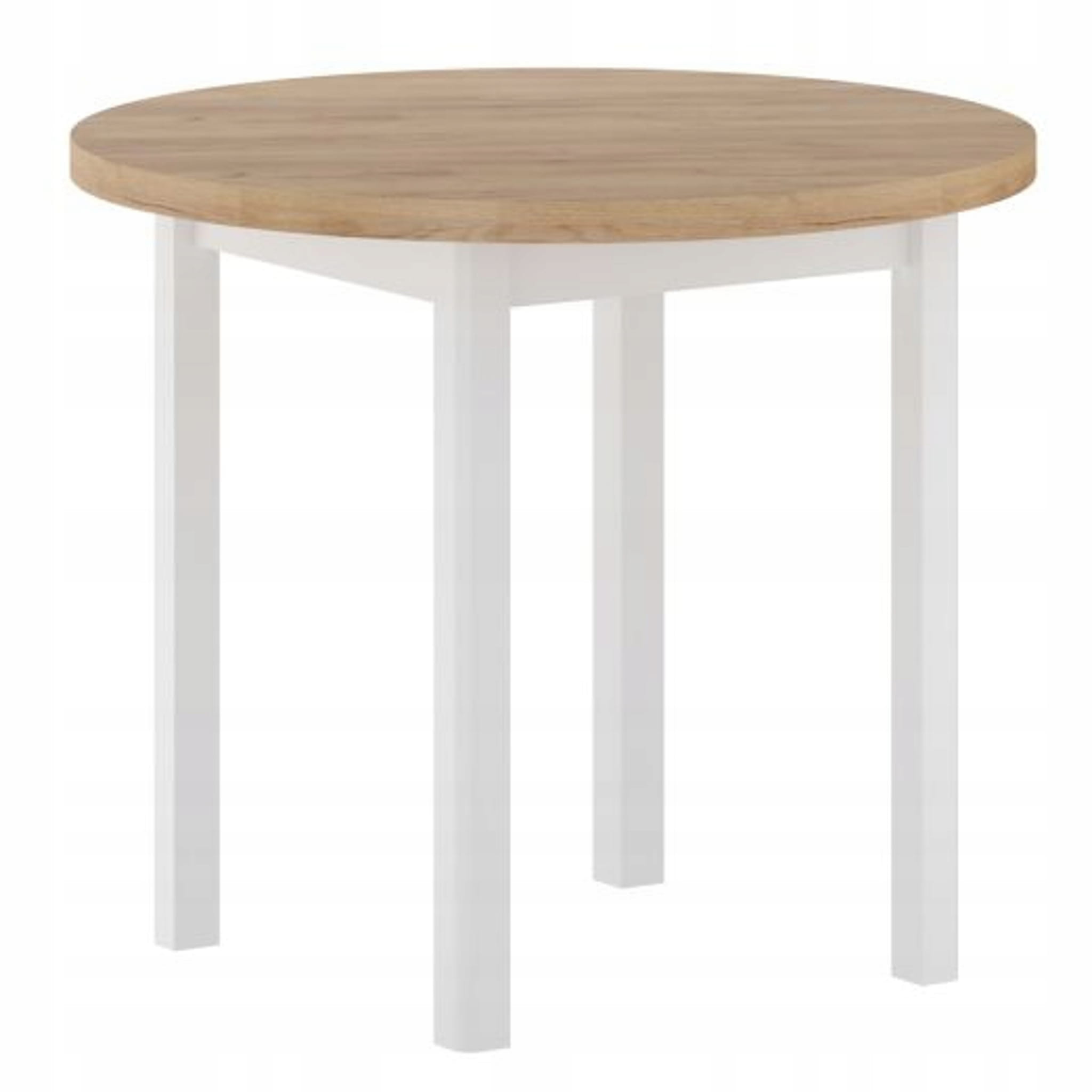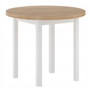 Jasny Drewniany STÓŁ Dąb Złoty Craft fi80cm Okrągły Białe NOGI Furnitex