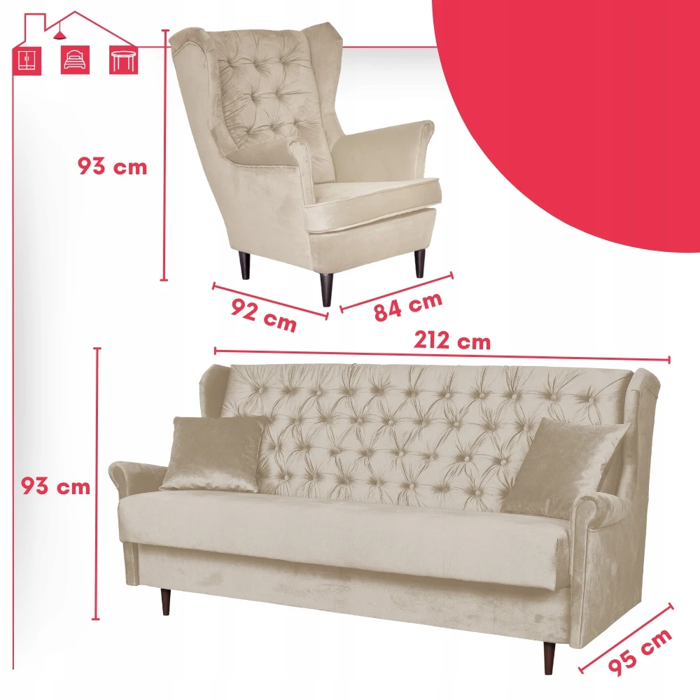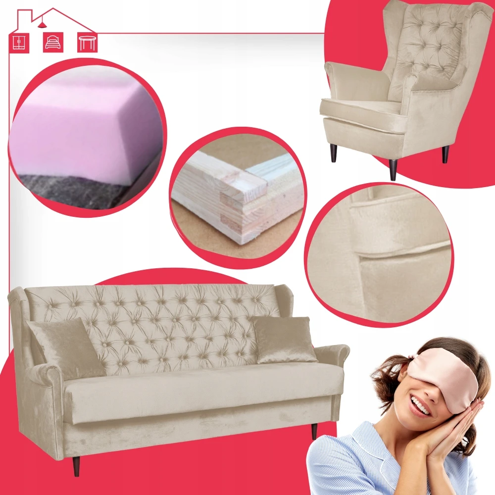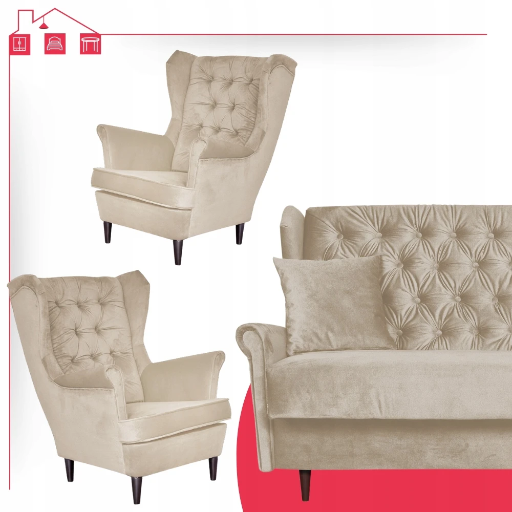 - Typ: zestaw wersalka uszak + 2 fotele uszak