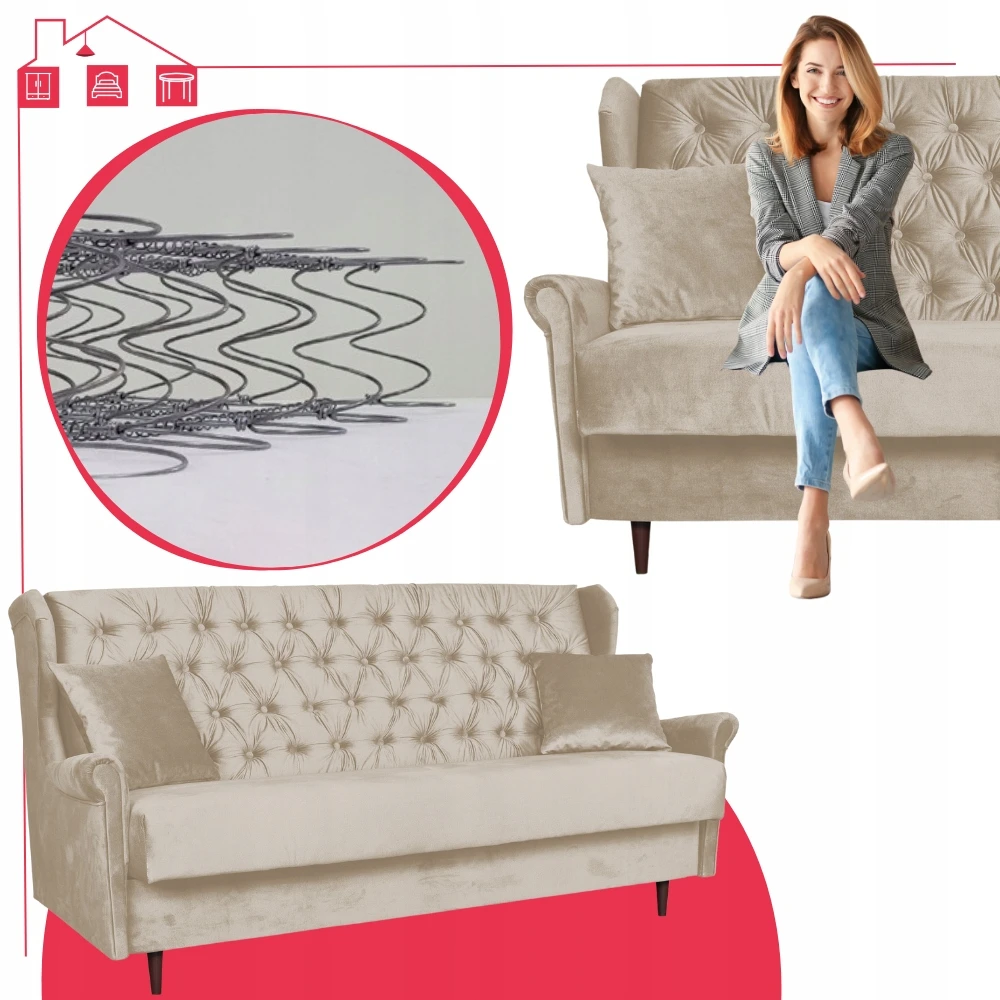 Duży zestaw wypoczynkowy wersalka 2 fotele uszaki BEŻOWY Gaja Family Meble