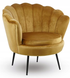 Krzesło zostało wykonane z tapicerki velvet o subtelnym odcieniu curry, które dodaje mu charakteru i elegancji. Metalowe, czarne nogi zapewniają stabilność i solidność.