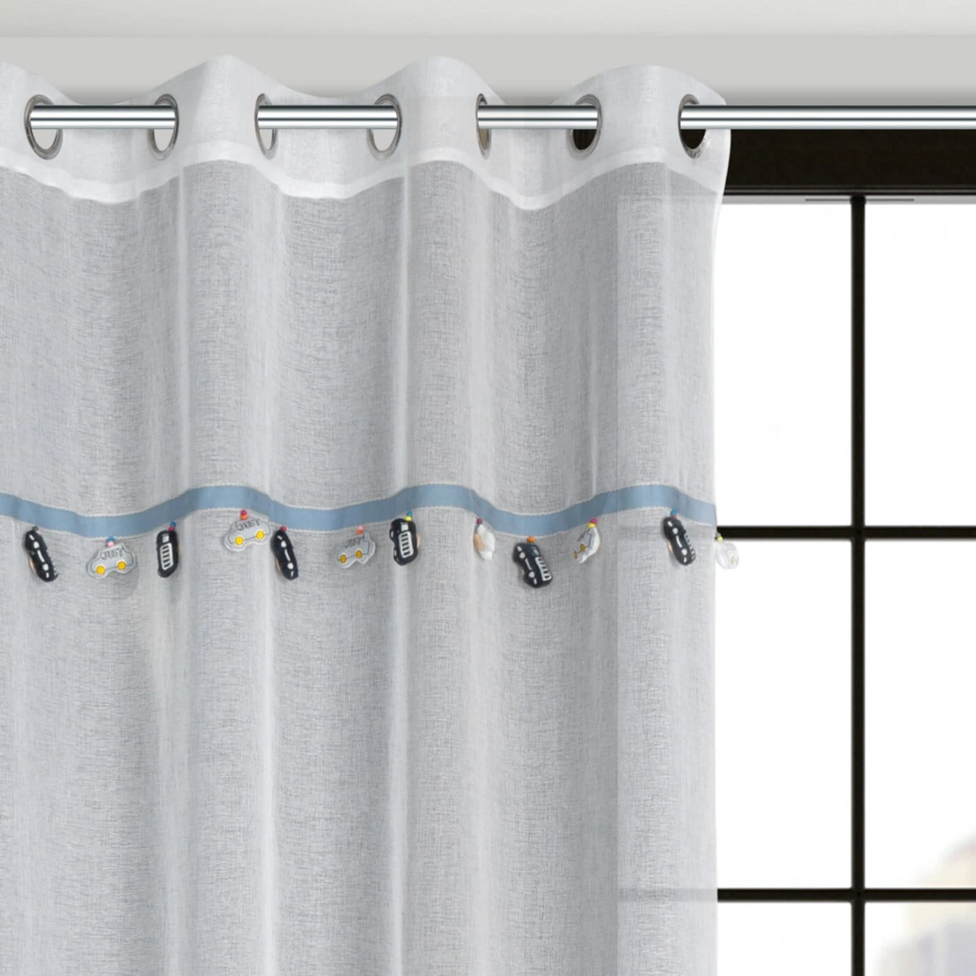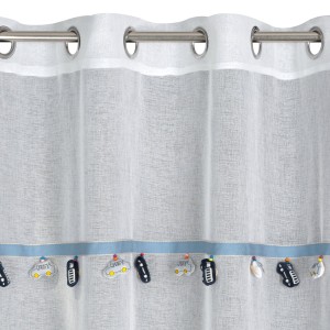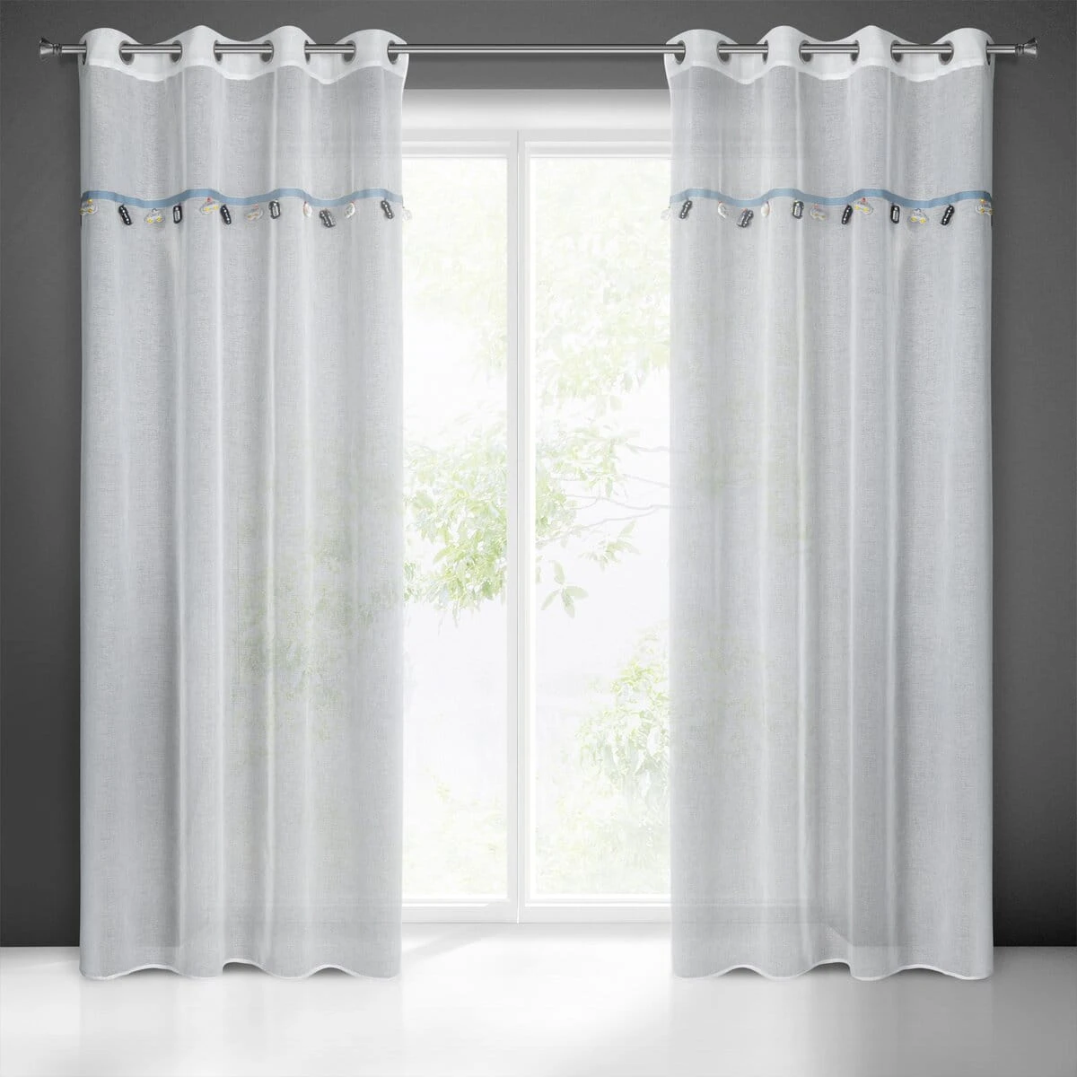 Firana gotowa na przelotkach 140x250 CAR Eurofirany biała ozdobiona taśmą z samochodzikami