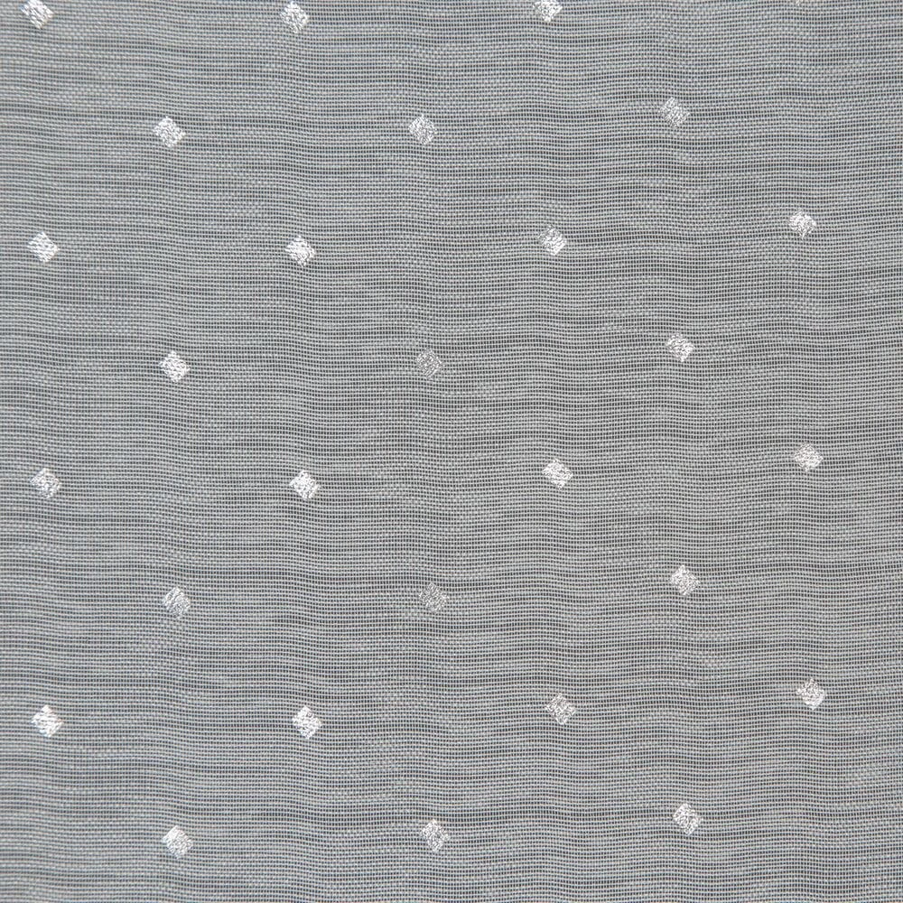 Miękka firana z nieprzejrzystej tkaniny dekorowanej drobnym nadrukiem srebrnych rombów doskonale rozprasza światło nadając pomieszczeniu niesamowitego klimatu.