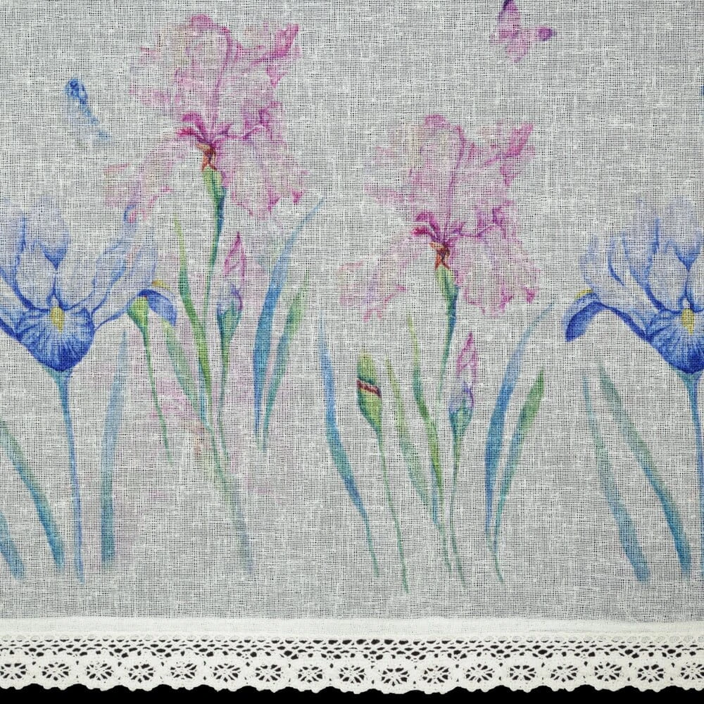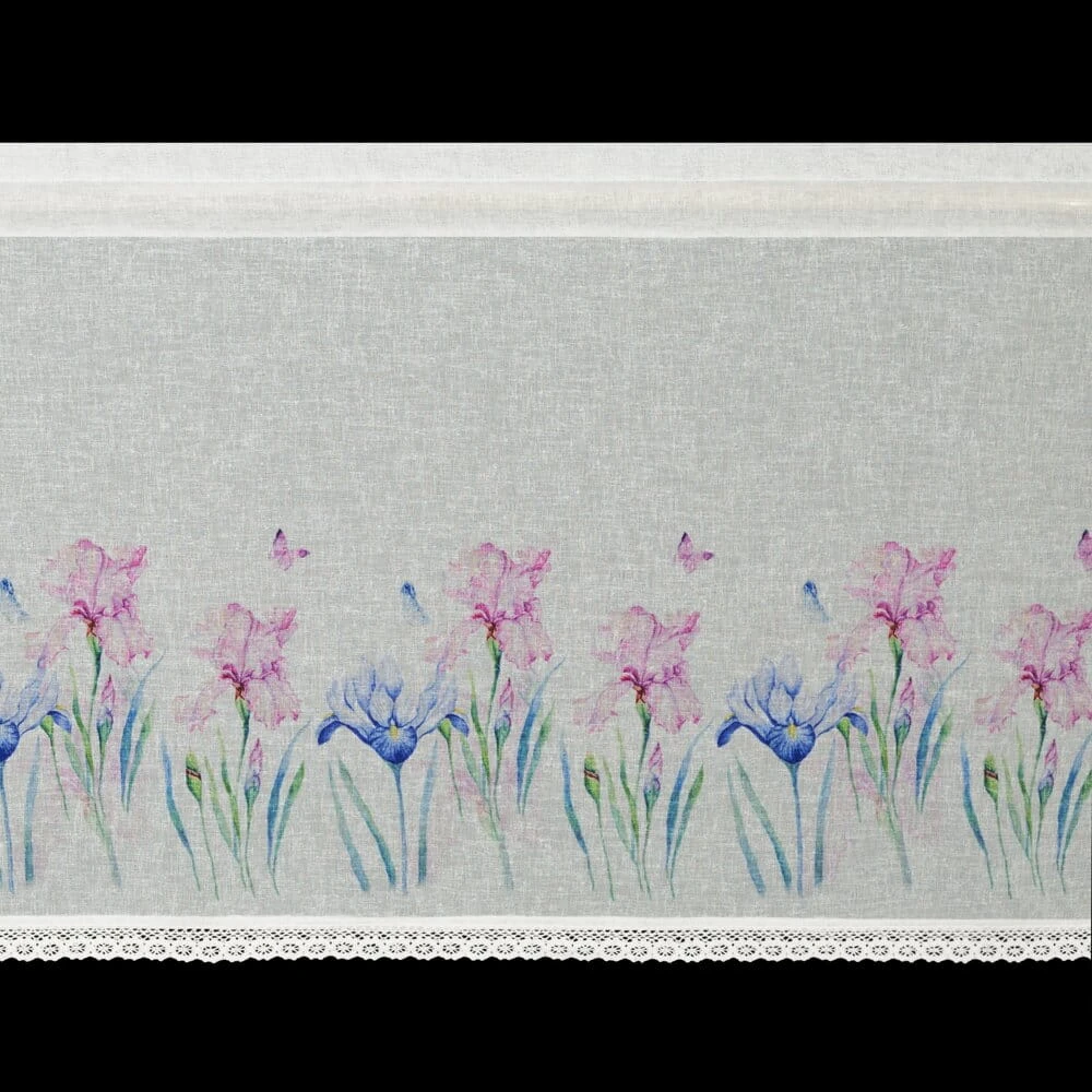 Firana gotowa zazdrostka DOLOREZ 150x60 Eurofirany biała różowa niebieska kwiaty koronka