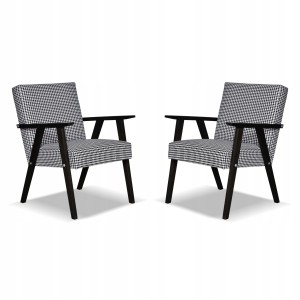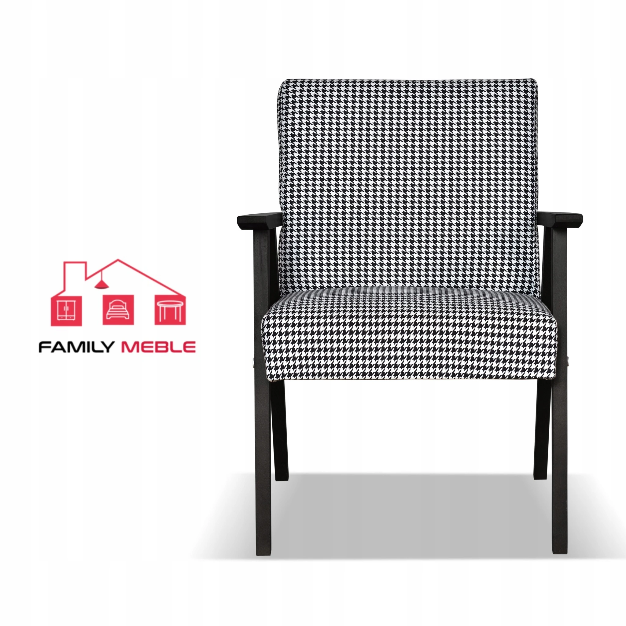 Fotel PRL zestaw retro vintage SOLER Family Meble Pepitka czarno - biała