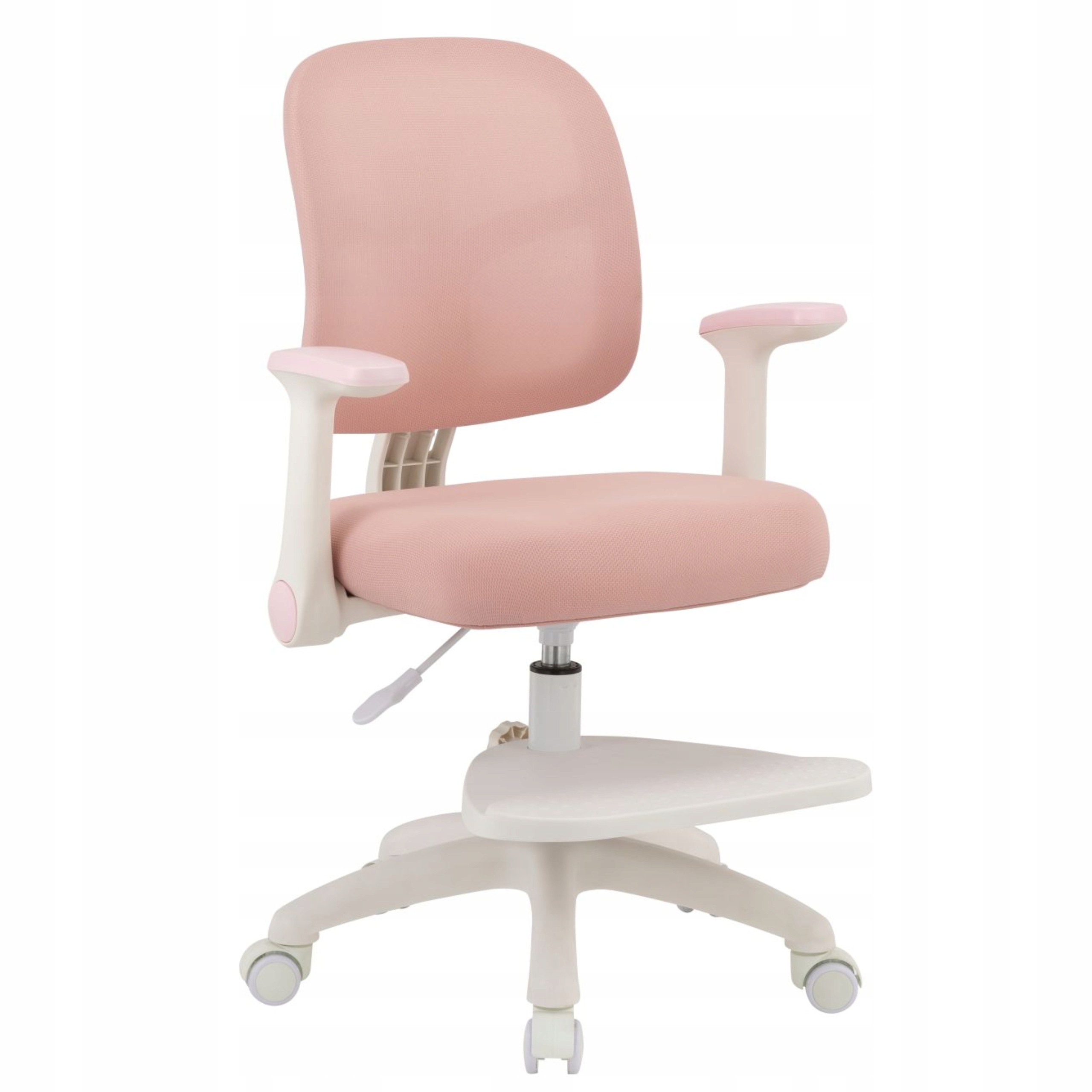 Fotel OBROTOWY Krzesło z Podnóżkiem RÓŻOWE REGULOWANE na KÓŁKACH