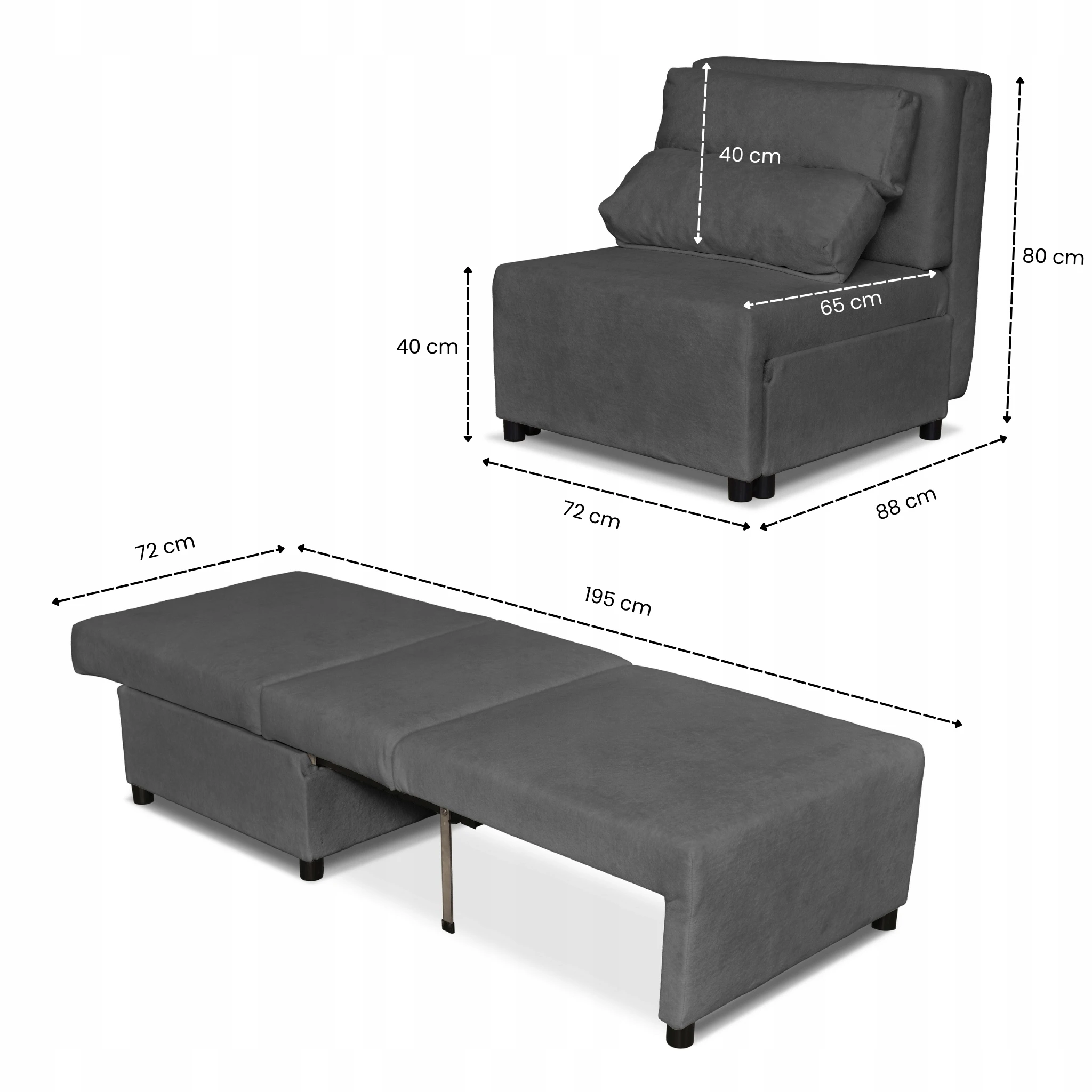 ✅ Do małych mieszkań – połączenie fotela i łóżka z pojemnikiem pozwala oszczędzić miejsce