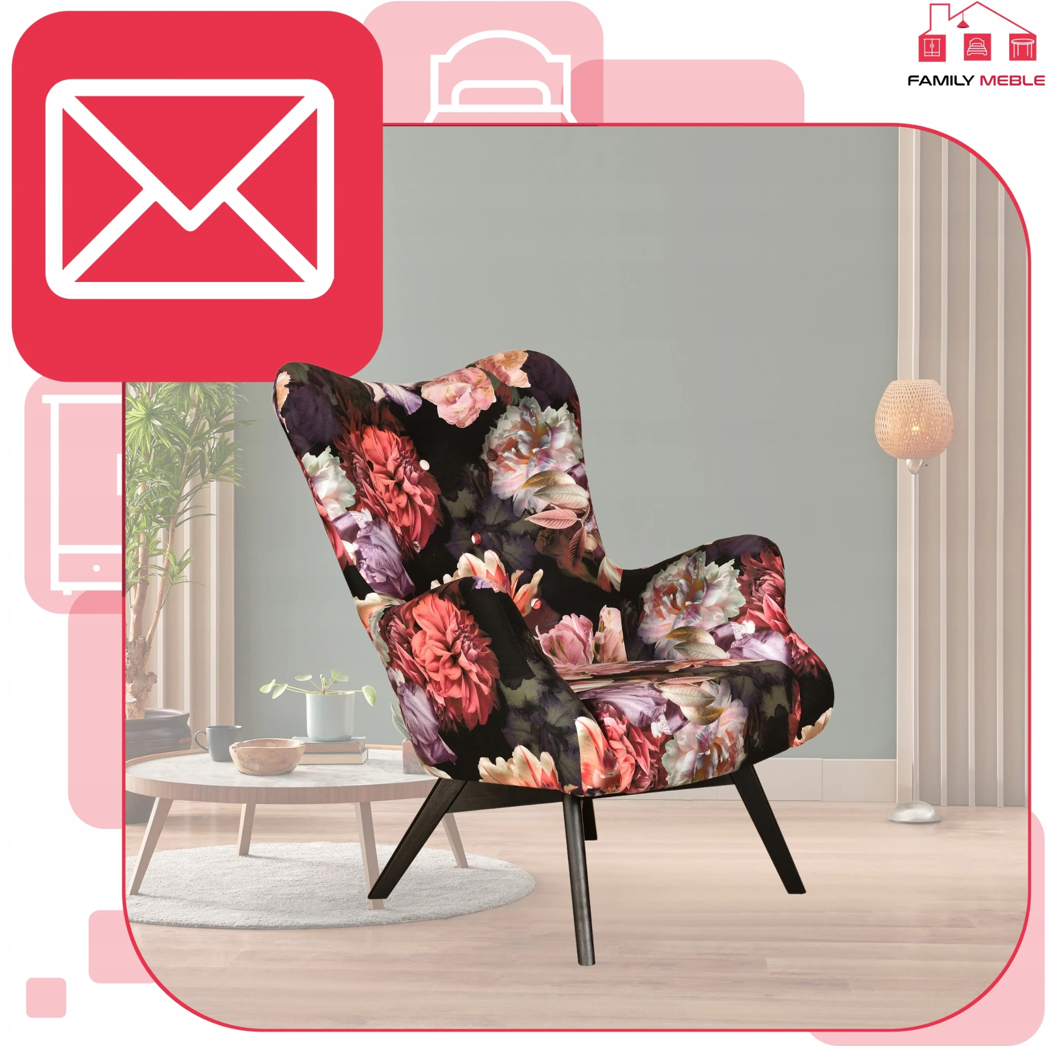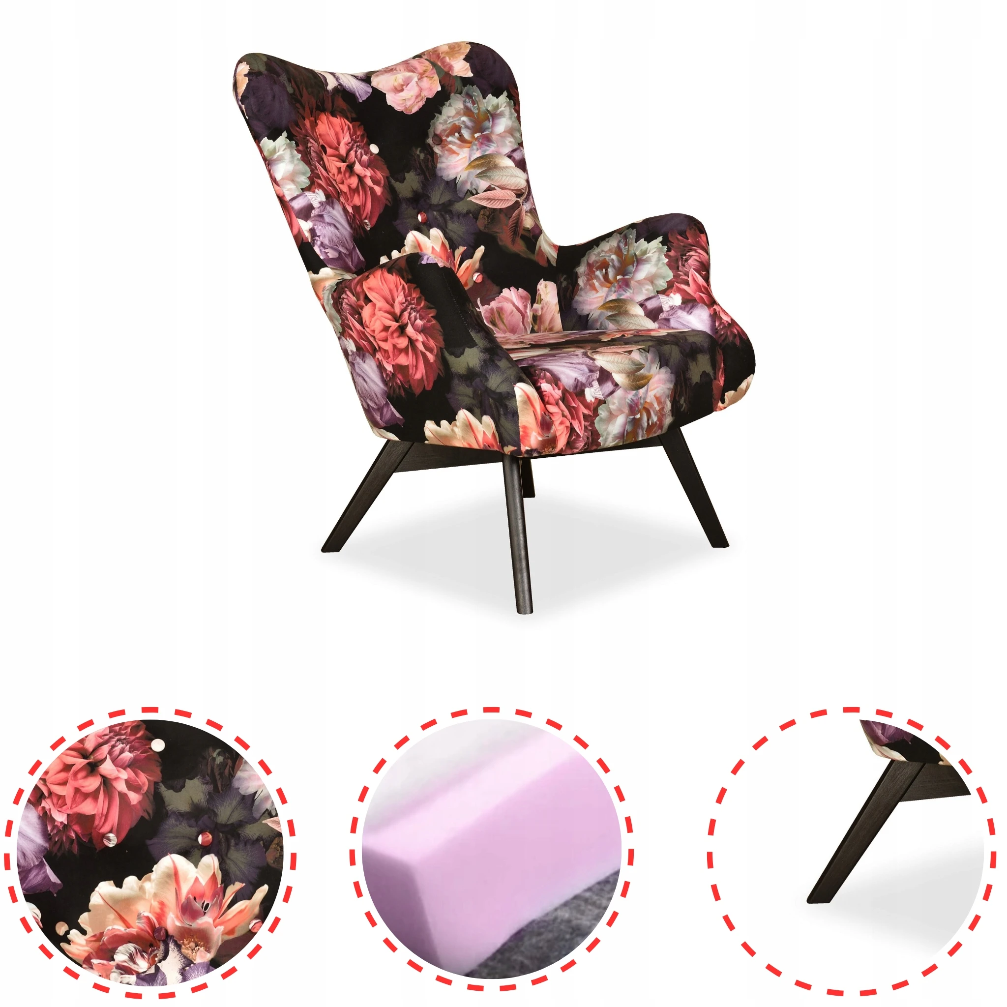 Fotel skandynawski Luna Print uszak muszelka Family meble kwiaty piwonie 3D