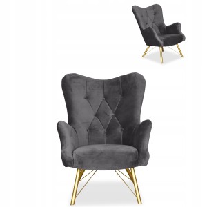 Fotel skandynawski Luna uszak pikowany muszelka Family meble brunatny ciemny