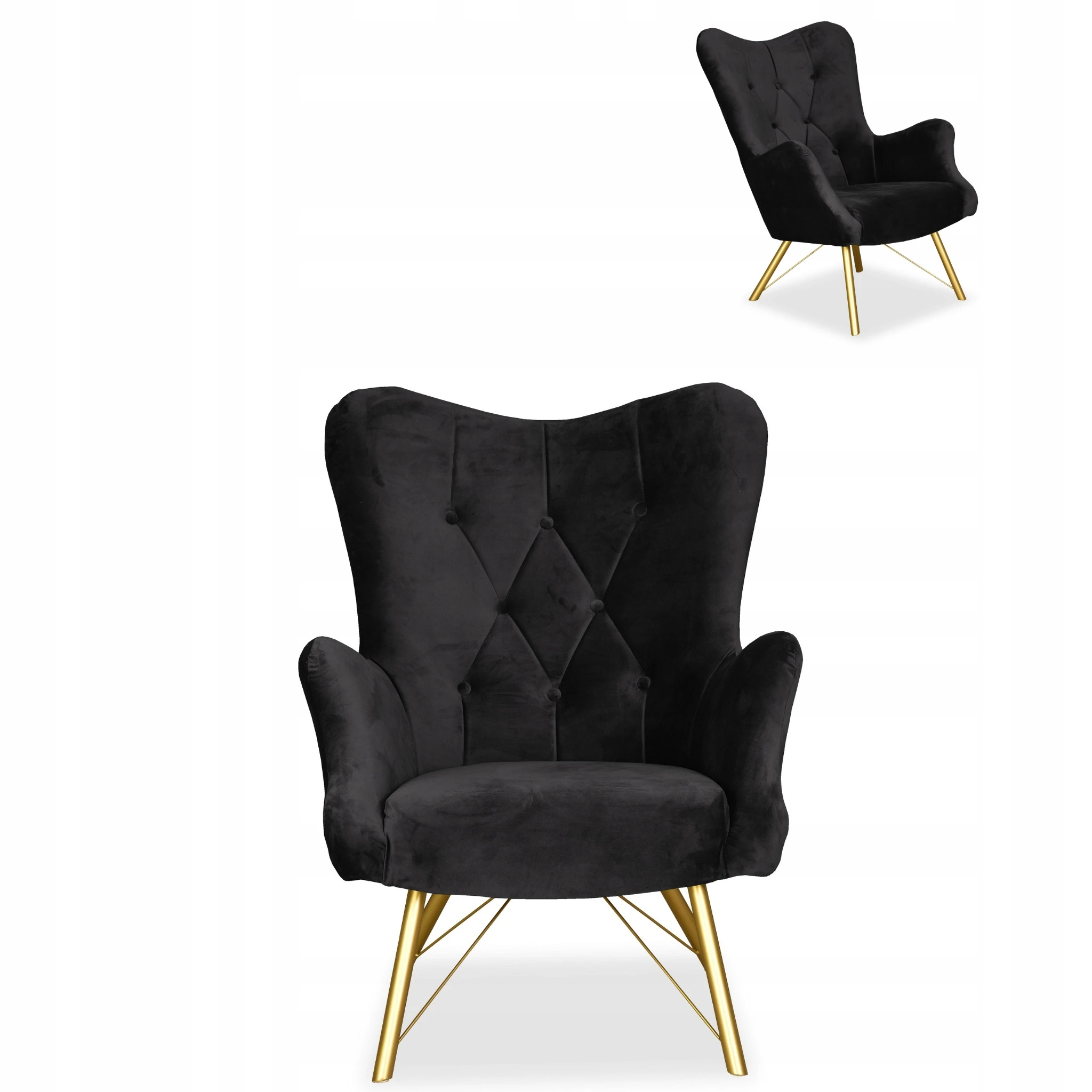 Fotel skandynawski Luna uszak pikowany muszelka Family meble czarny aksamit