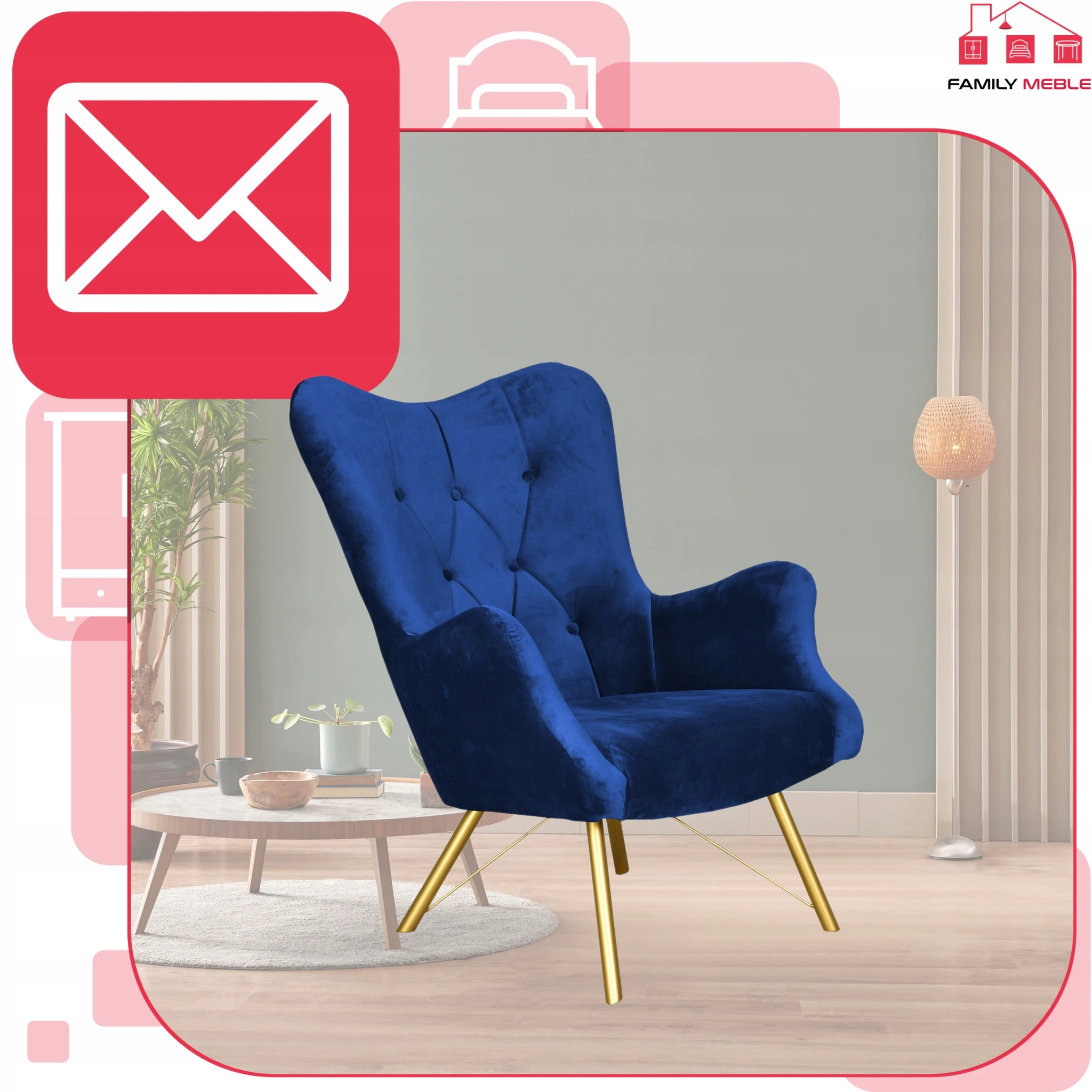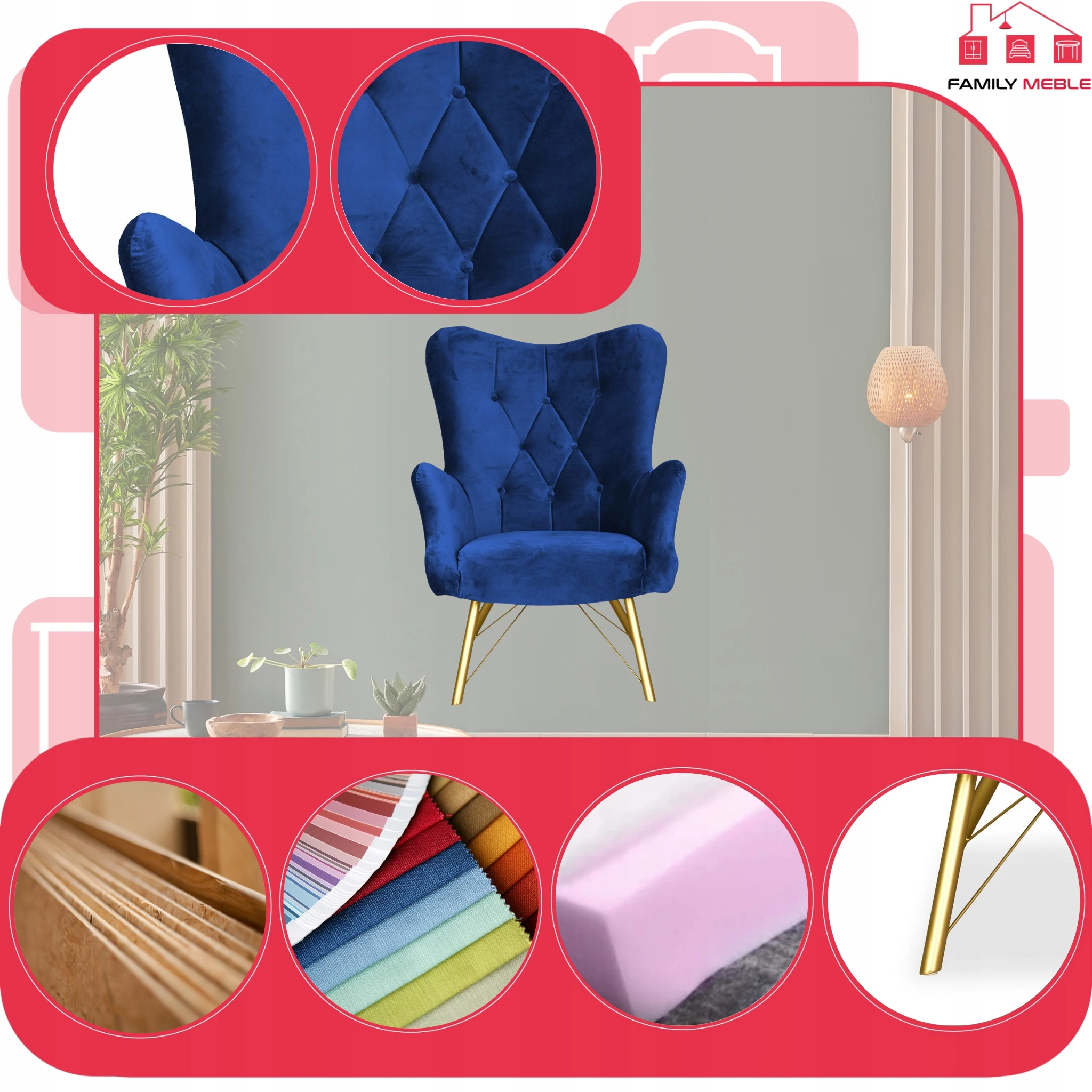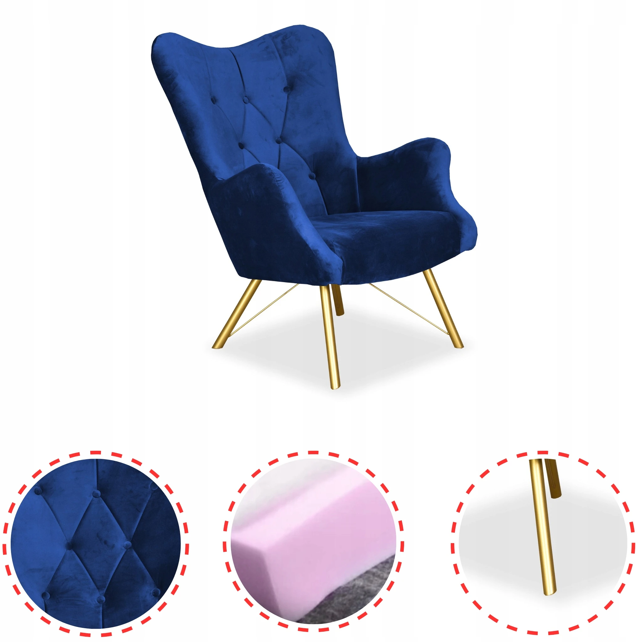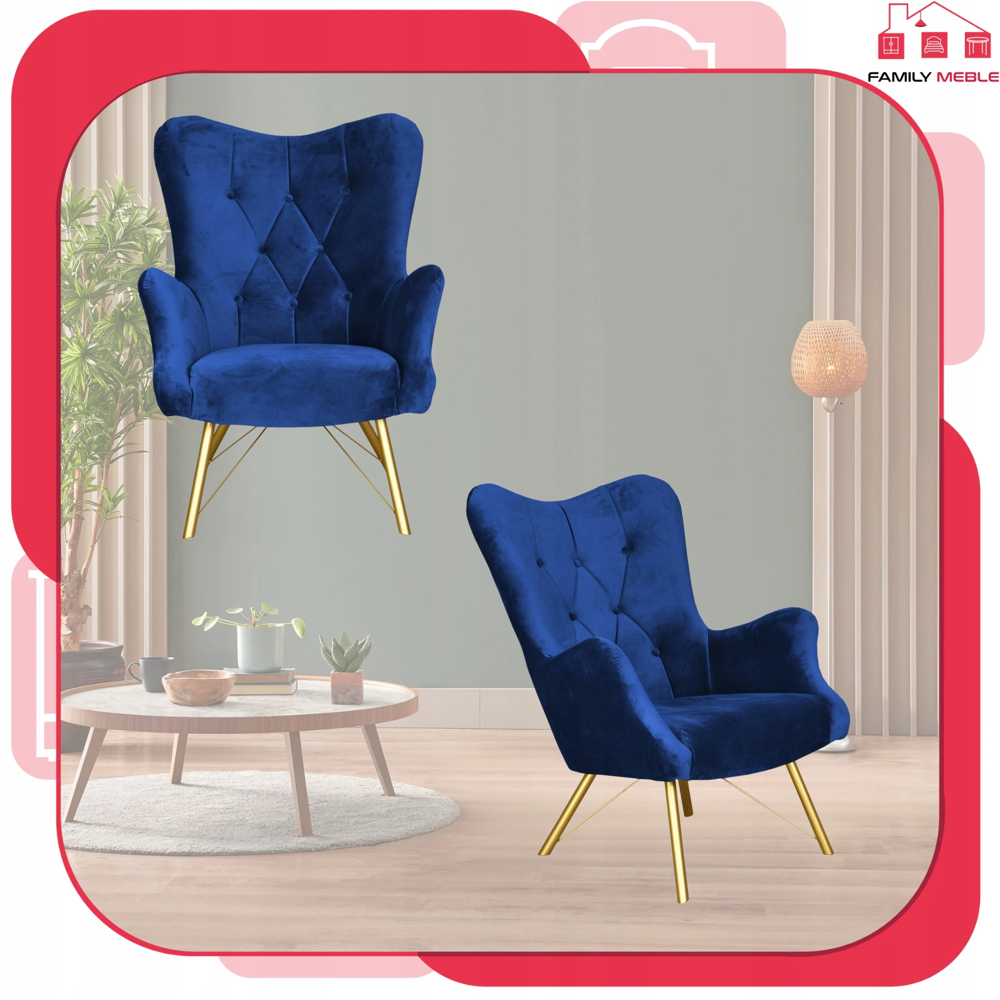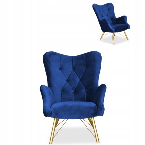 Fotel skandynawski Luna uszak pikowany muszelka Family meble indygo chabrowy