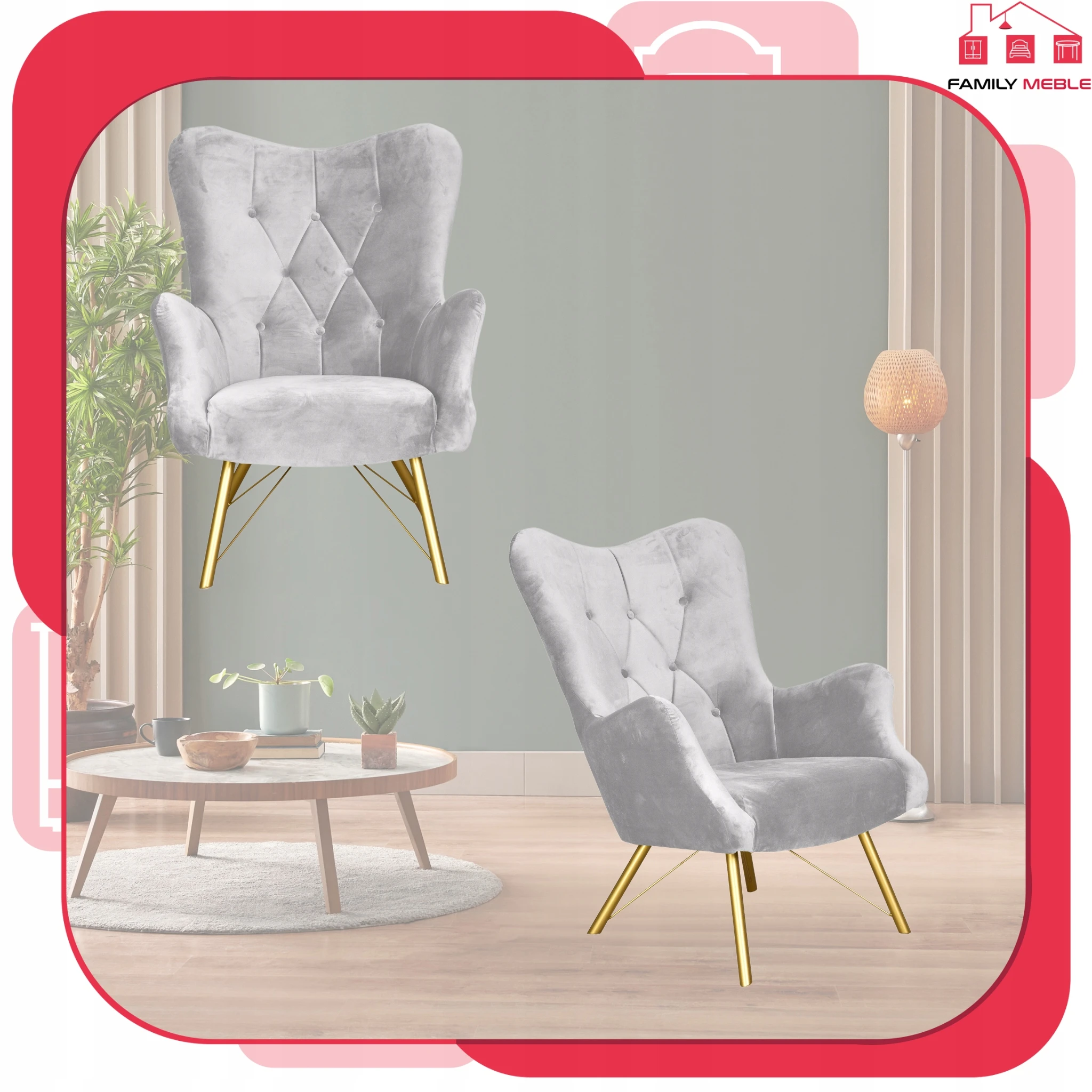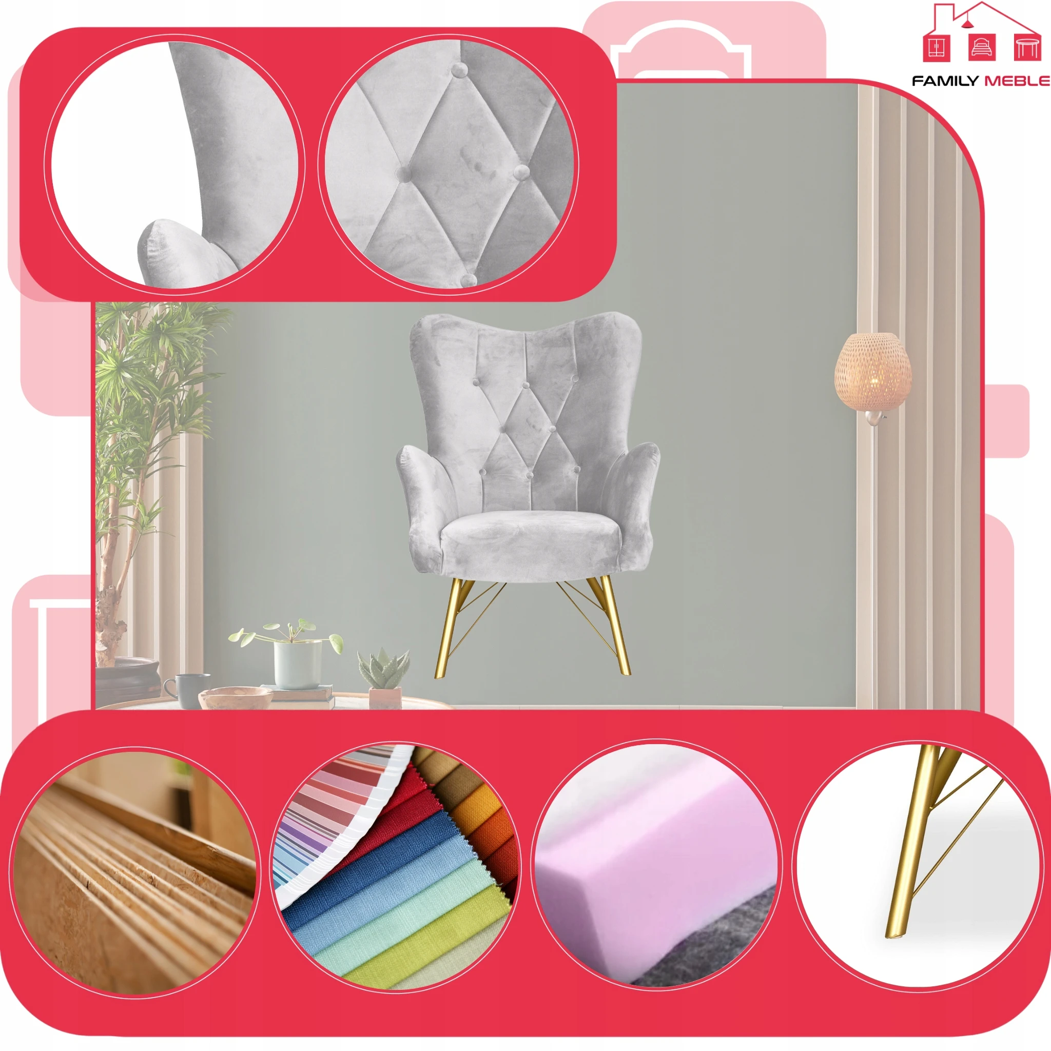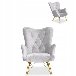 Fotel skandynawski Luna uszak pikowany muszelka Family meble szary welur