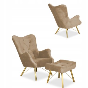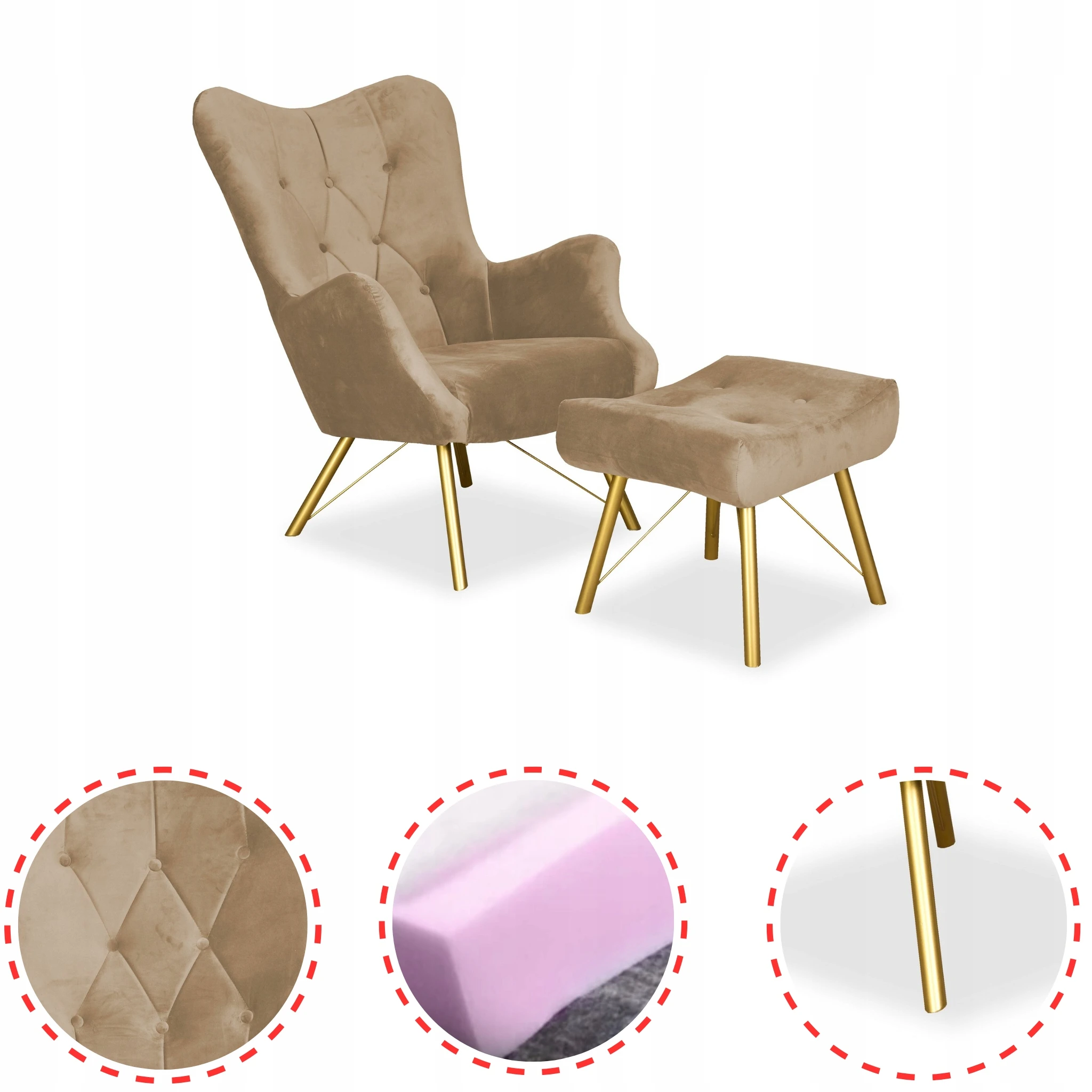 Fotel skandynawski Luna z podnóżkiem pufą guzik Family Meble beżowy kremowy
