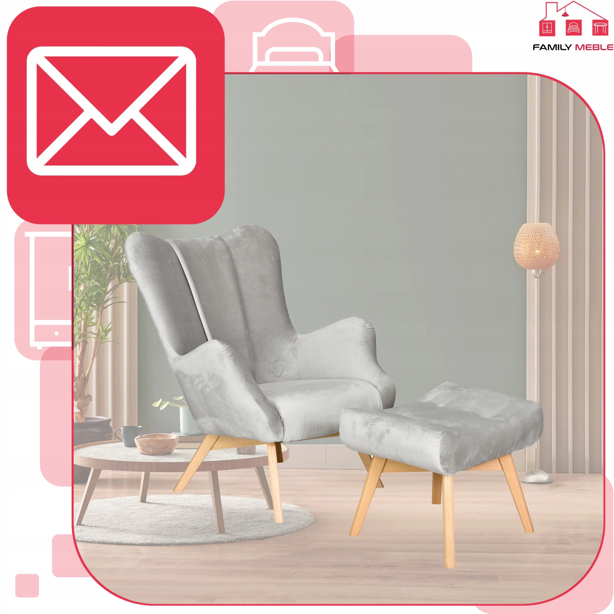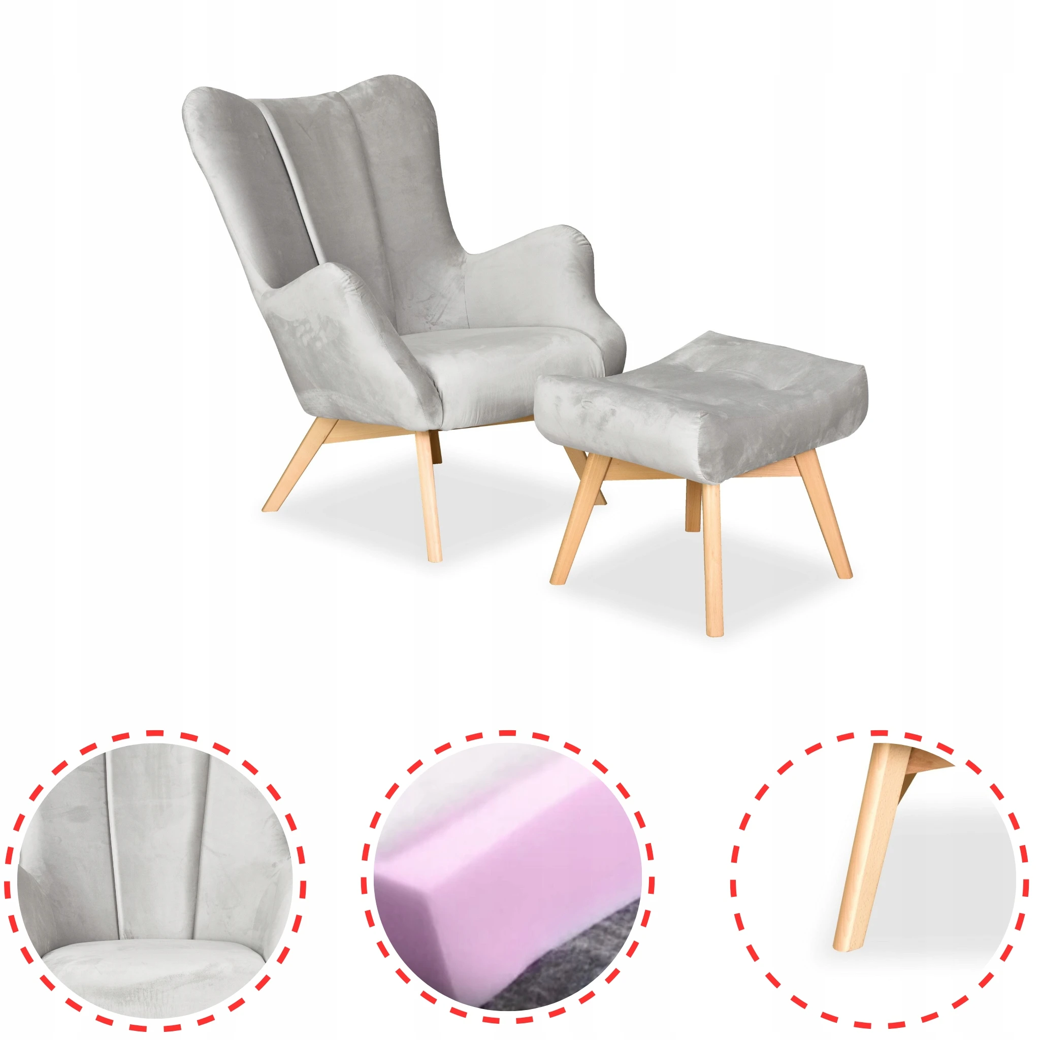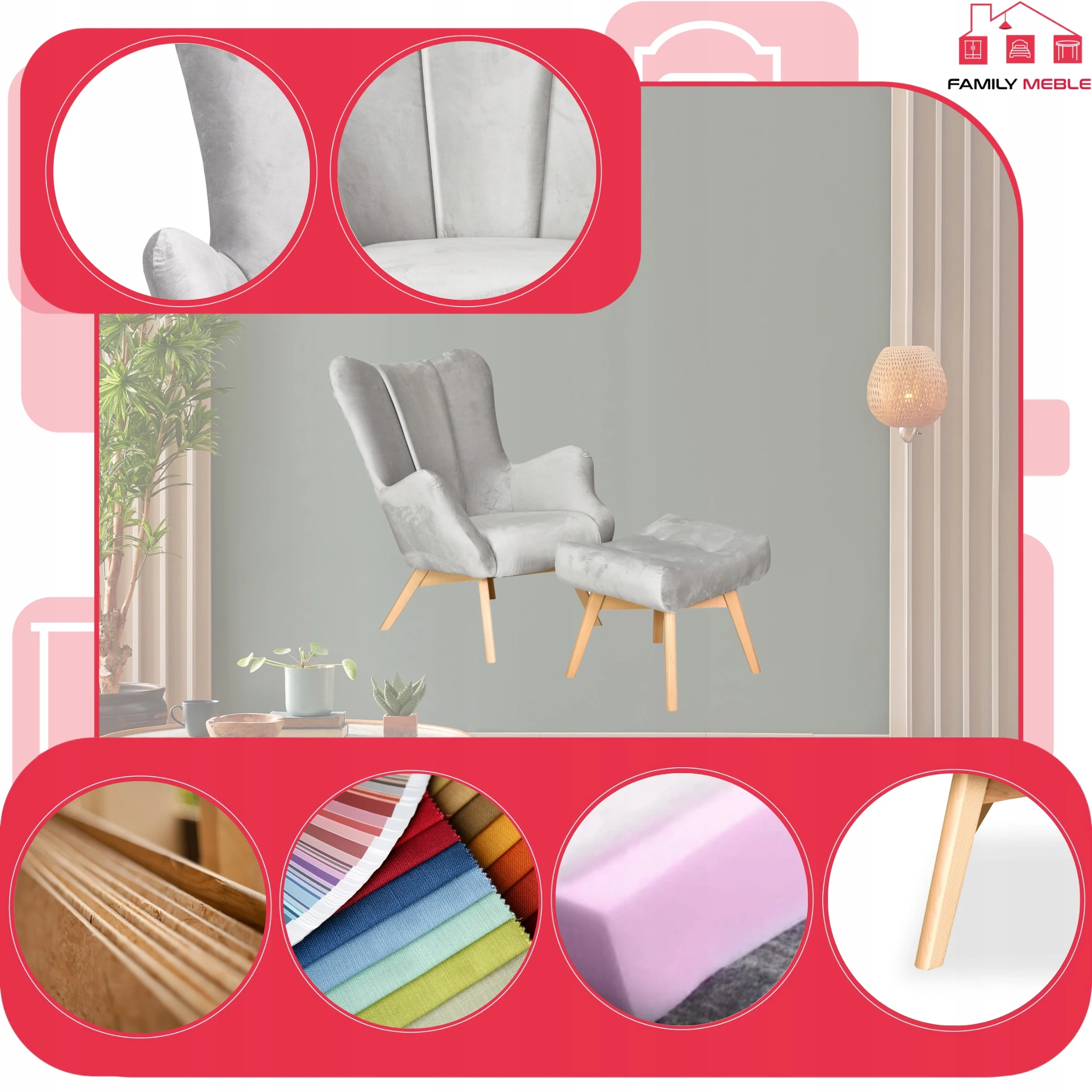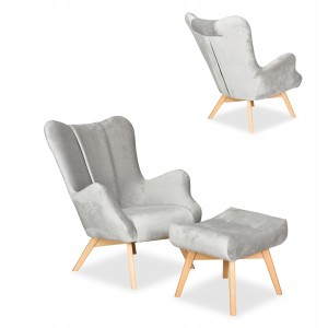 Fotel skandynawski Vika z podnóżkiem pufą profilowany Family Meble szary