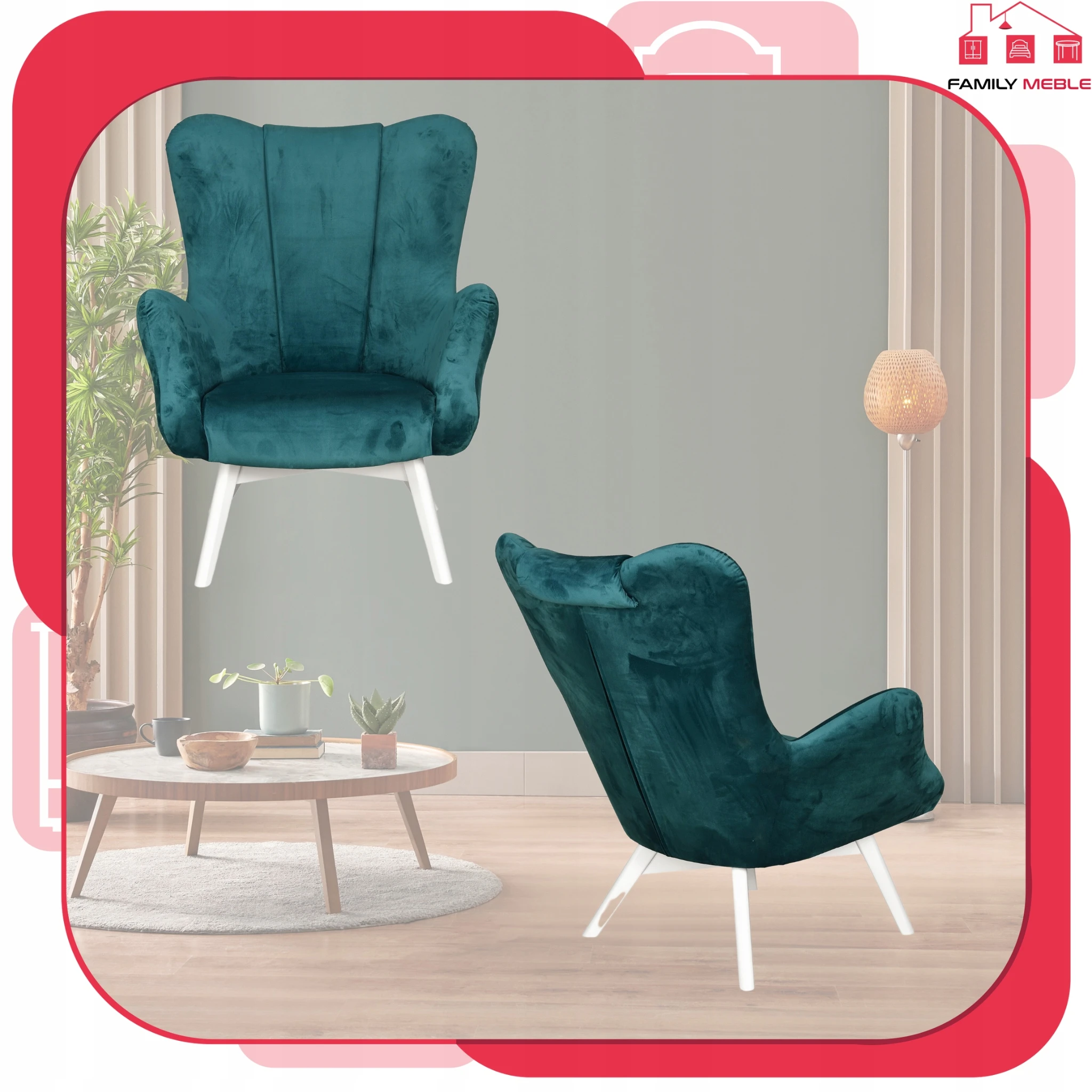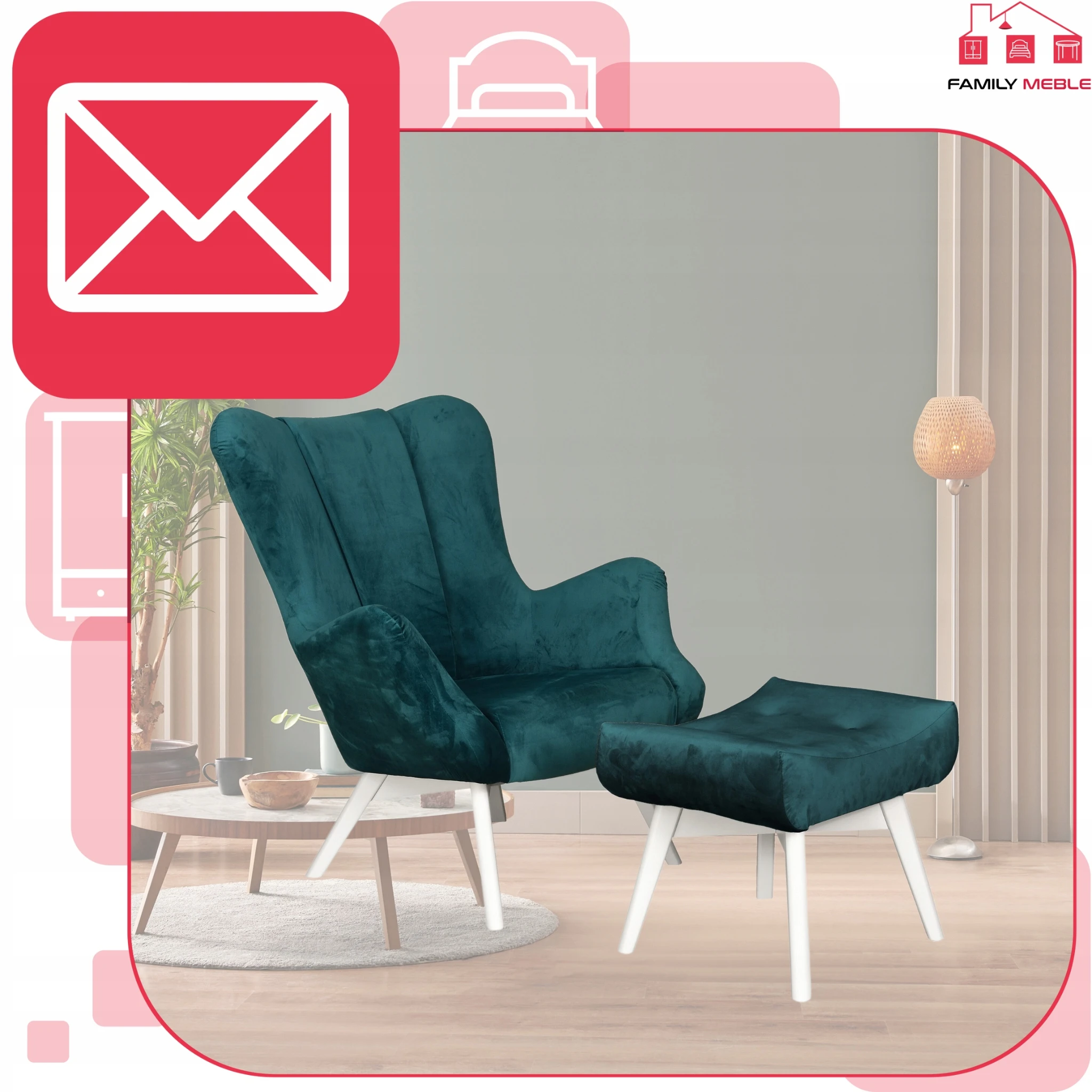 Fotel skandynawski Vika z podnóżkiem pufą profilowany Family Meble turkus