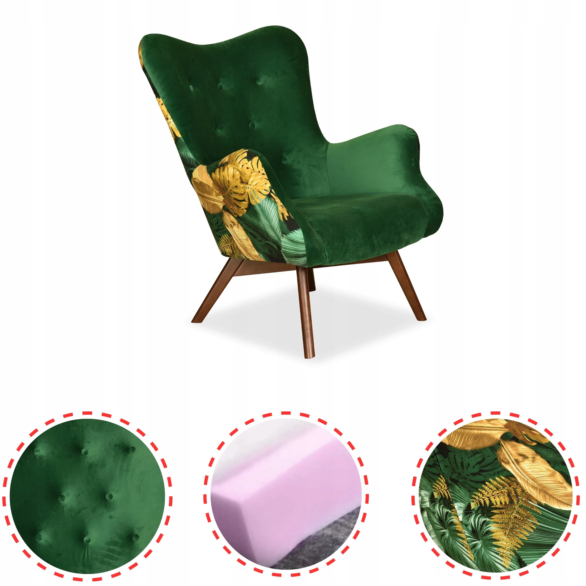 Wzory drukowane są na tkaninach welurowych i plecionkach. W skład kolekcji wchodzą wielobarwne motywy kwiatów. Fotel obity w tak efektowny wzór z pewnością ożywi każde wnętrze.