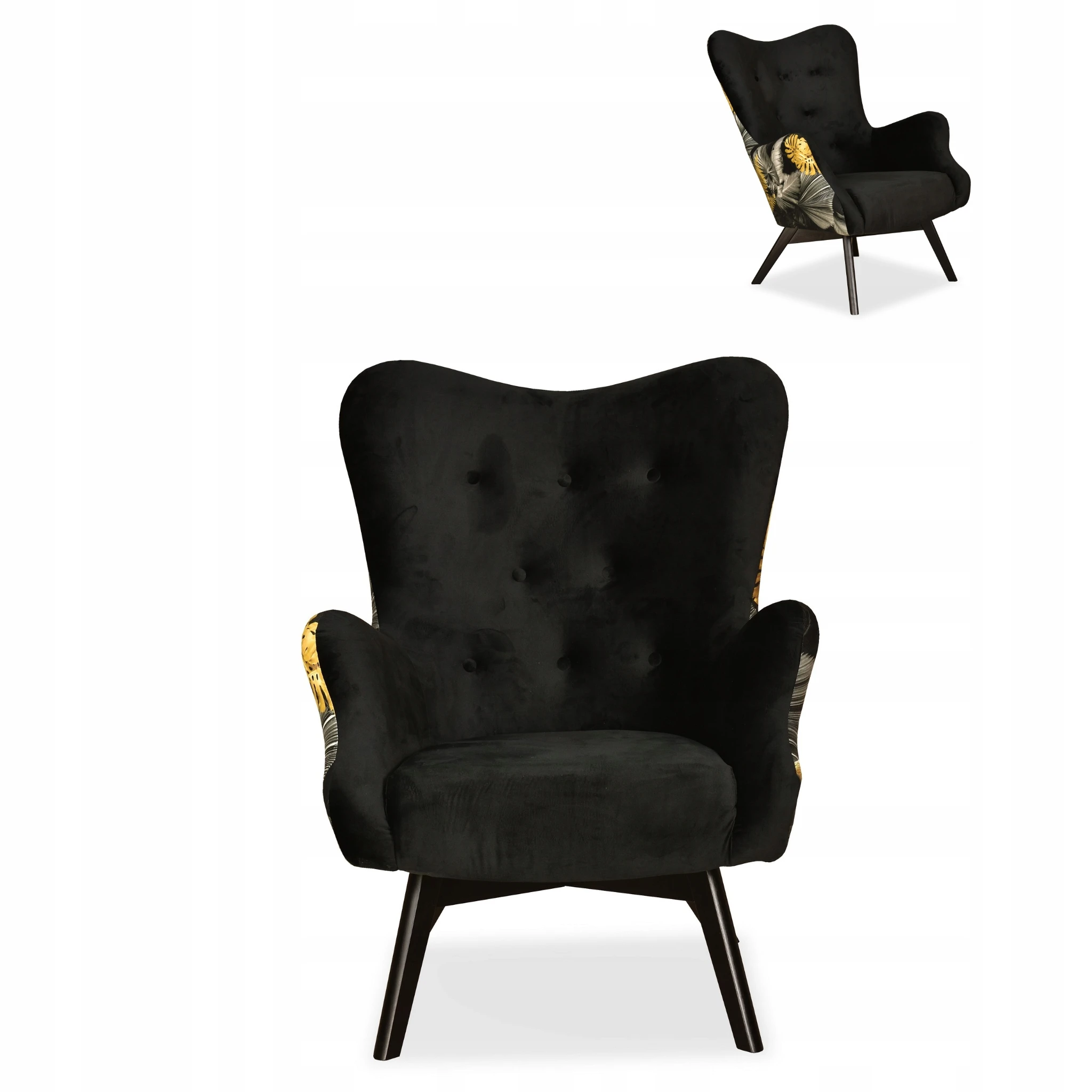 Fotel skandynawski uszak Luna Print Duo Family meble złoto czarna monstera