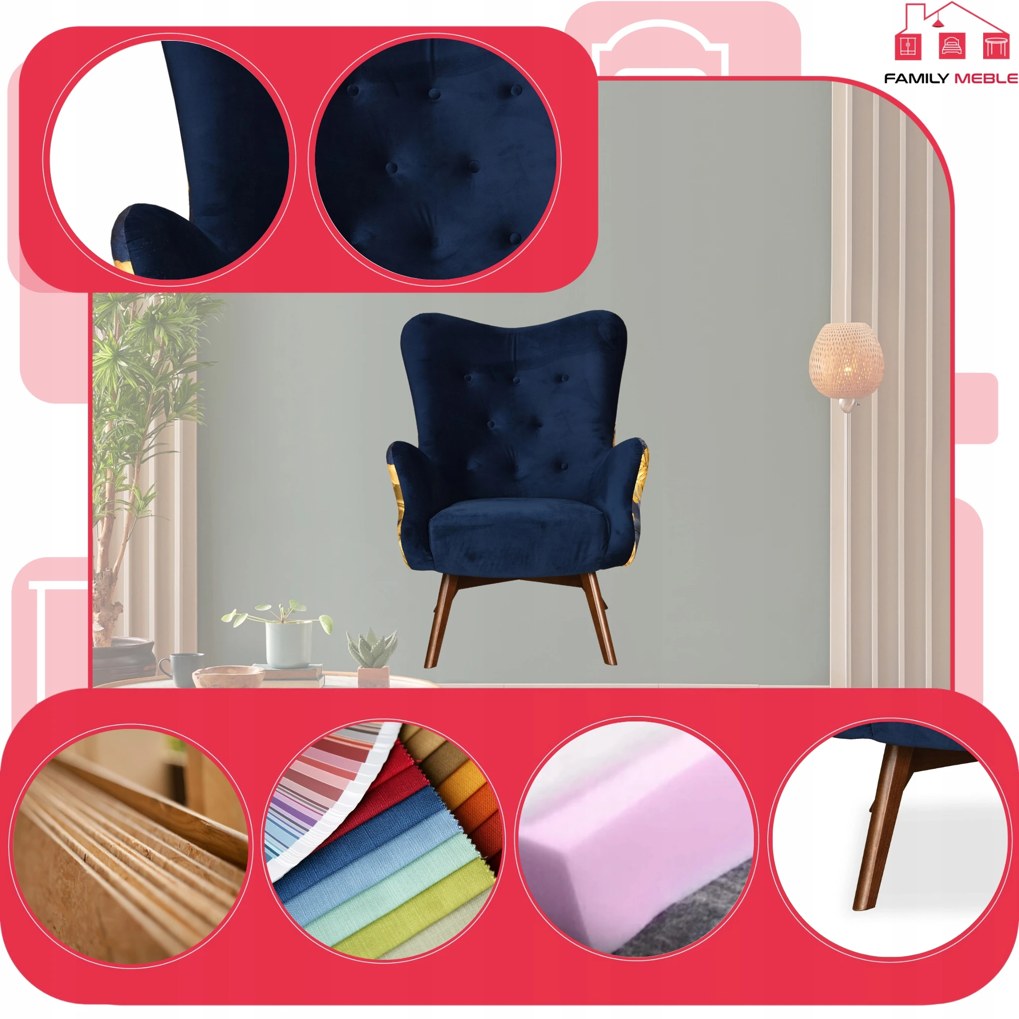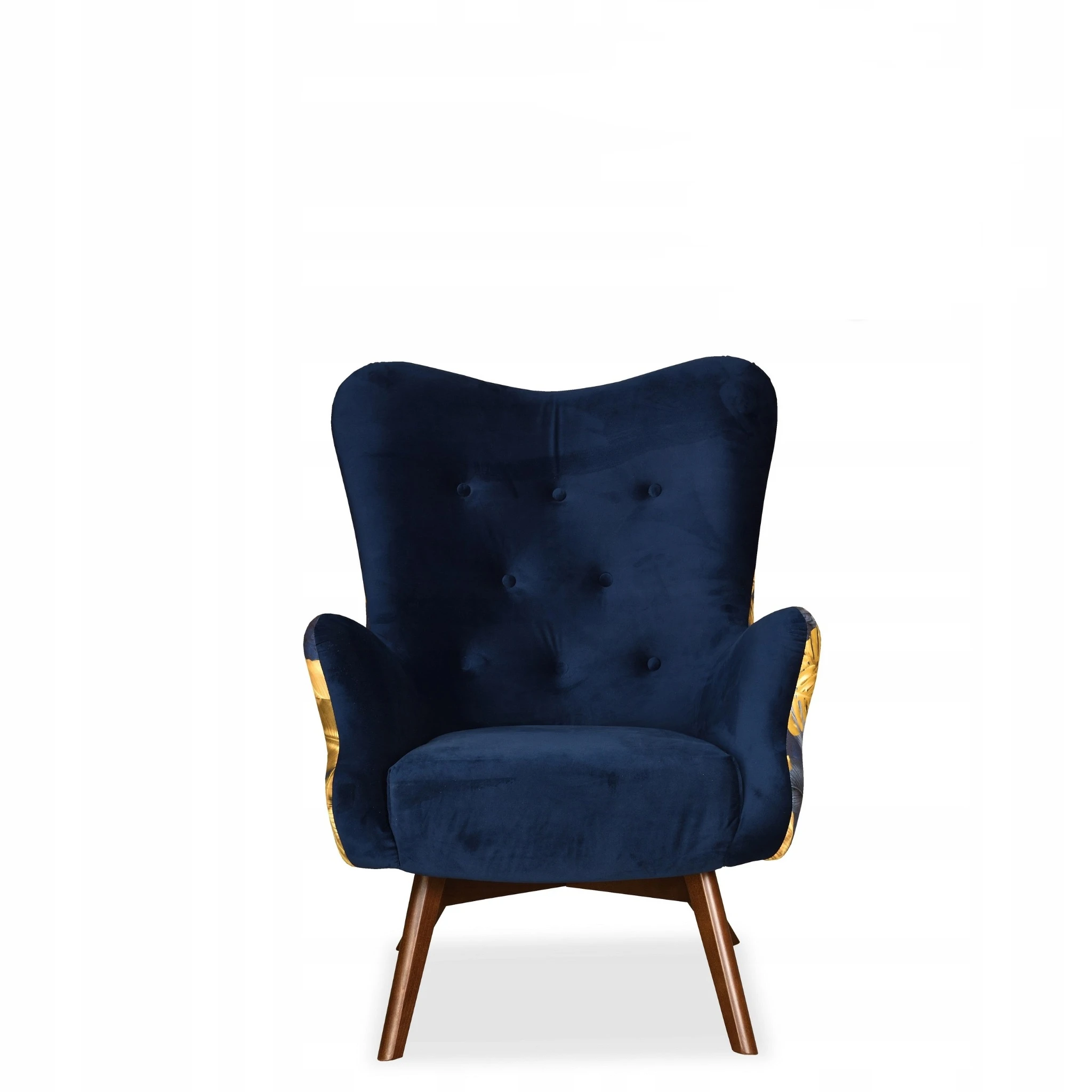 Fotel skandynawski uszak Luna Print Duo do salonu Family meble niebieski