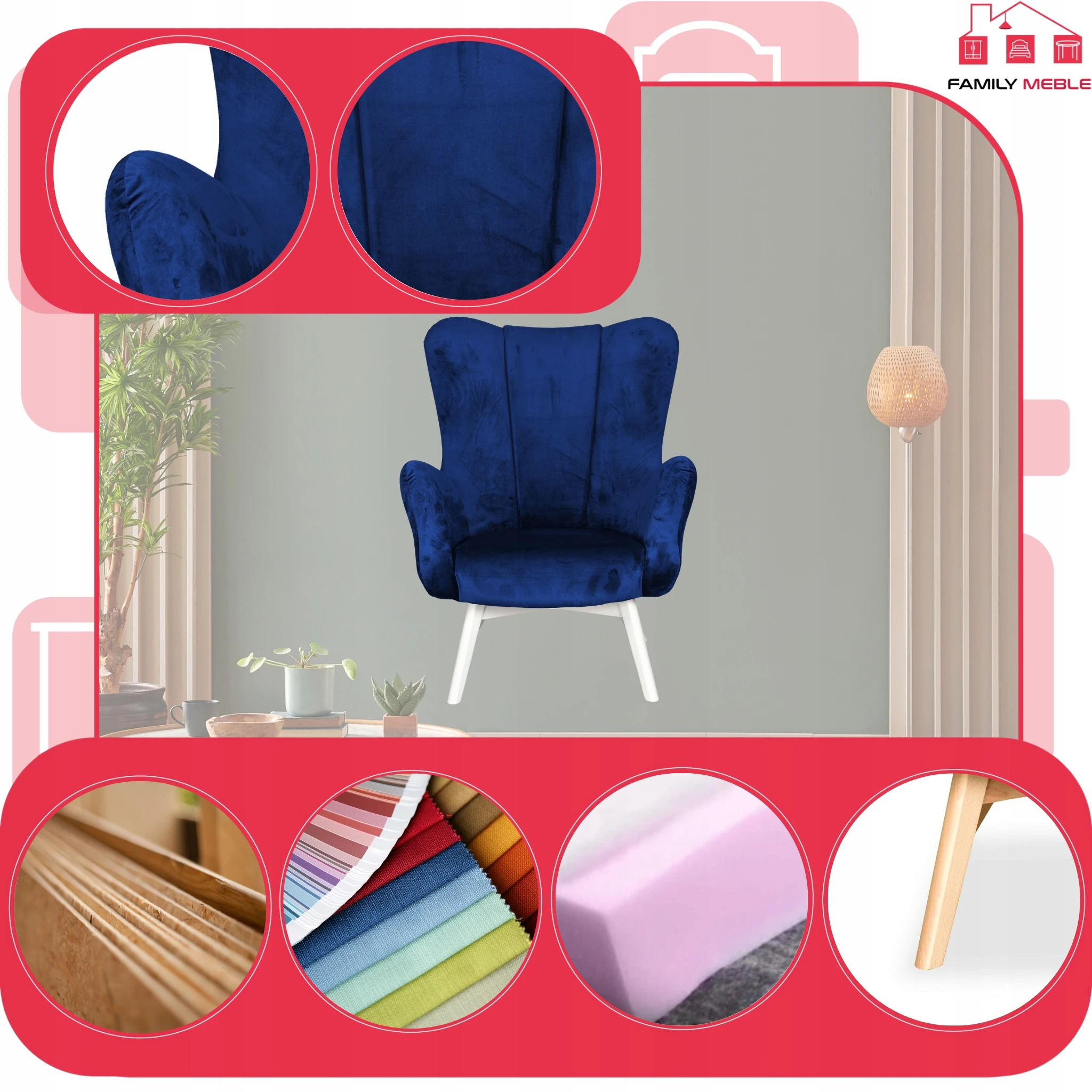 Fotel skandynawski uszak Vika Family meble indygo kobalt niebieski chabrowy