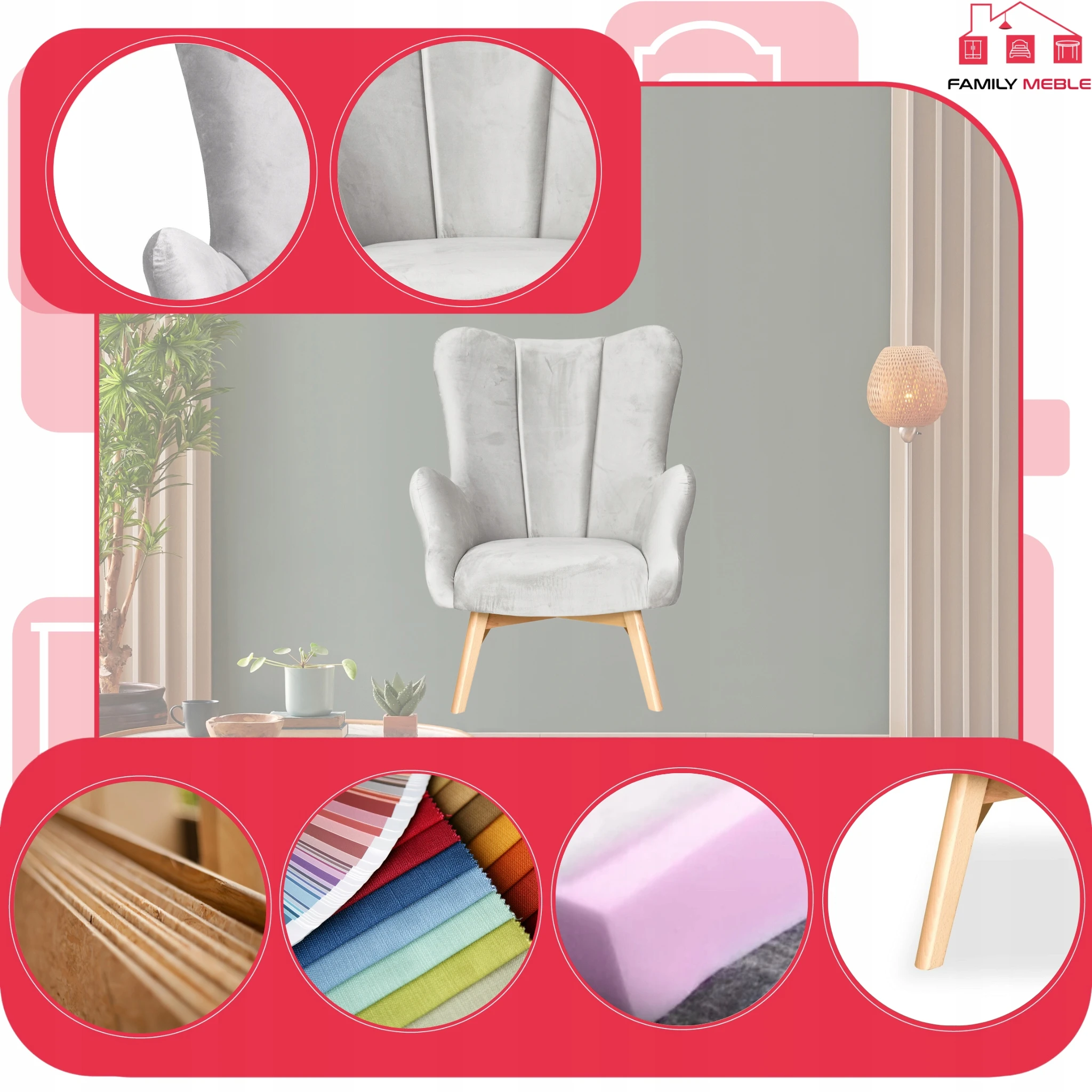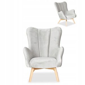 Fotel skandynawski uszak Vika Family meble muszelka profilowany jasno szary