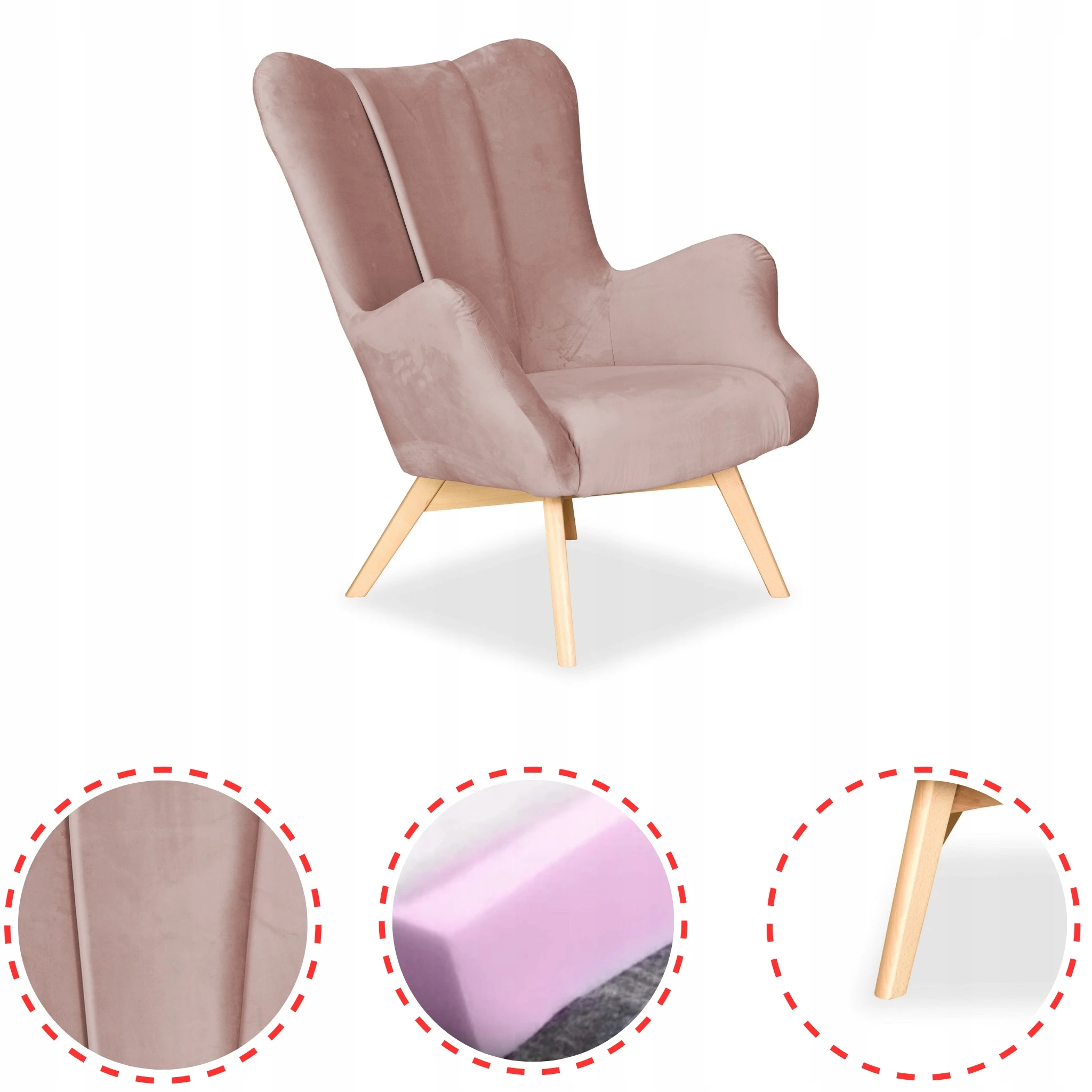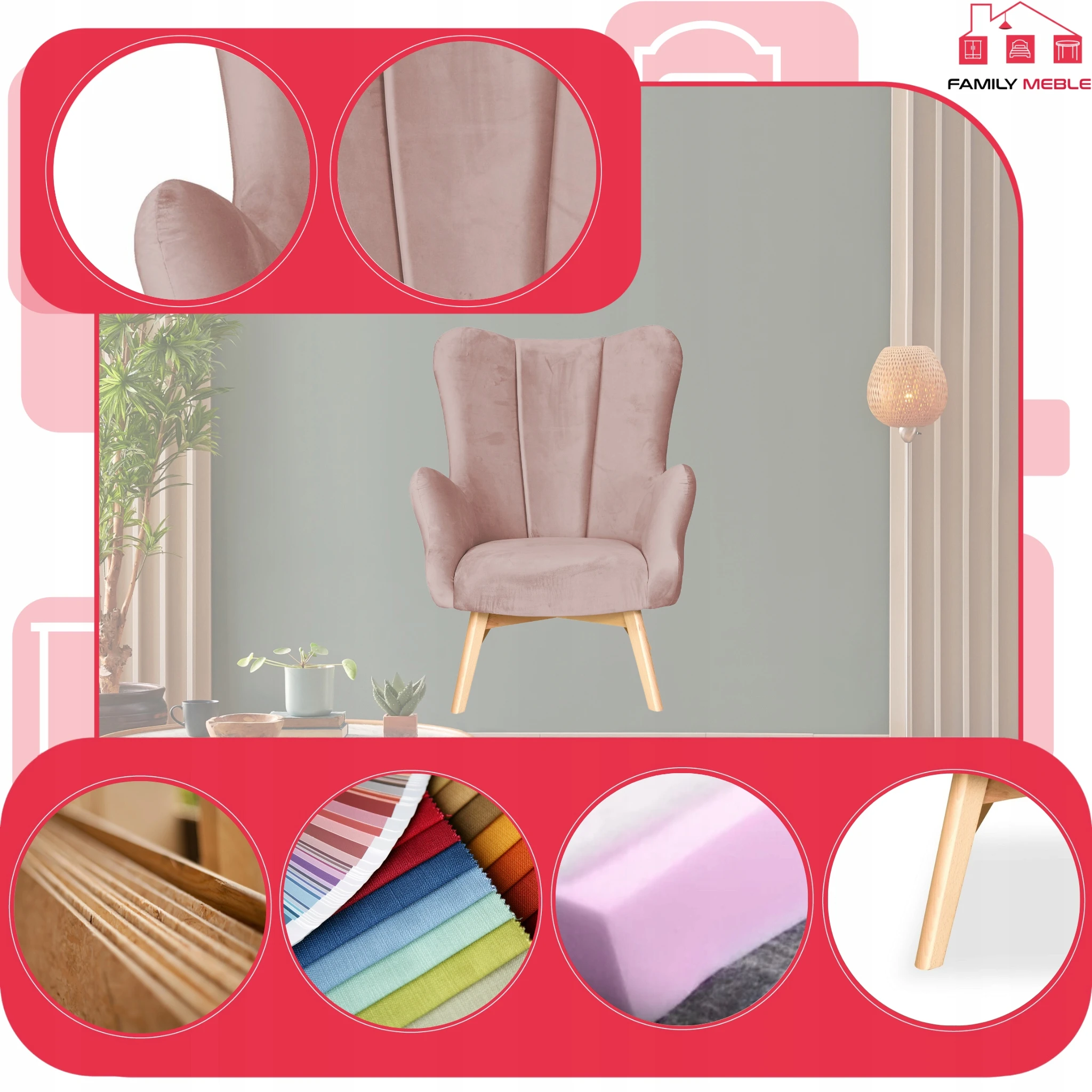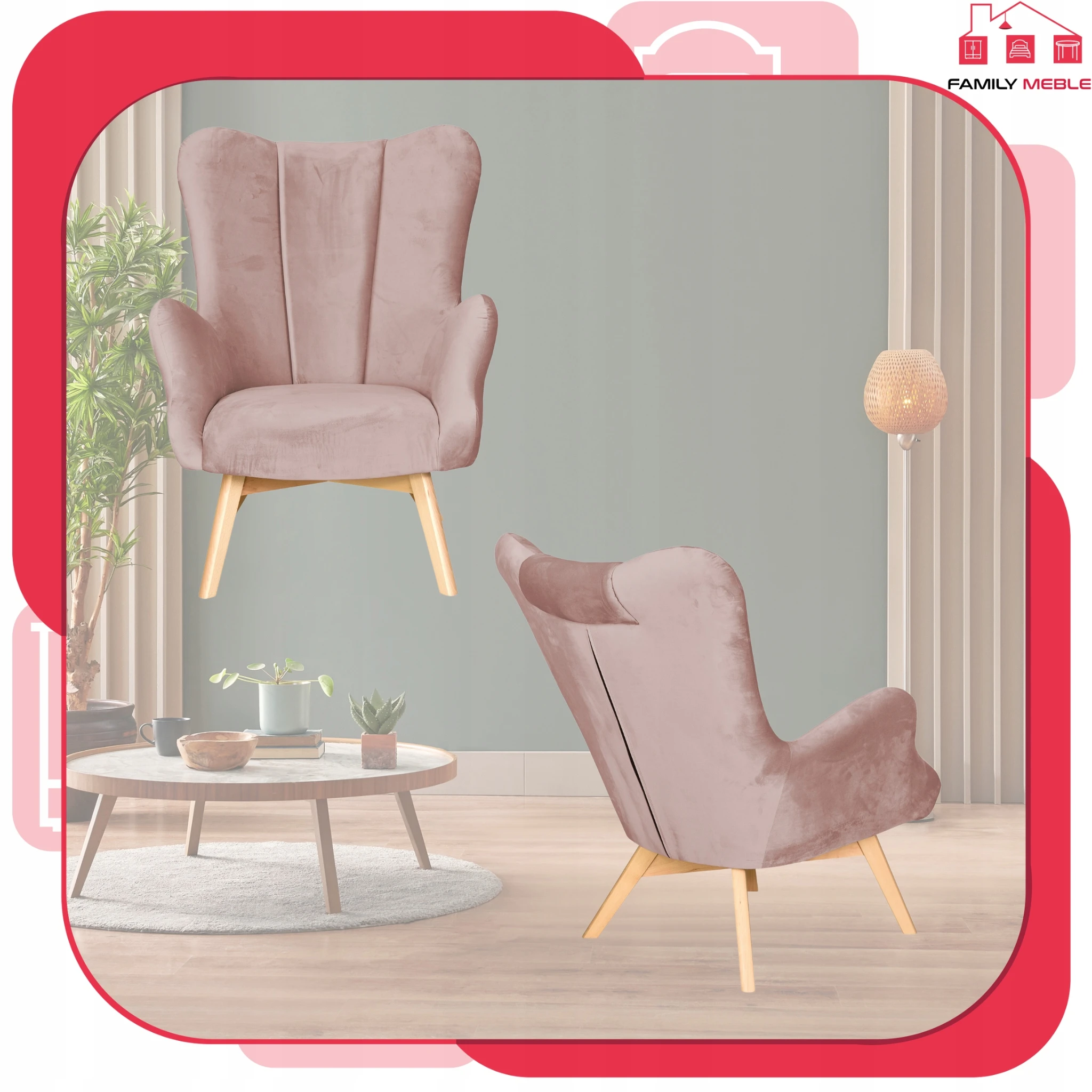 Fotel skandynawski uszak Vika Family meble muszelka profilowany liliowy róż