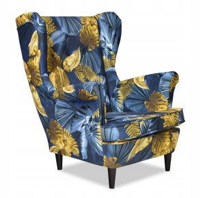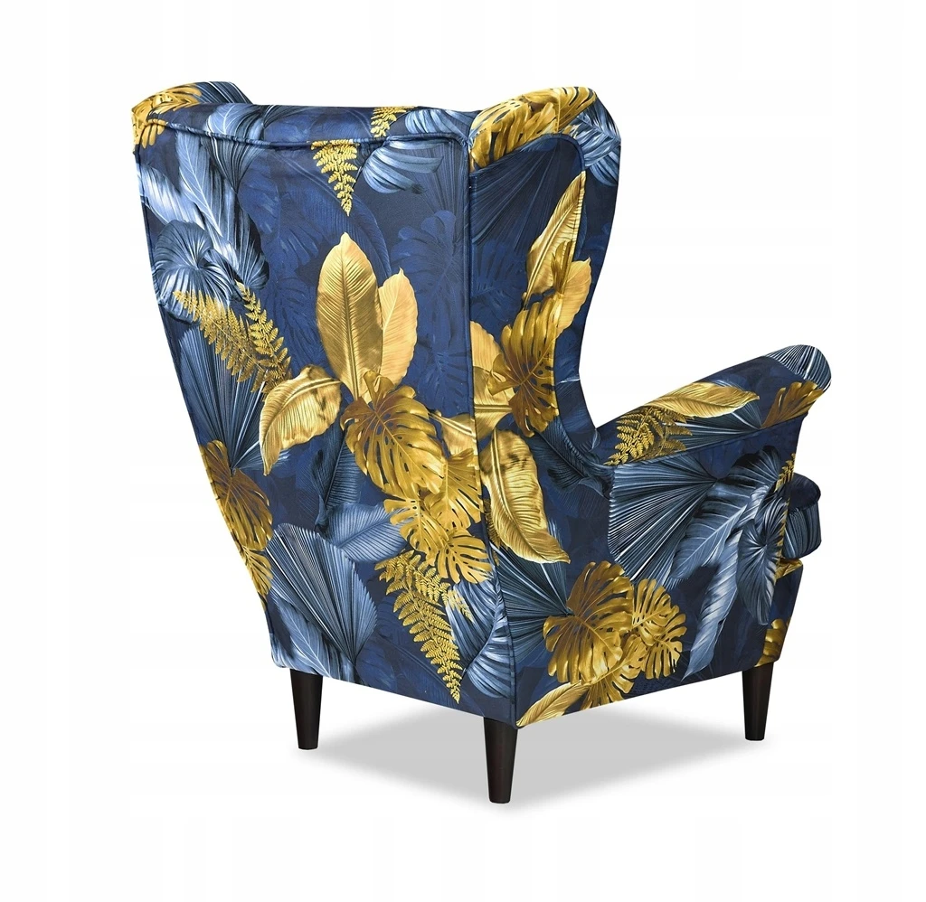 Fotel uszak ARI PRINT skandynawski Family Meble ZŁOTE LISCIE MONSTERY