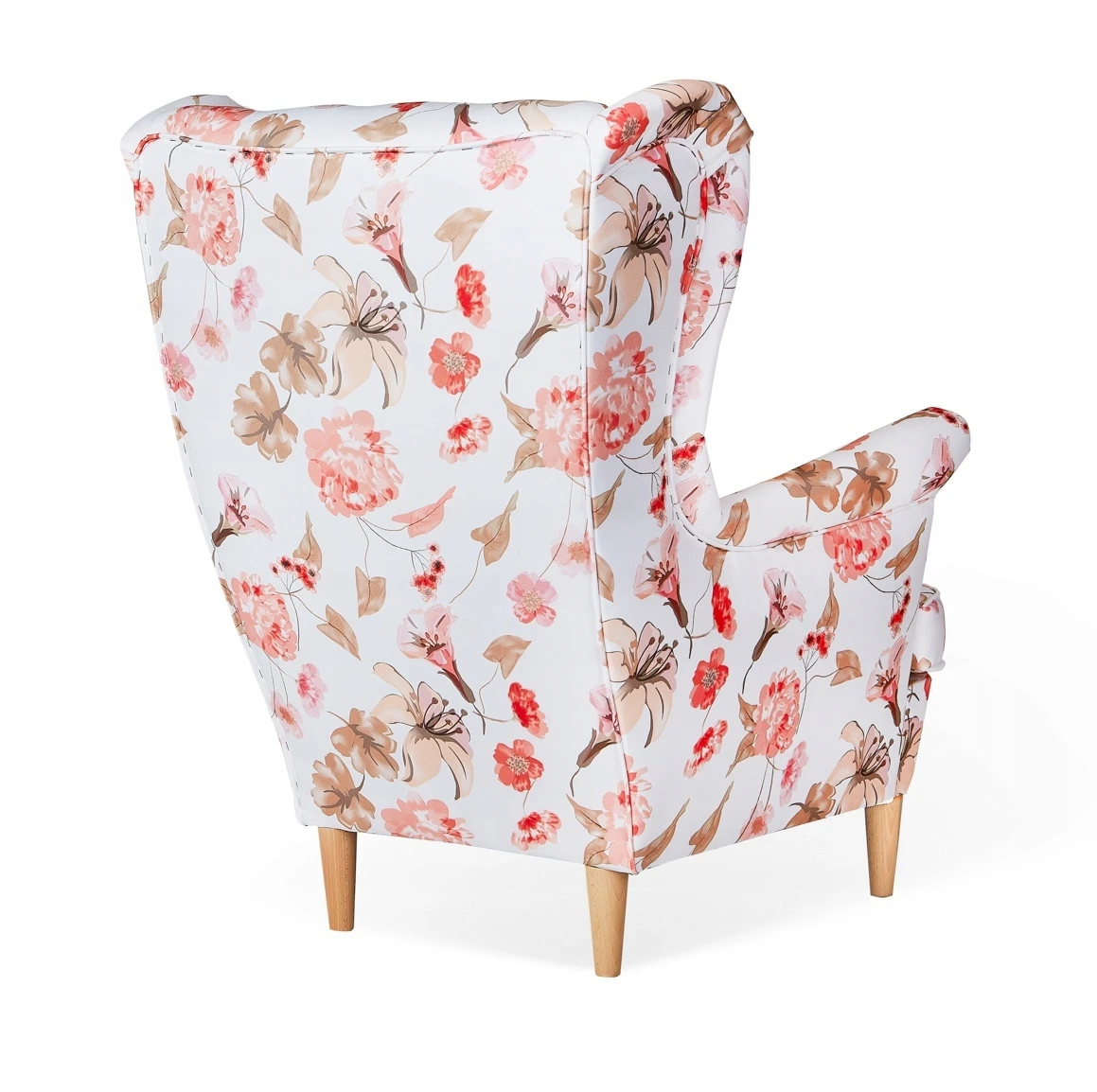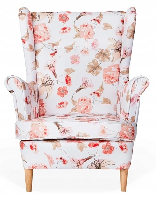 Fotel uszak ARI PRINT skandynawski Family Meble kwiaty brzoskwiniowy