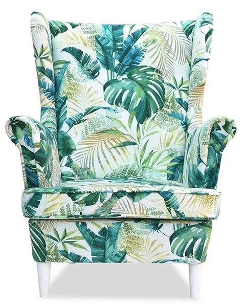 Fotel uszak ARI PRINT skandynawski Family Meble monstera zielona biała