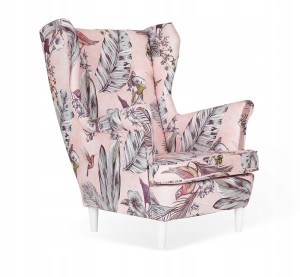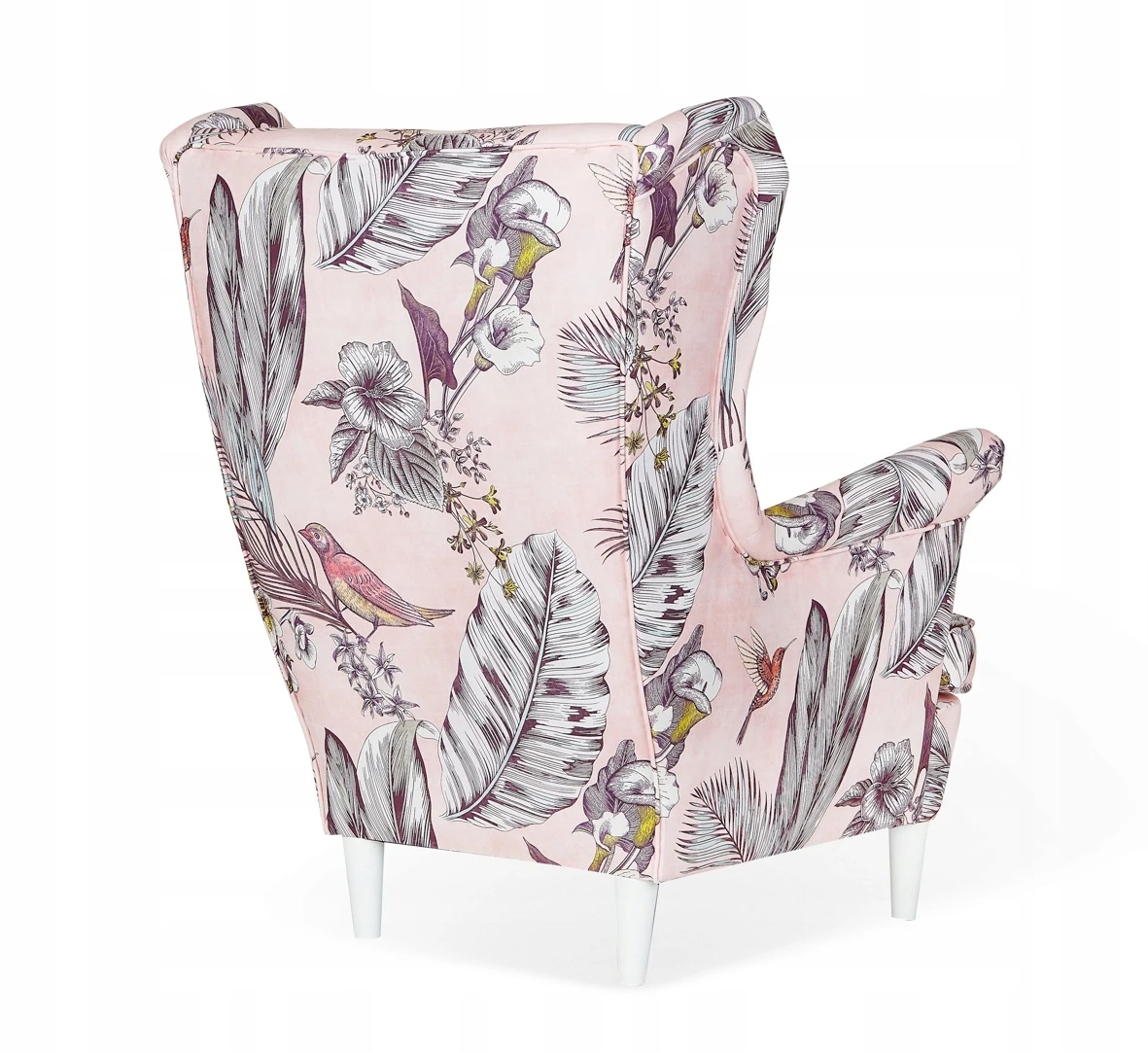 Fotel uszak ARI PRINT skandynawski Family Meble pastelowy różowy liści