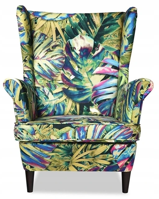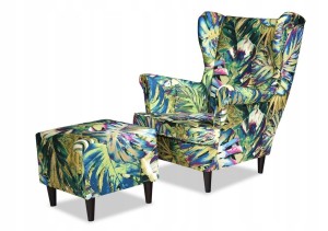 Fotel uszak ARI PRINT z podnóżkiem skandynawski Family Meble Monstera