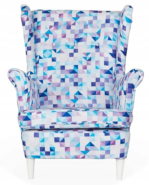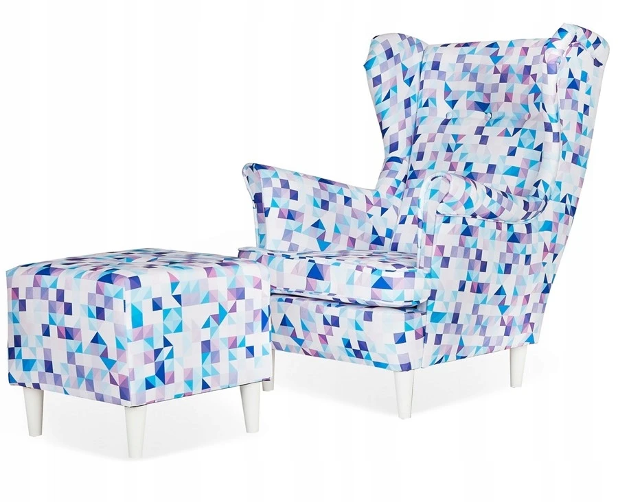 Fotel uszak ARI PRINT z podnóżkiem skandynawski Family Meble klocki