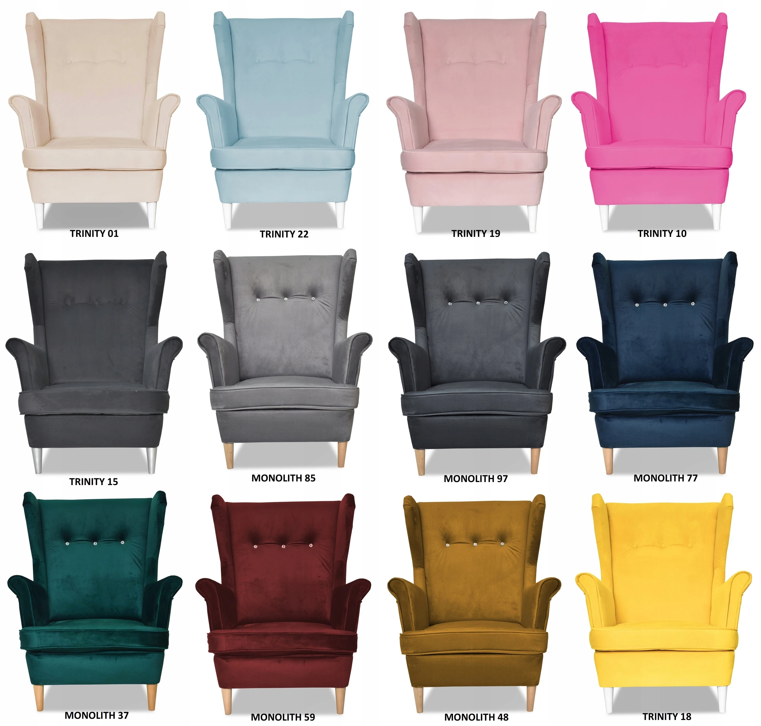 Oparcie tego modelu standardowo zdobione jest KRYSZTAŁKAMI SWAROVSKIEGO. Na życzenie klienta możemy zamienić je na guziki materiałowe, informację o zmianie należy podać w wiadomości dla sprzedającego podczas składania zamówienia.