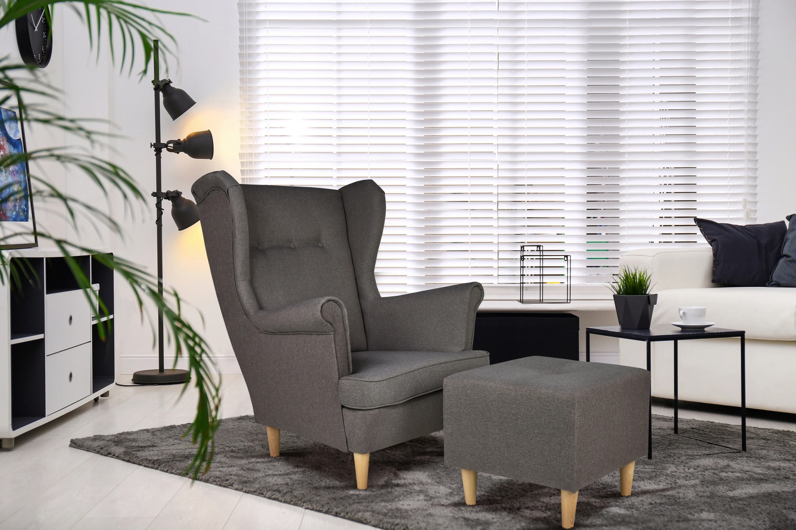 Fotel uszak ARI skandynawski Family Meble szary jasny klasyk, wygodny