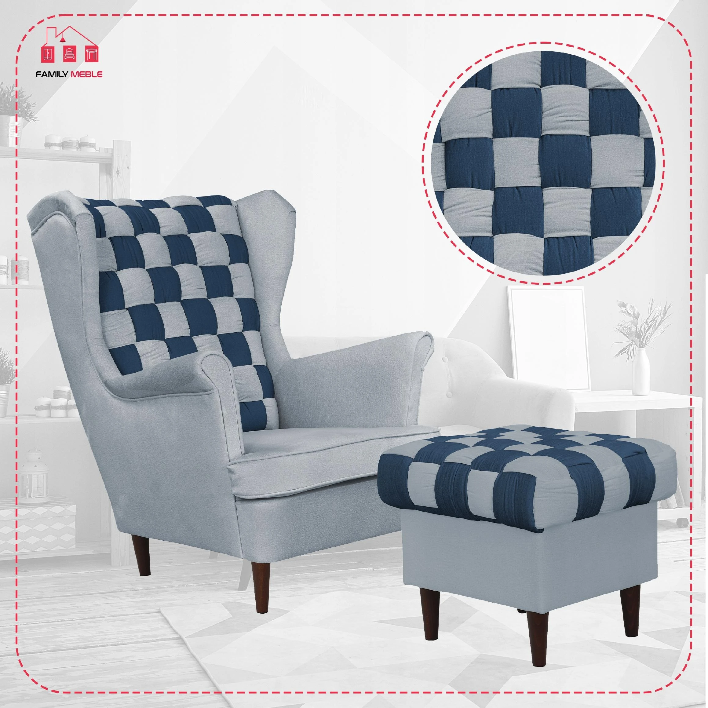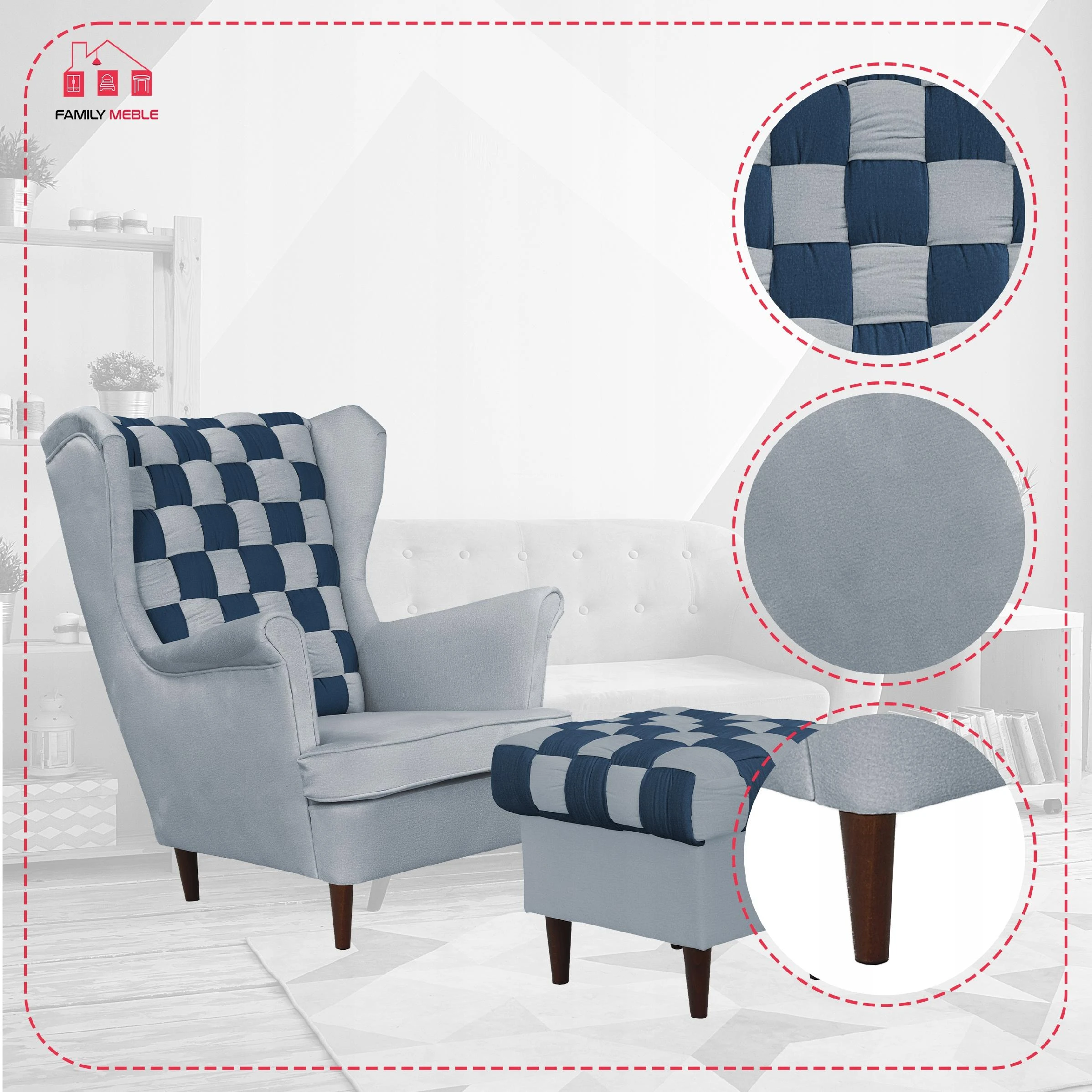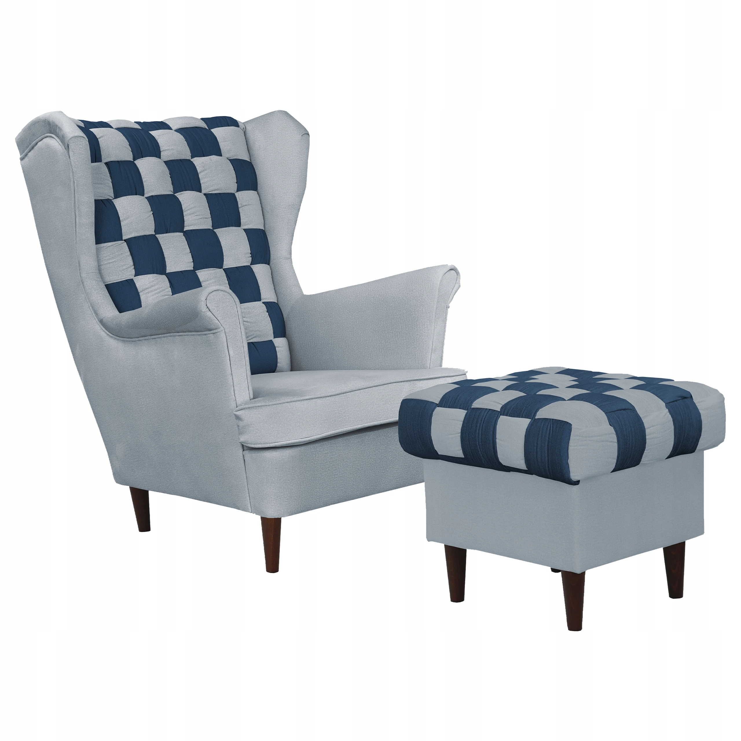 Fotel uszak Carol Duo z podnóżkiem skandynawski Family Meble granat szary