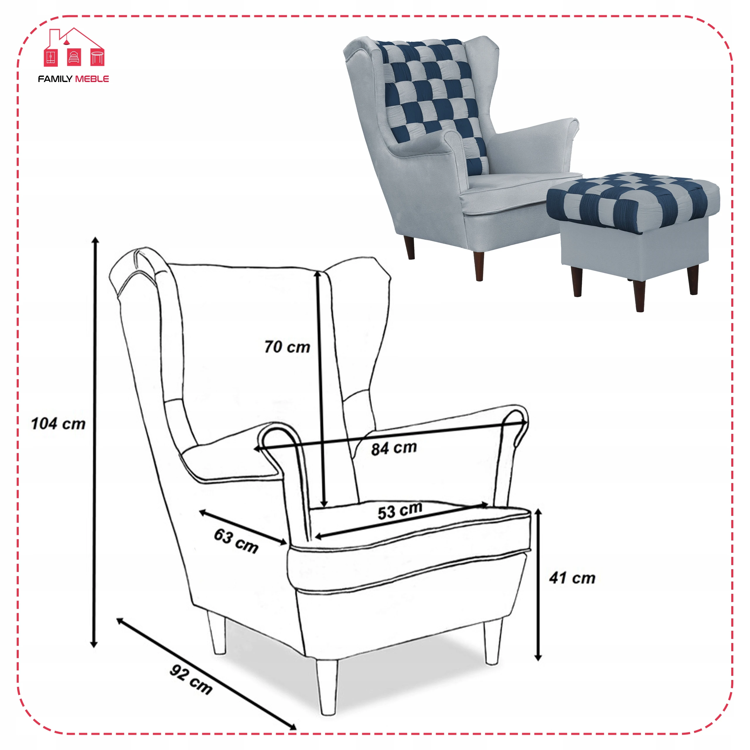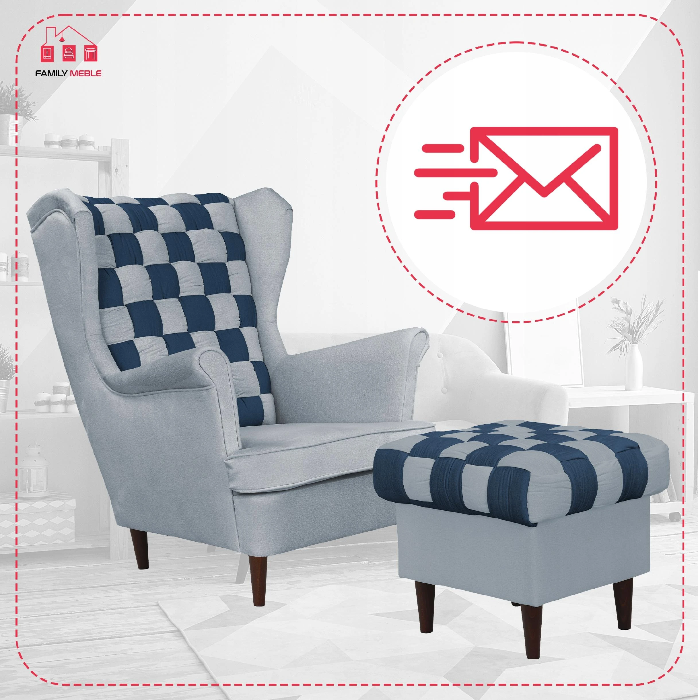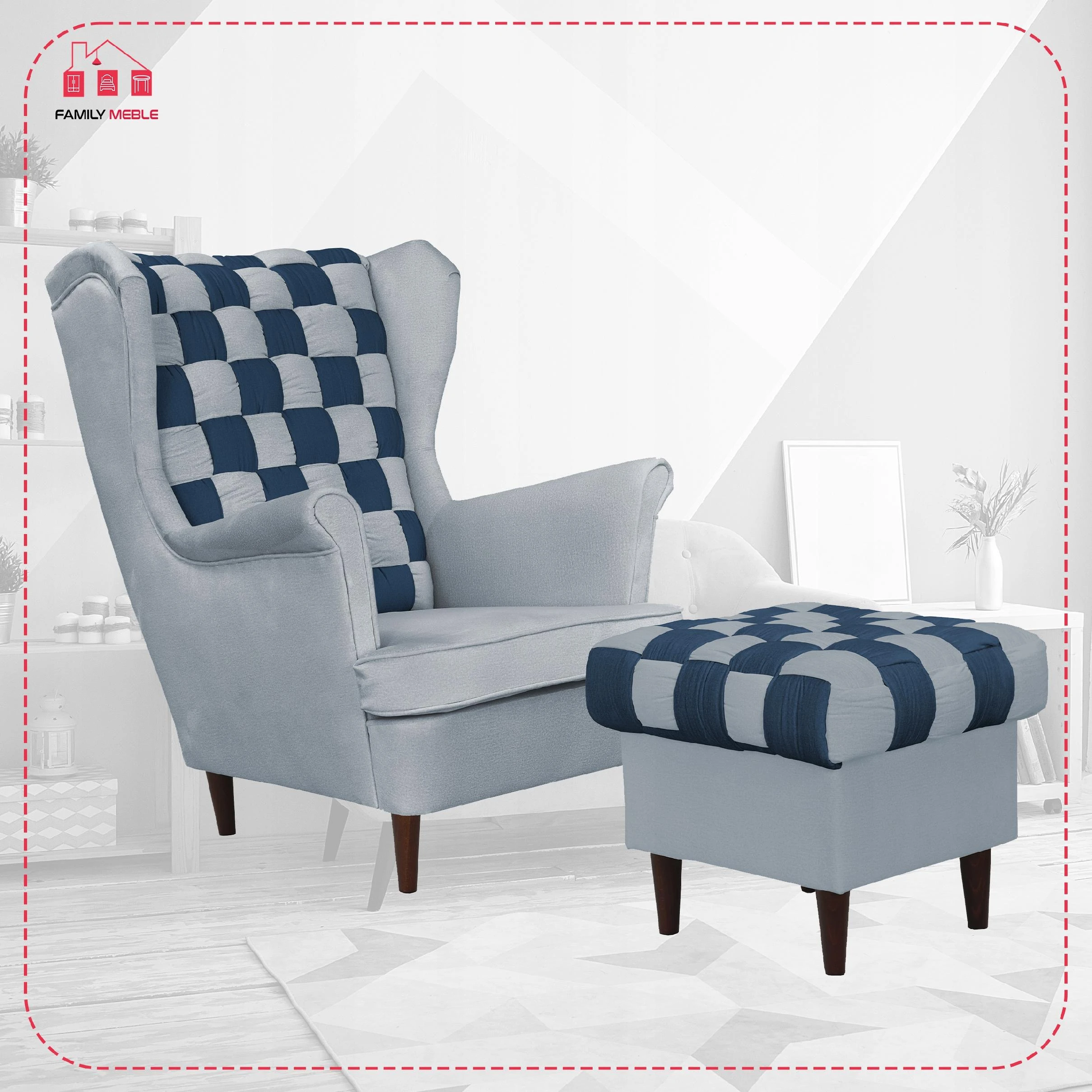 Fotel uszak Carol Duo z podnóżkiem skandynawski Family Meble granat szary