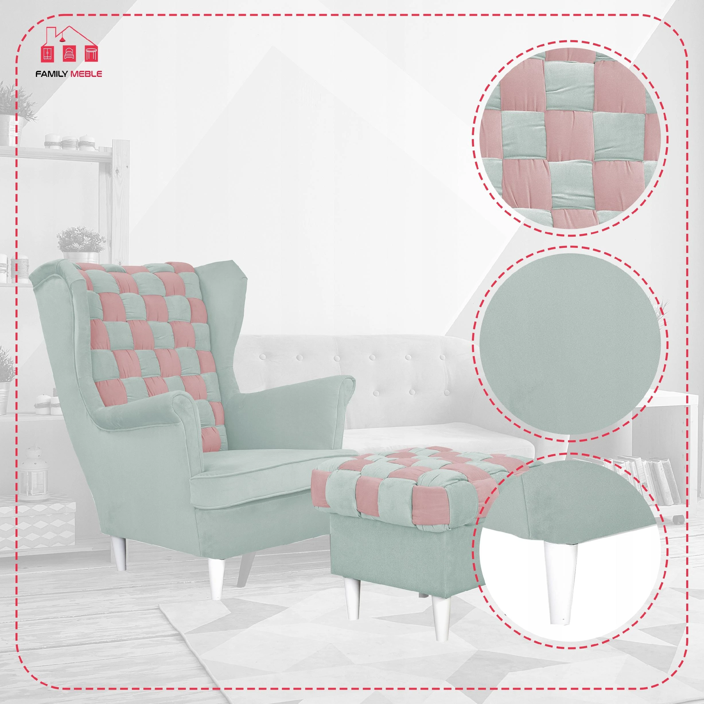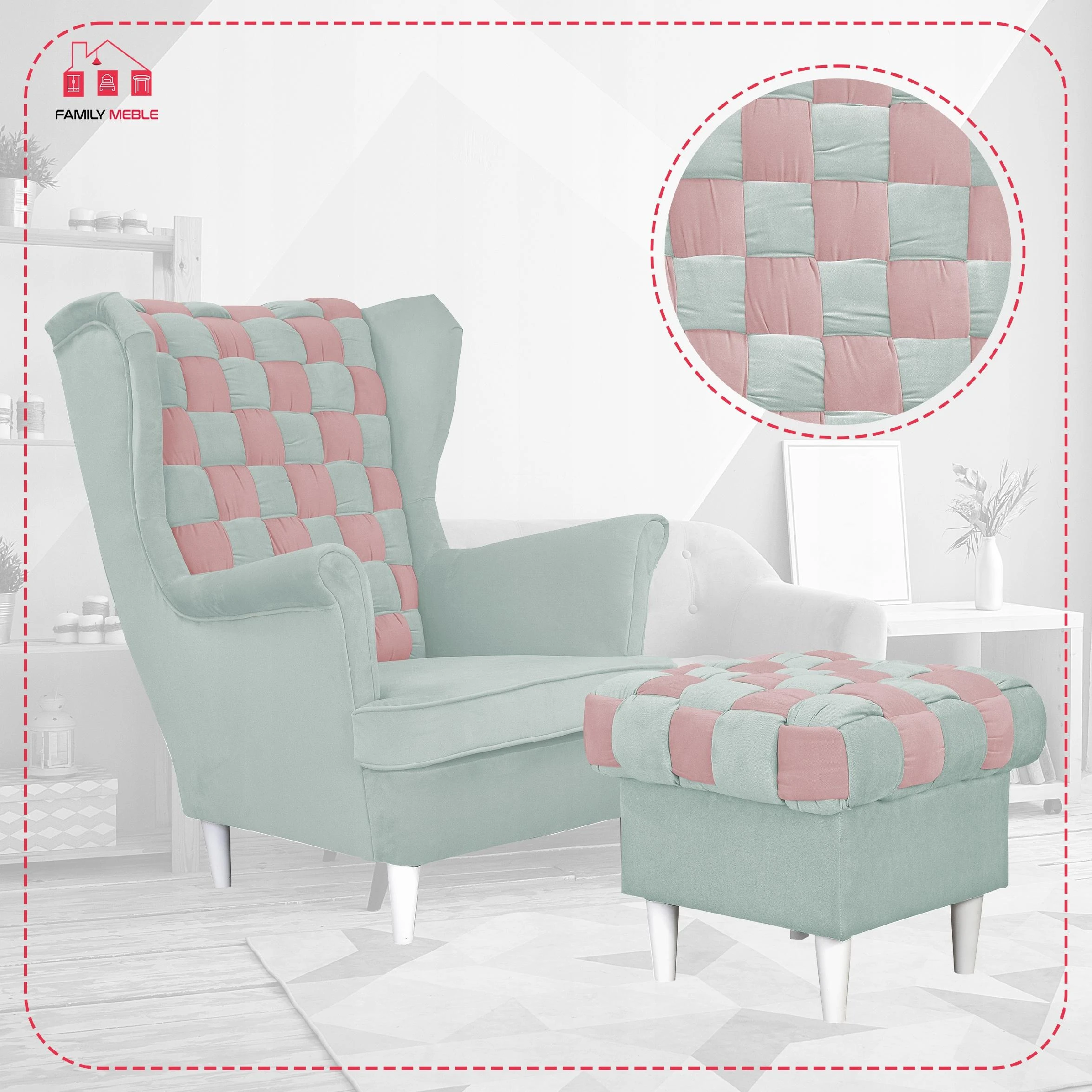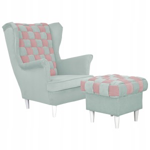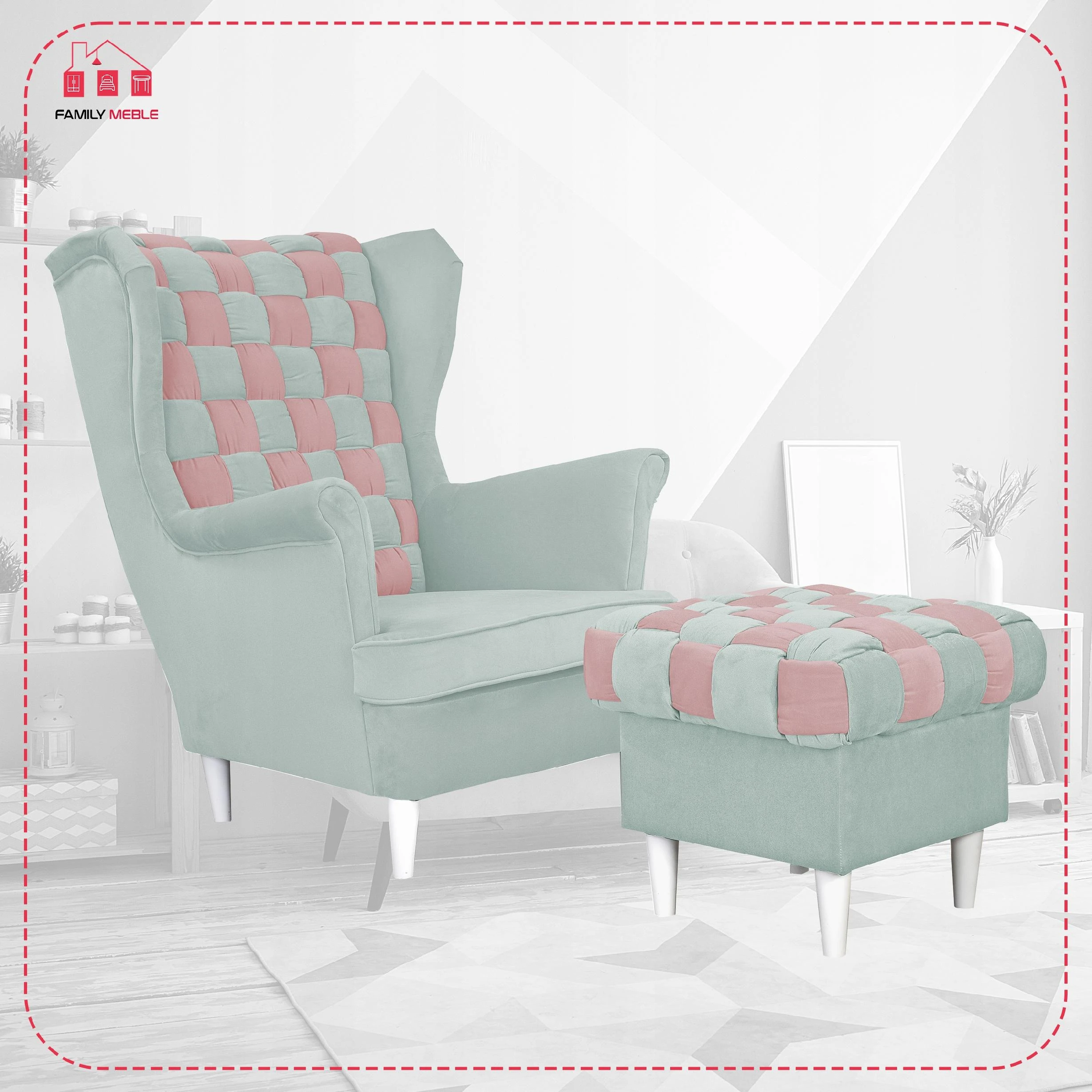 Fotel uszak Carol Duo z podnóżkiem skandynawski Family Meble szary różowy