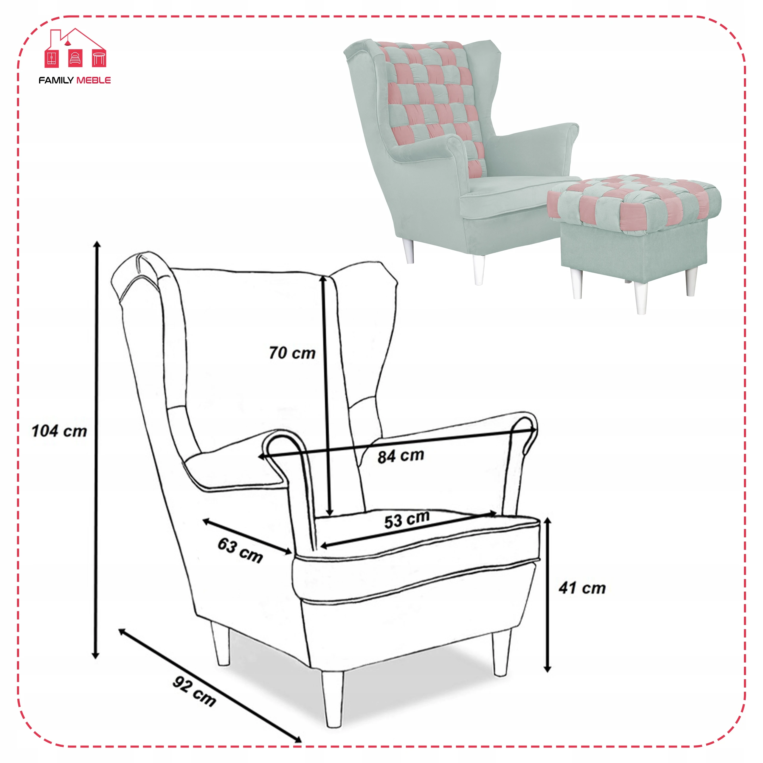 Fotel uszak z podnóżkiem skandynawski Carol Duo Family Meble