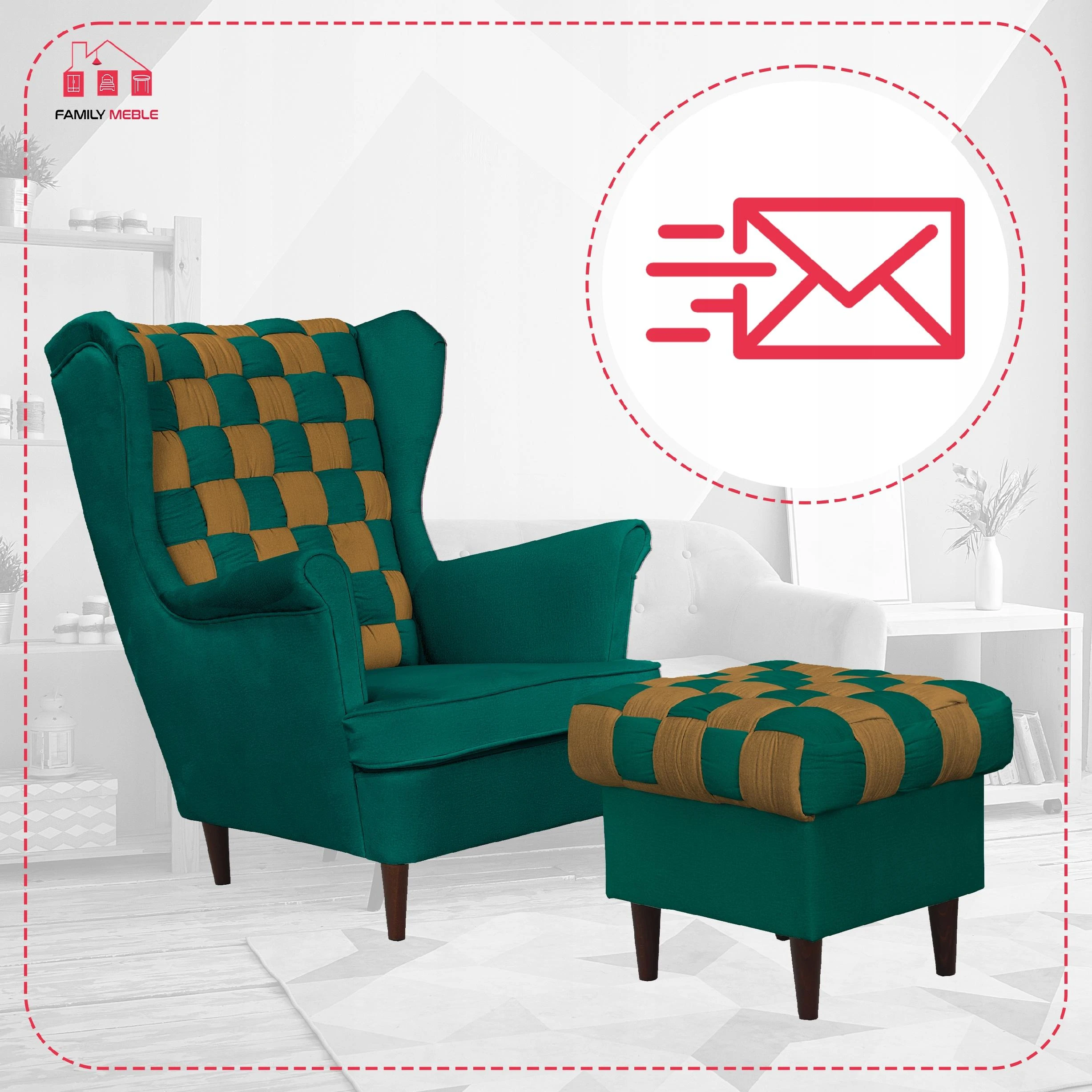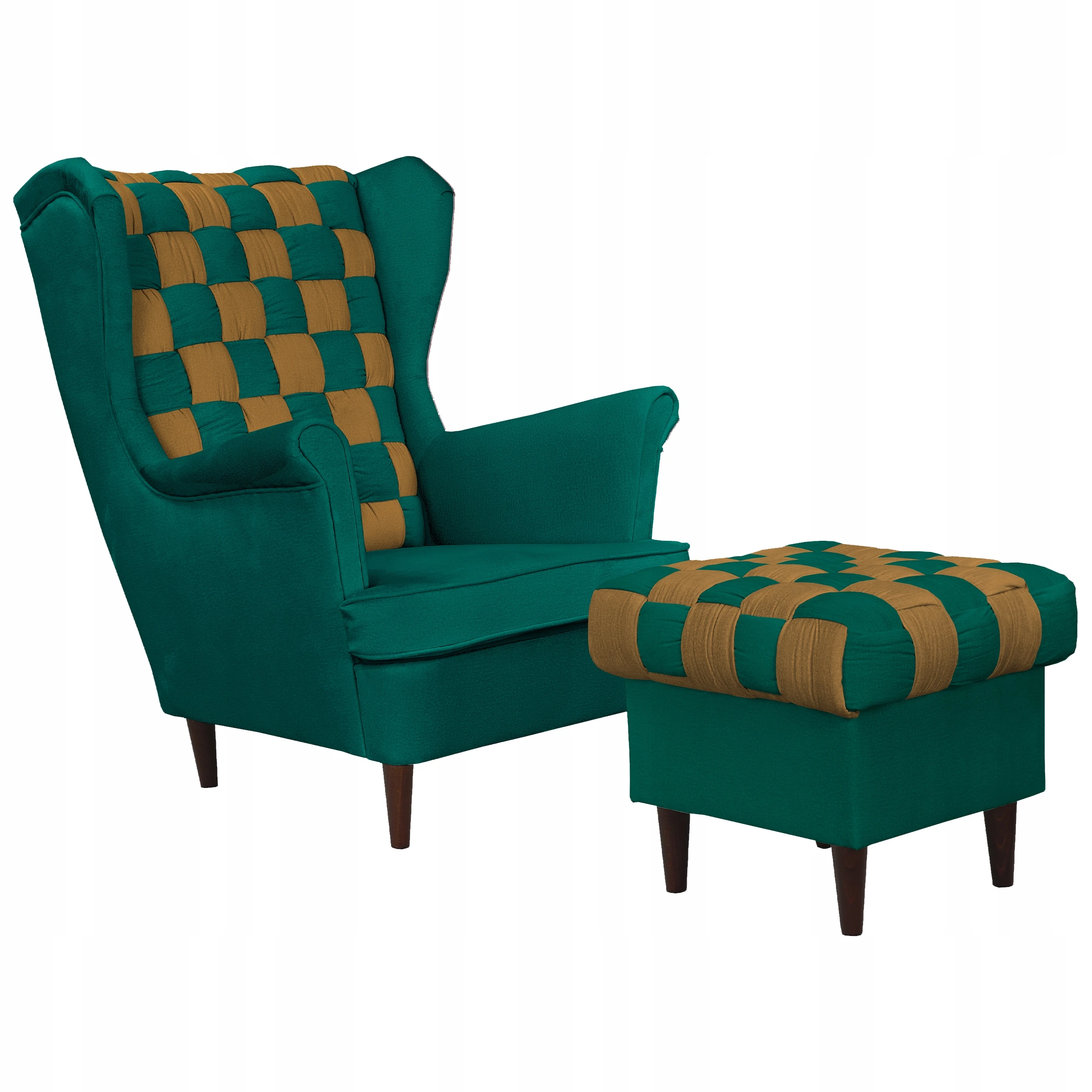 Fotel uszak Carol Duo z podnóżkiem skandynawski Family Meble zielony żółty