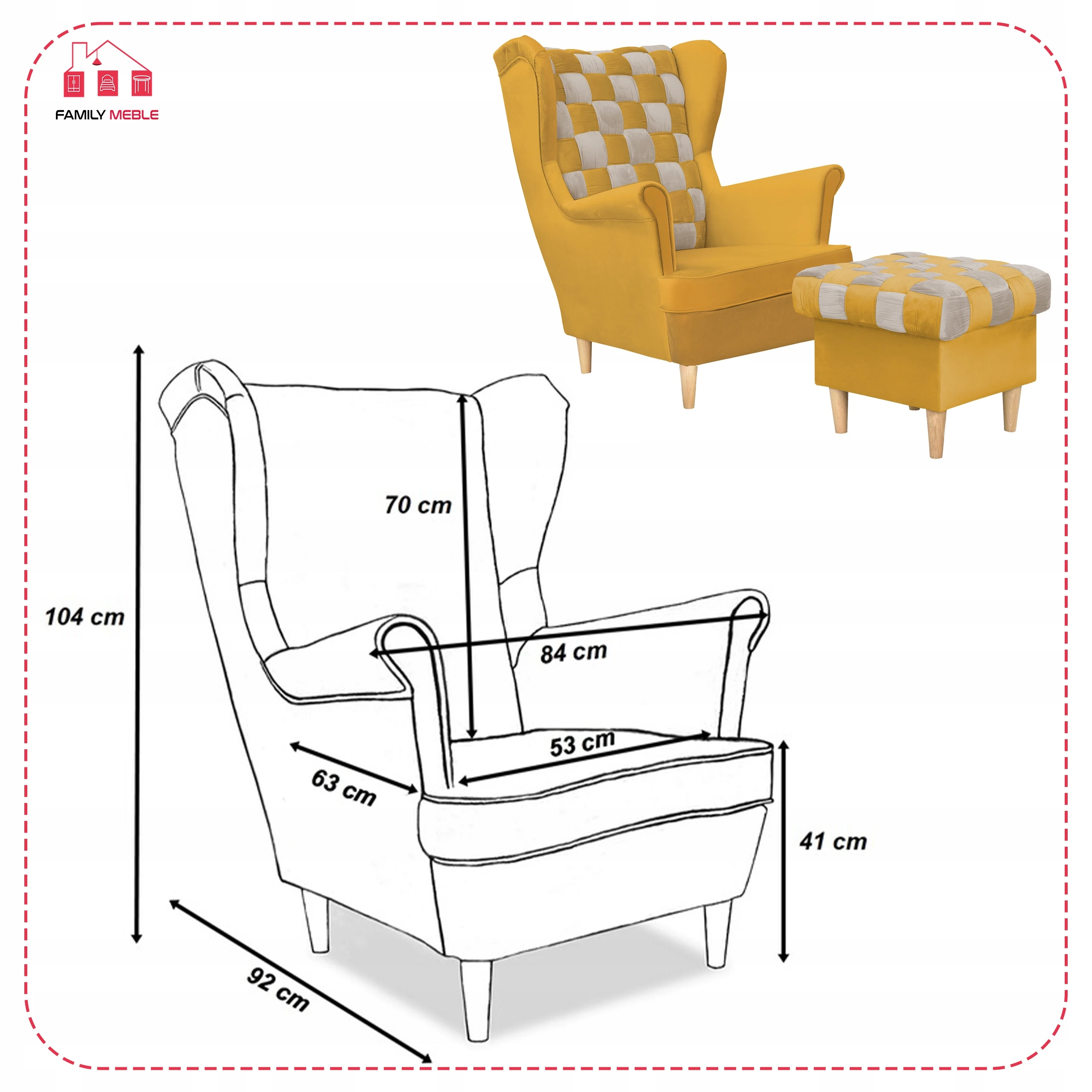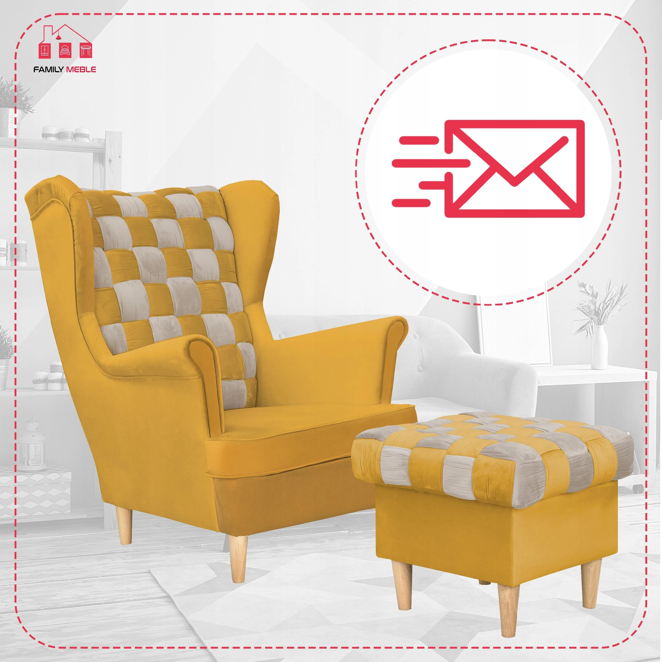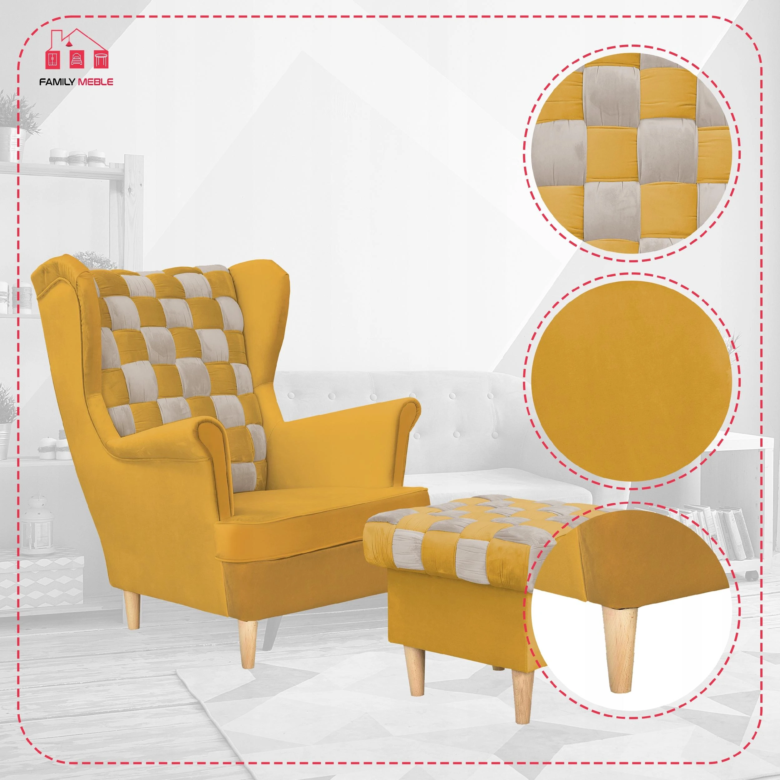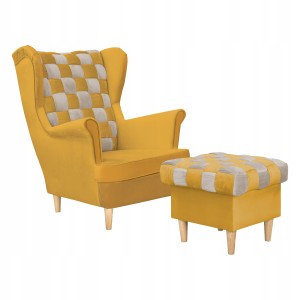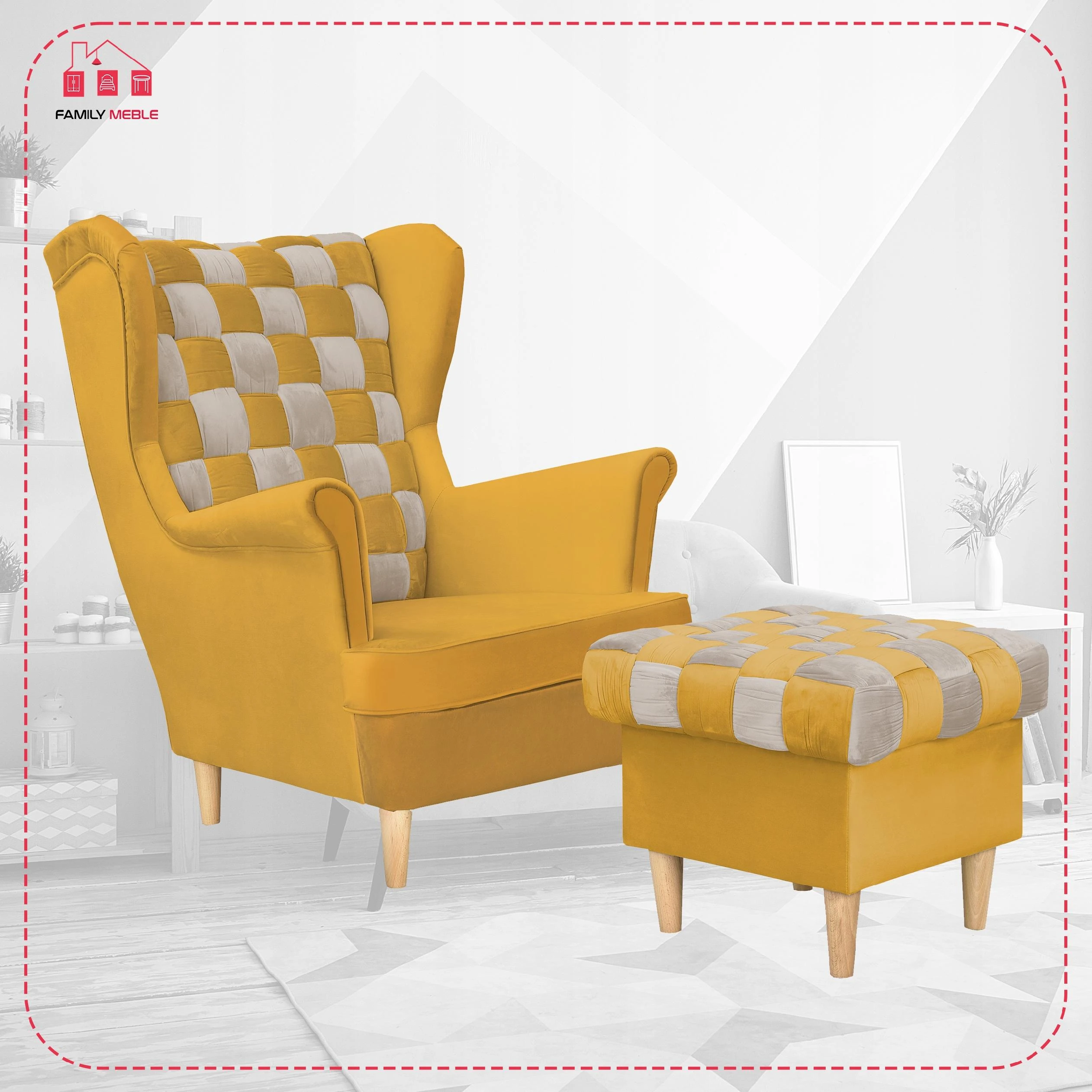 Fotel uszak Carol Duo z podnóżkiem skandynawski Family Meble żółty szary