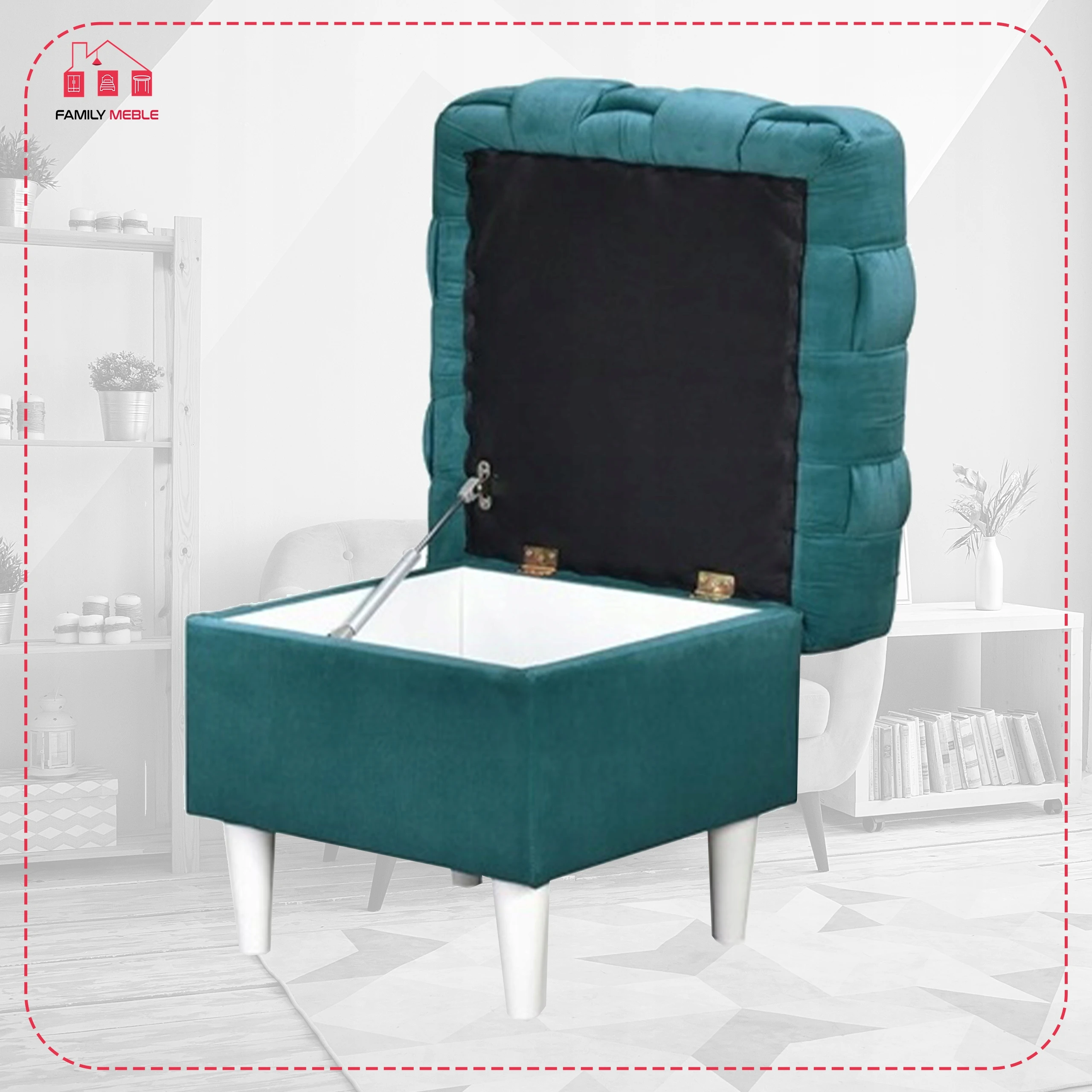 W tym modelu fotela jest dołączana pufa, która oprócz tego, że jest wygodna, umożliwia przechowywanie drobnych przedmiotów. Wszystko dzięki temu, że jest otwierana od góry.